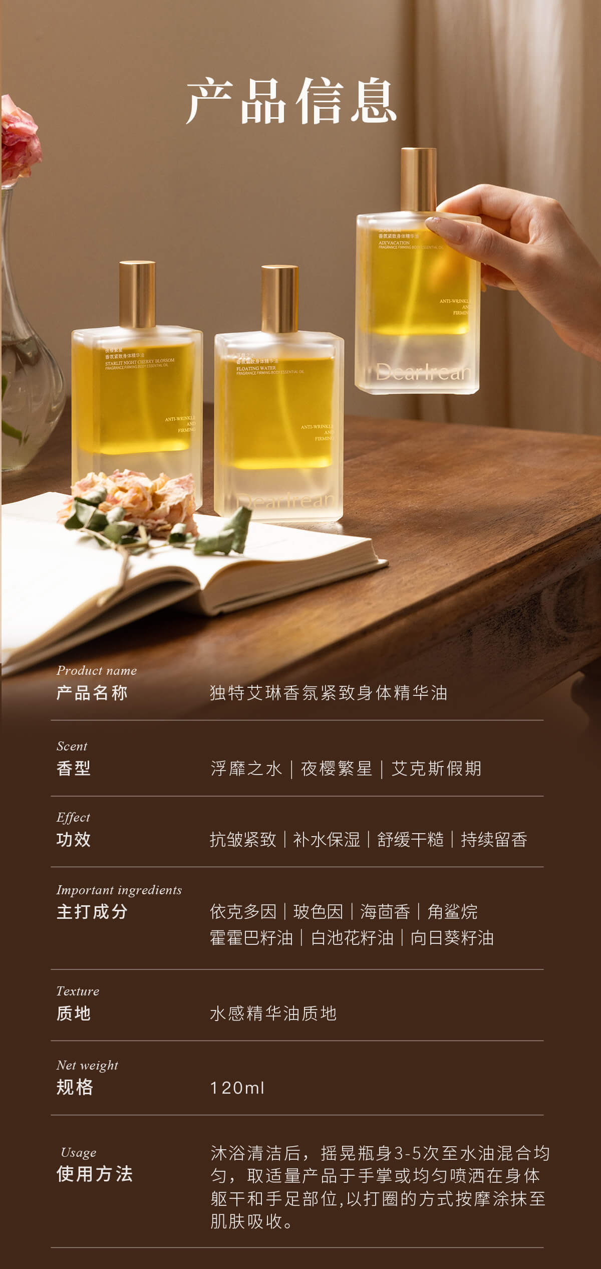 独特艾琳香氛紧致身体精华油喷雾120ml