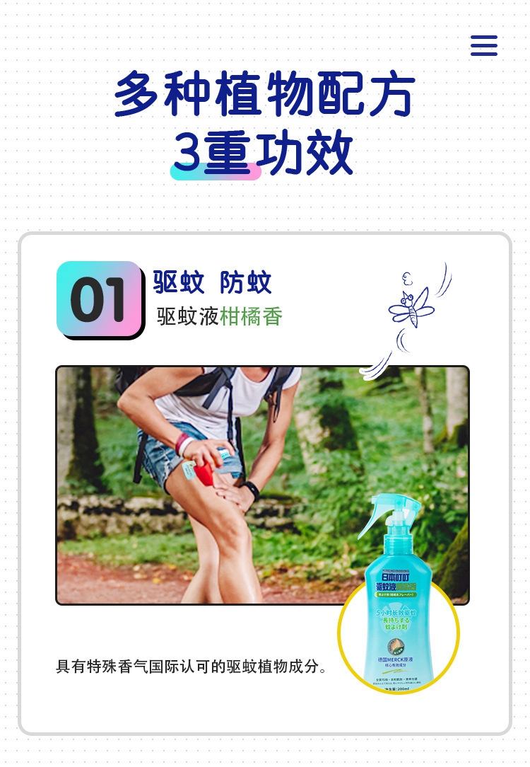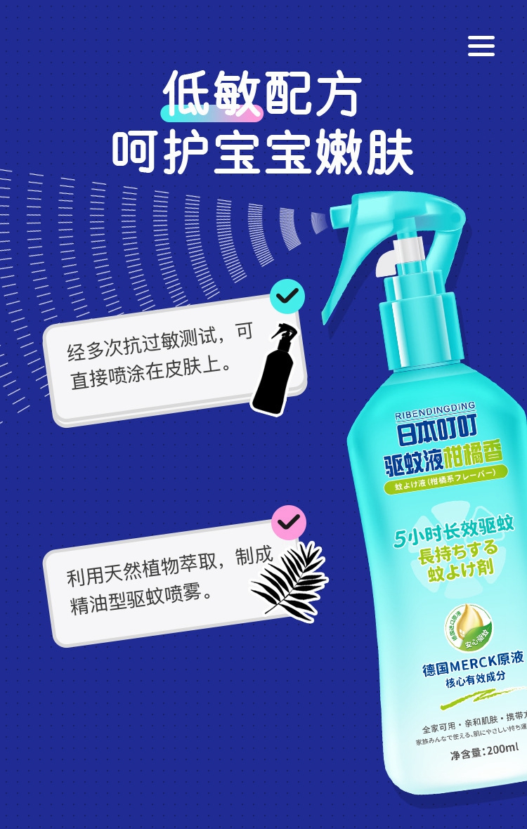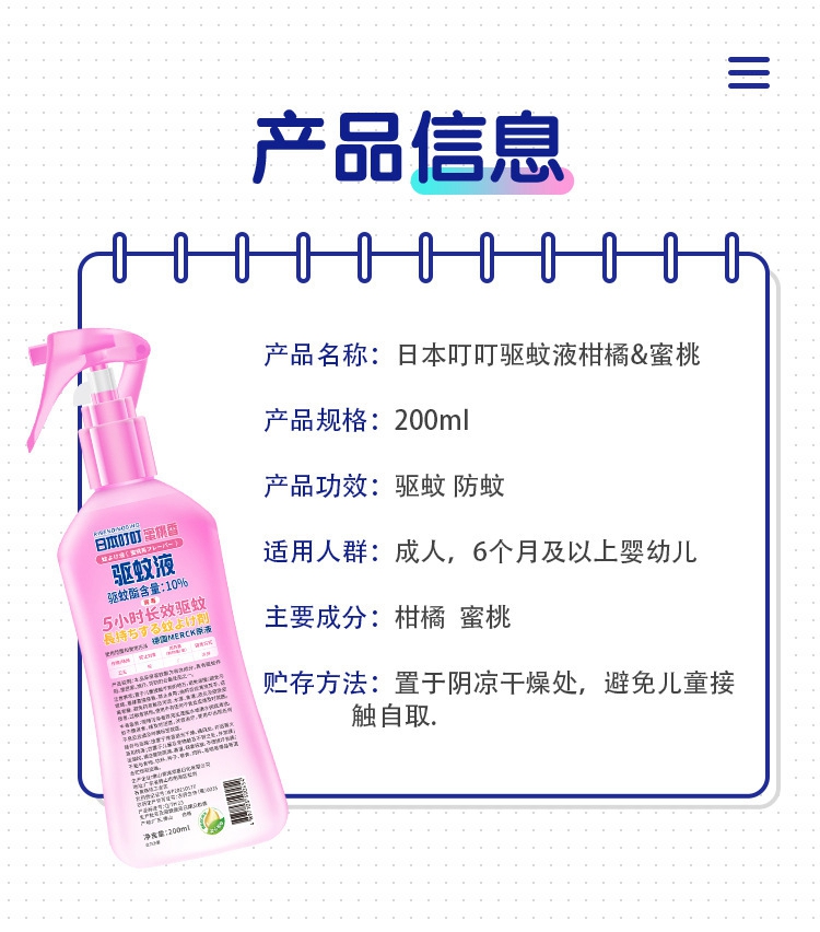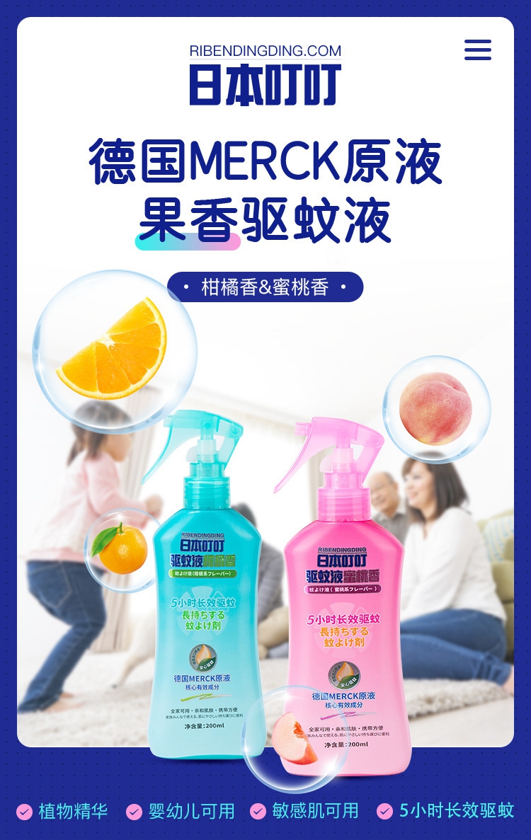 日本叮叮防蚊喷雾蚊不叮防驱蚊液花露水柑橘味100ml