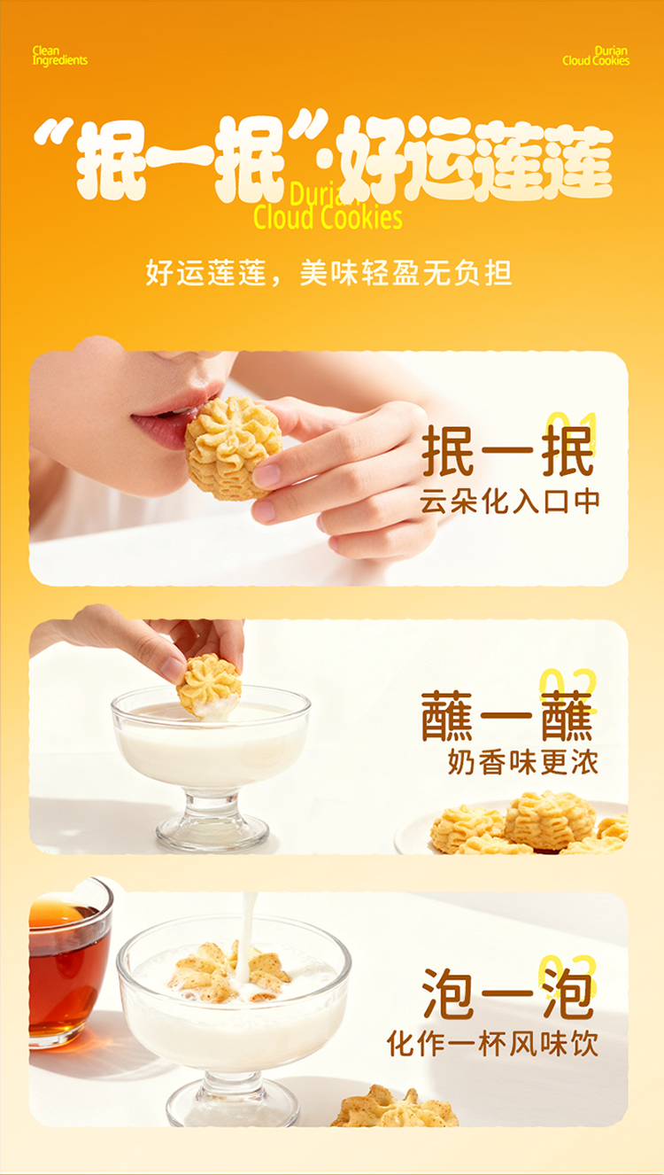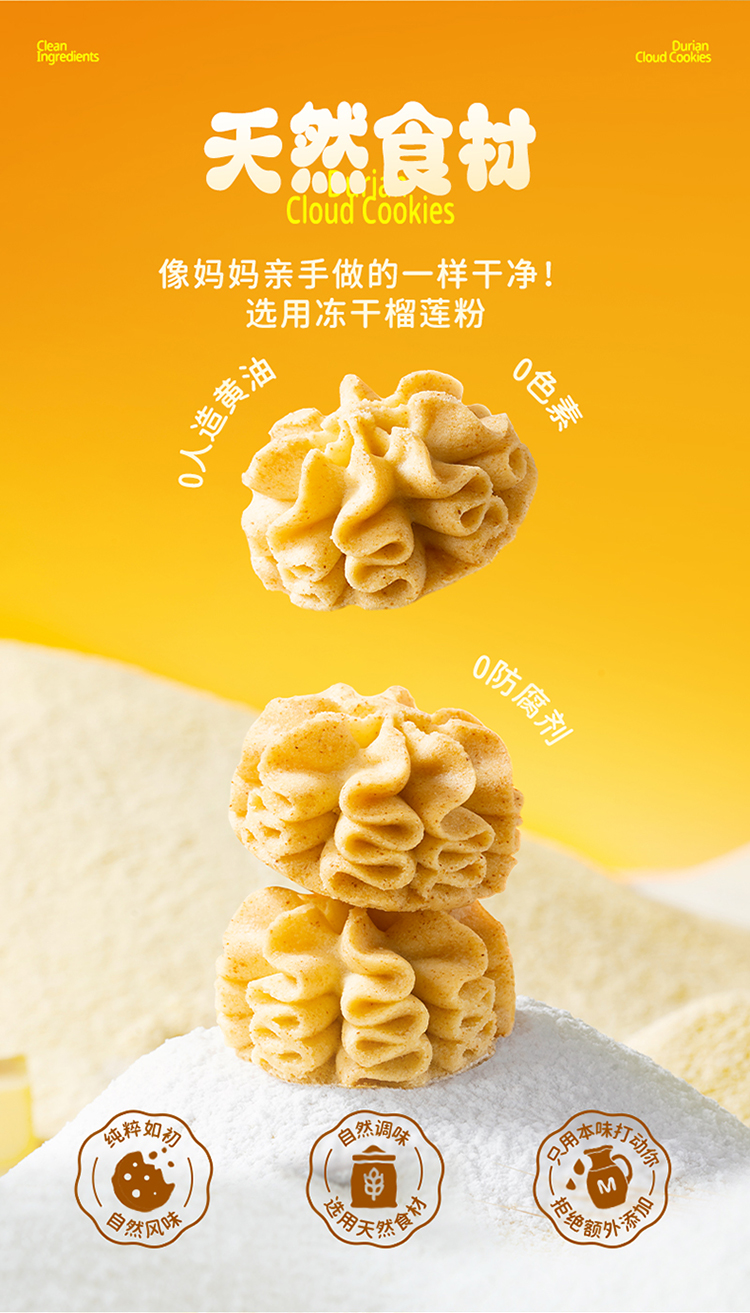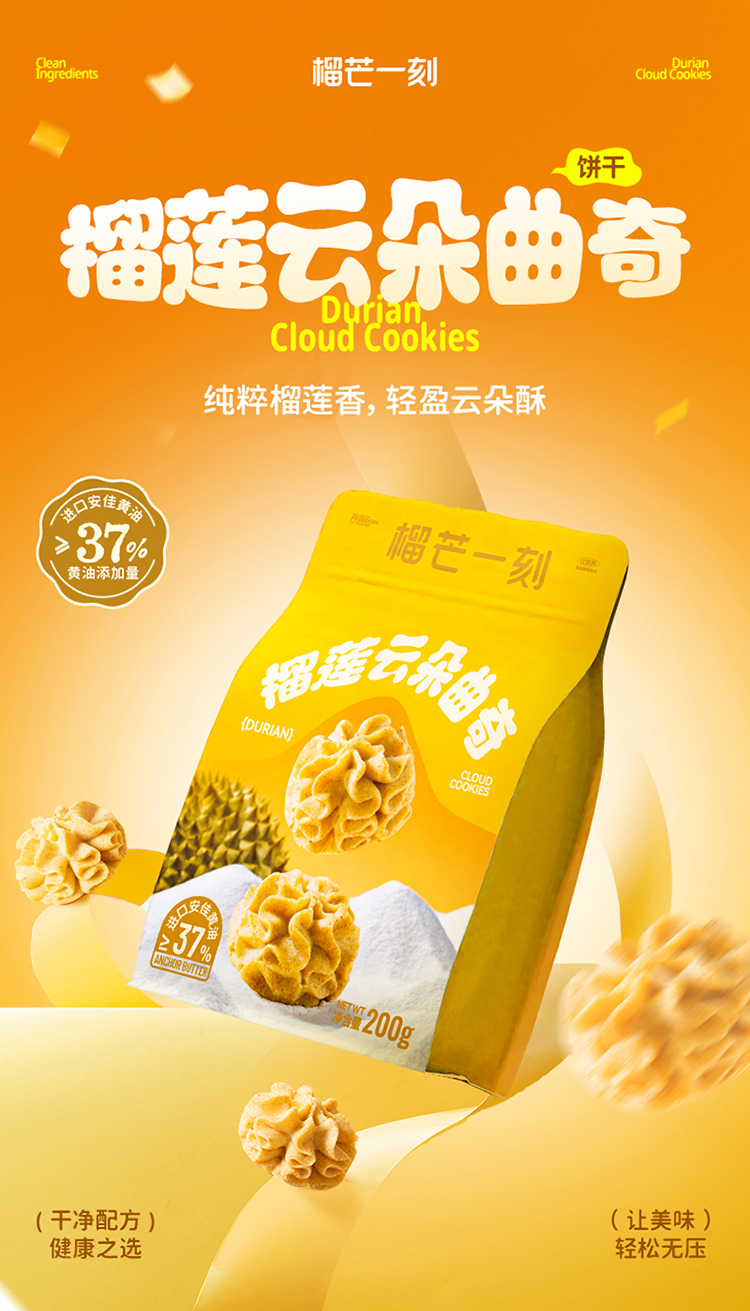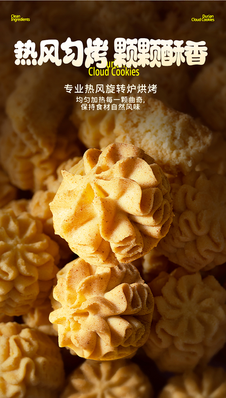 【榴莲云朵曲奇】榴莲云朵曲奇200克*1袋+四重奏云朵曲奇200克*1袋(赠:缤纷什锦曲奇200克*1袋|)|黄油漫溢,口口酥香