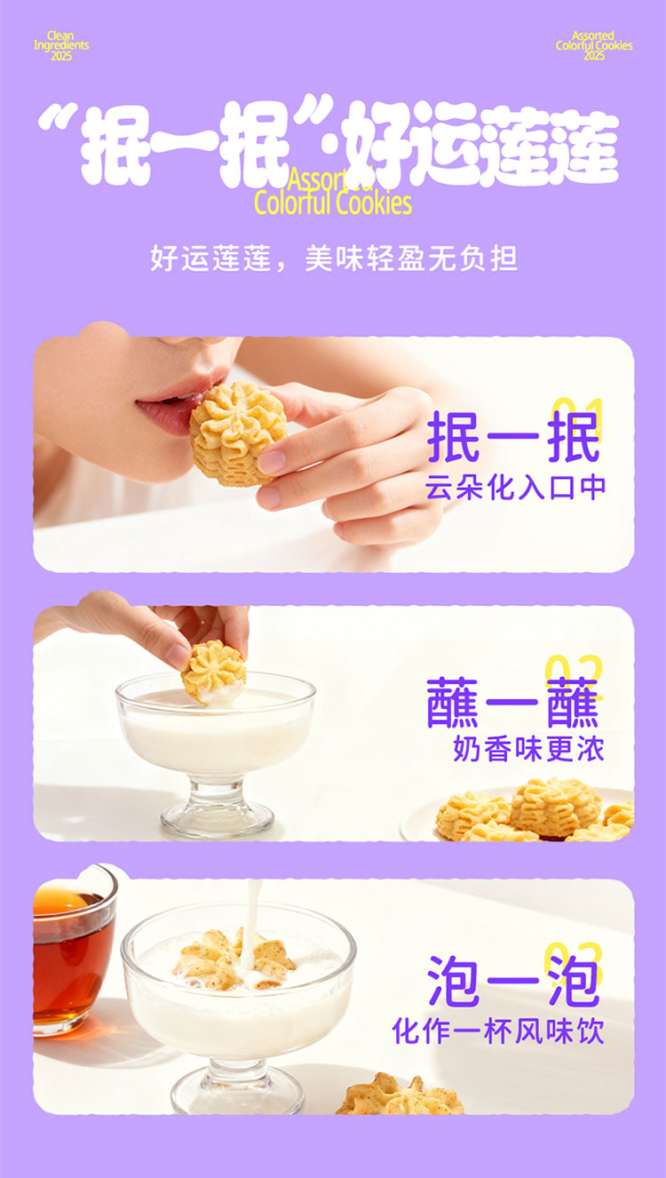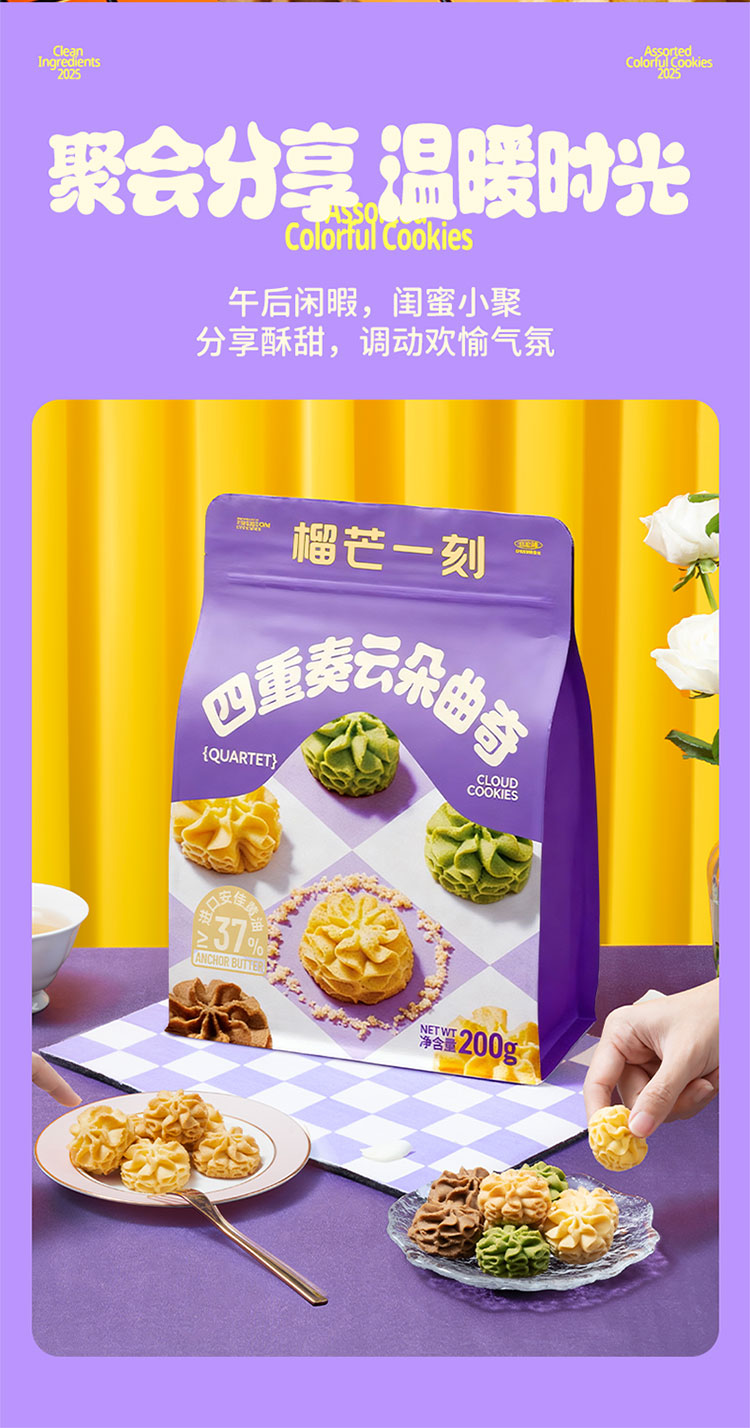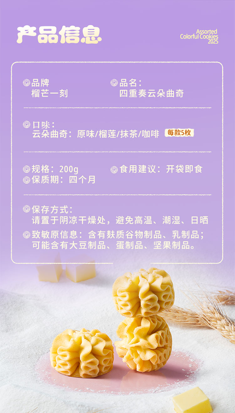 【榴莲云朵曲奇】榴莲云朵曲奇200克*1袋+四重奏云朵曲奇200克*1袋(赠:缤纷什锦曲奇200克*1袋|)|黄油漫溢,口口酥香