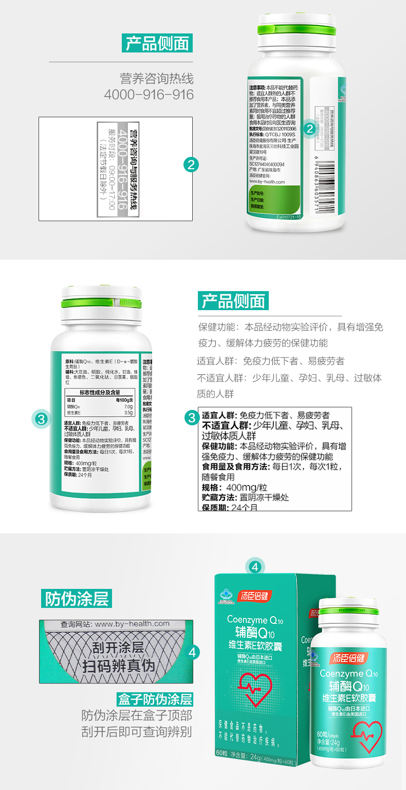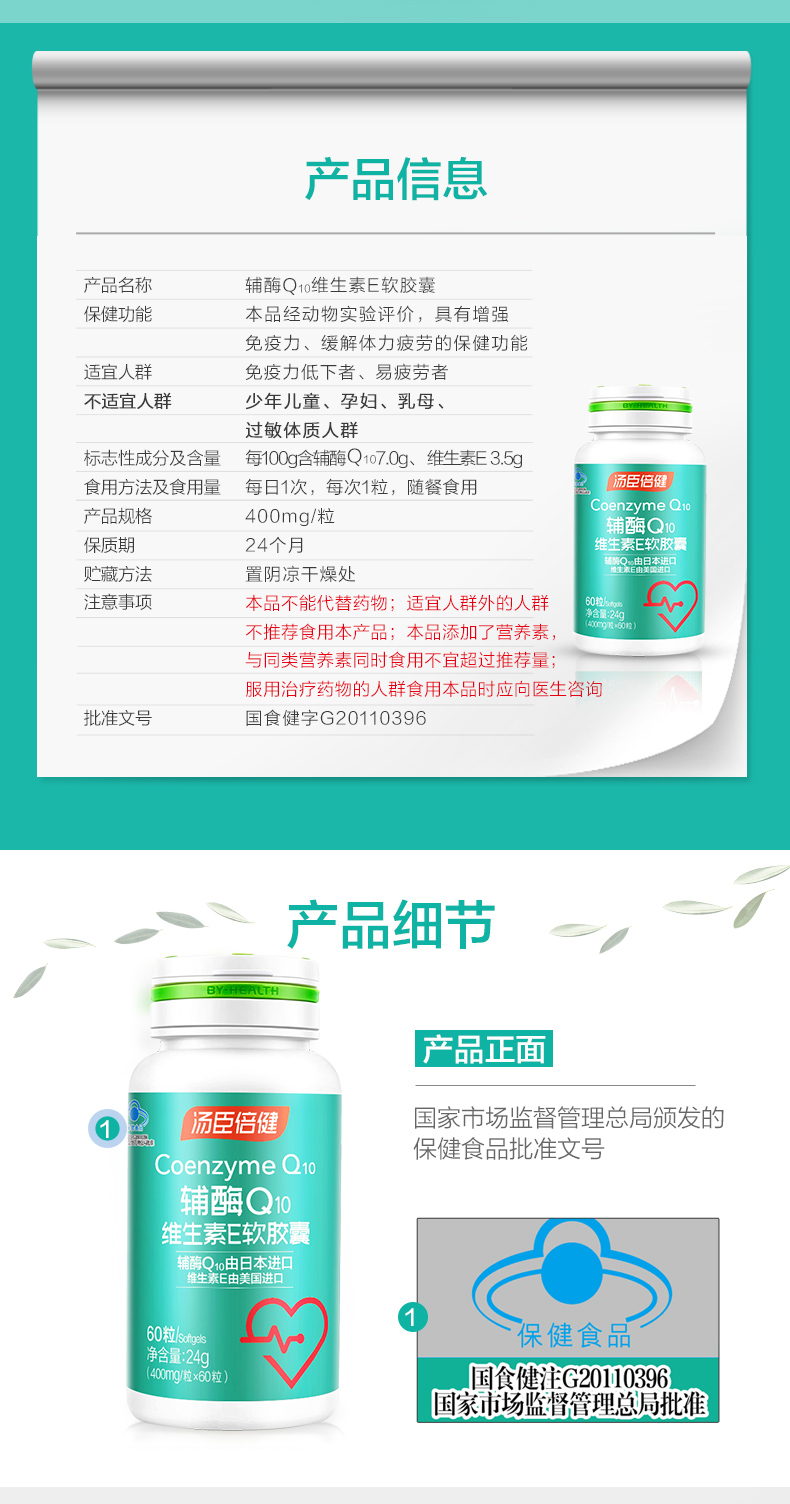 汤臣倍健辅酶Q10天然维生素E软胶囊60粒