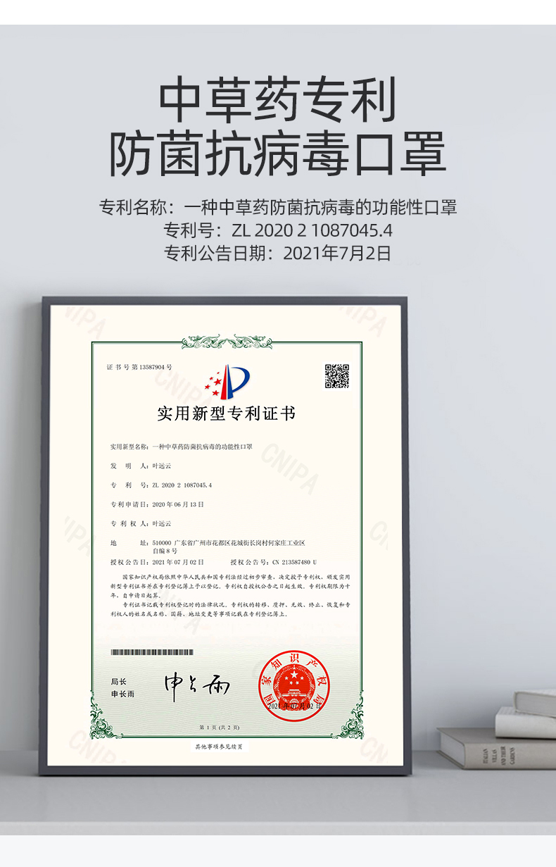 中草药专利防菌抗病毒口罩
