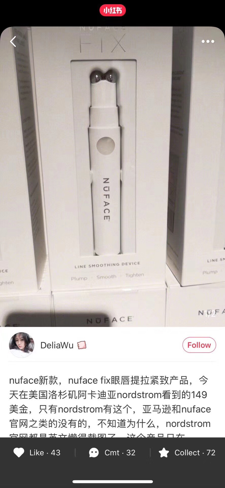 Nuface 新品Fix眼唇提拉紧致仪,便携式美容仪,轻巧可携带,有效改善法令纹、眼角纹、抬头纹、唇纹,可以放包包,方便携带,约会前也可以用哦,如果你已经有了mini , 又不想花大价钱购入Trinity,那么这个正合适。¥1250