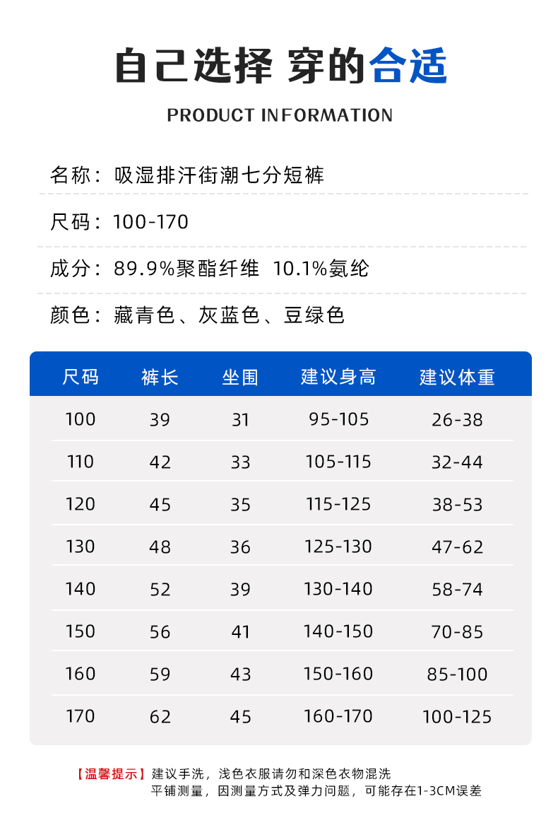 【多美乐】【吸湿排汗 速干】龙之涵 中大童吸湿排汗街潮七分短裤 23年夏季新款七分裤 婴幼儿A类标准