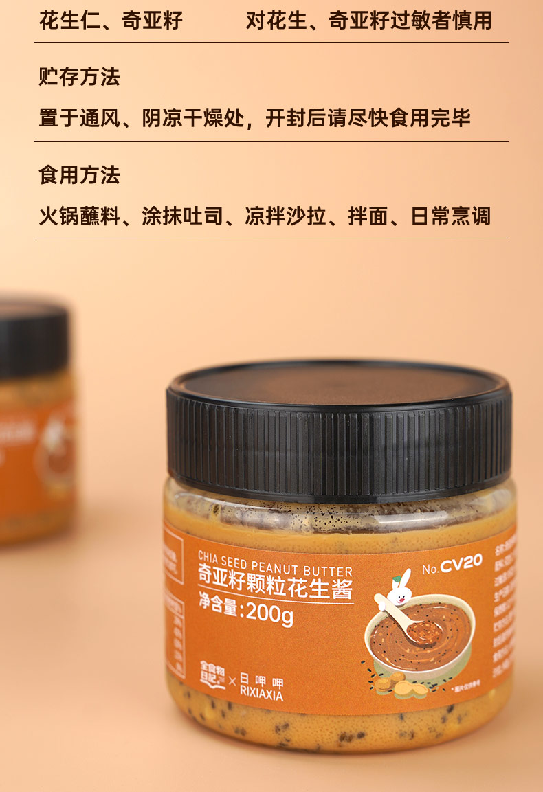 奇亚籽颗粒花生酱200g 全食物日记×日呷呷系列