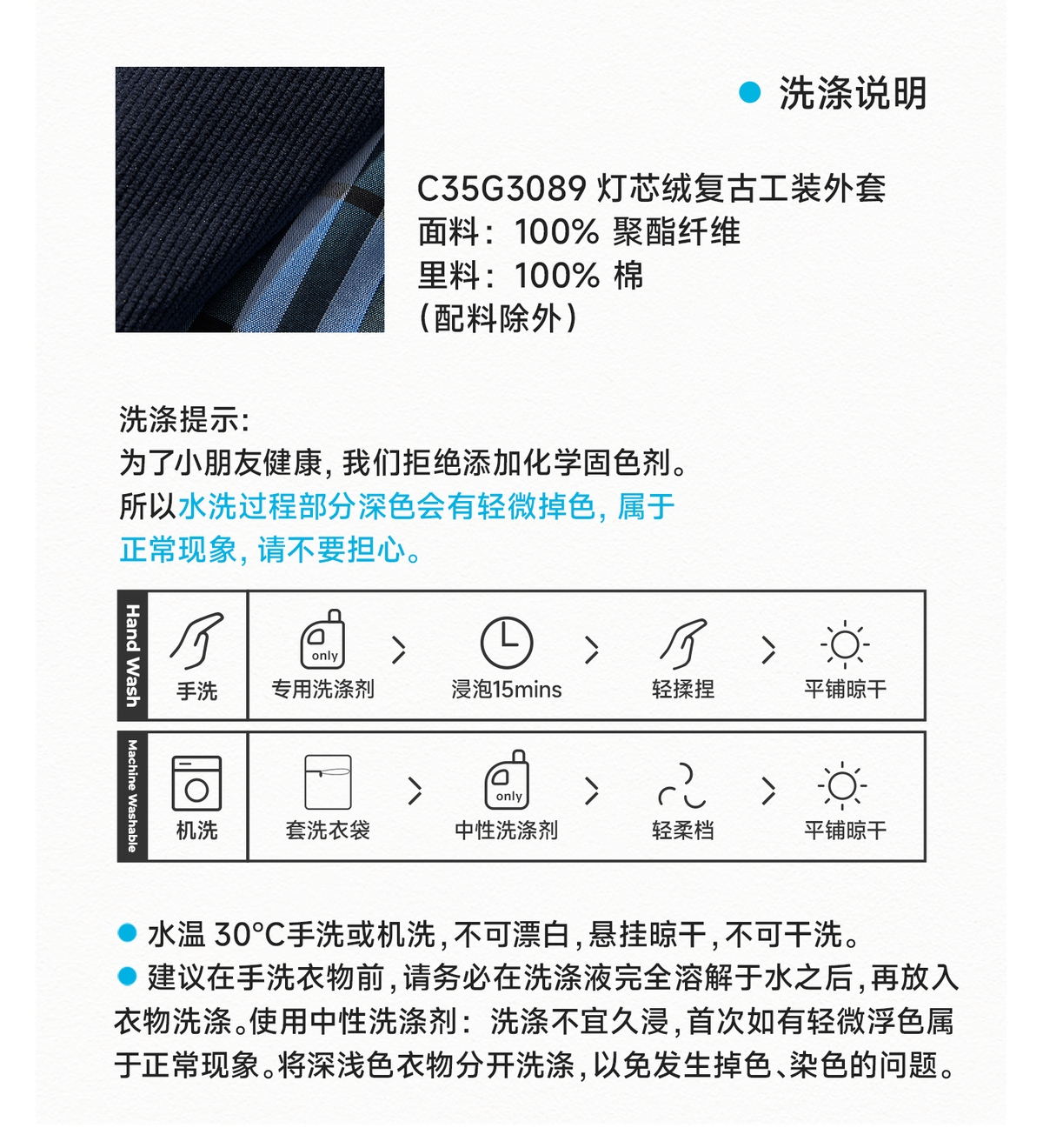 【秋Vol.2】allblu幼岚【灯芯绒复古工装外套】儿童外套男童女童新款A类保暖ZY