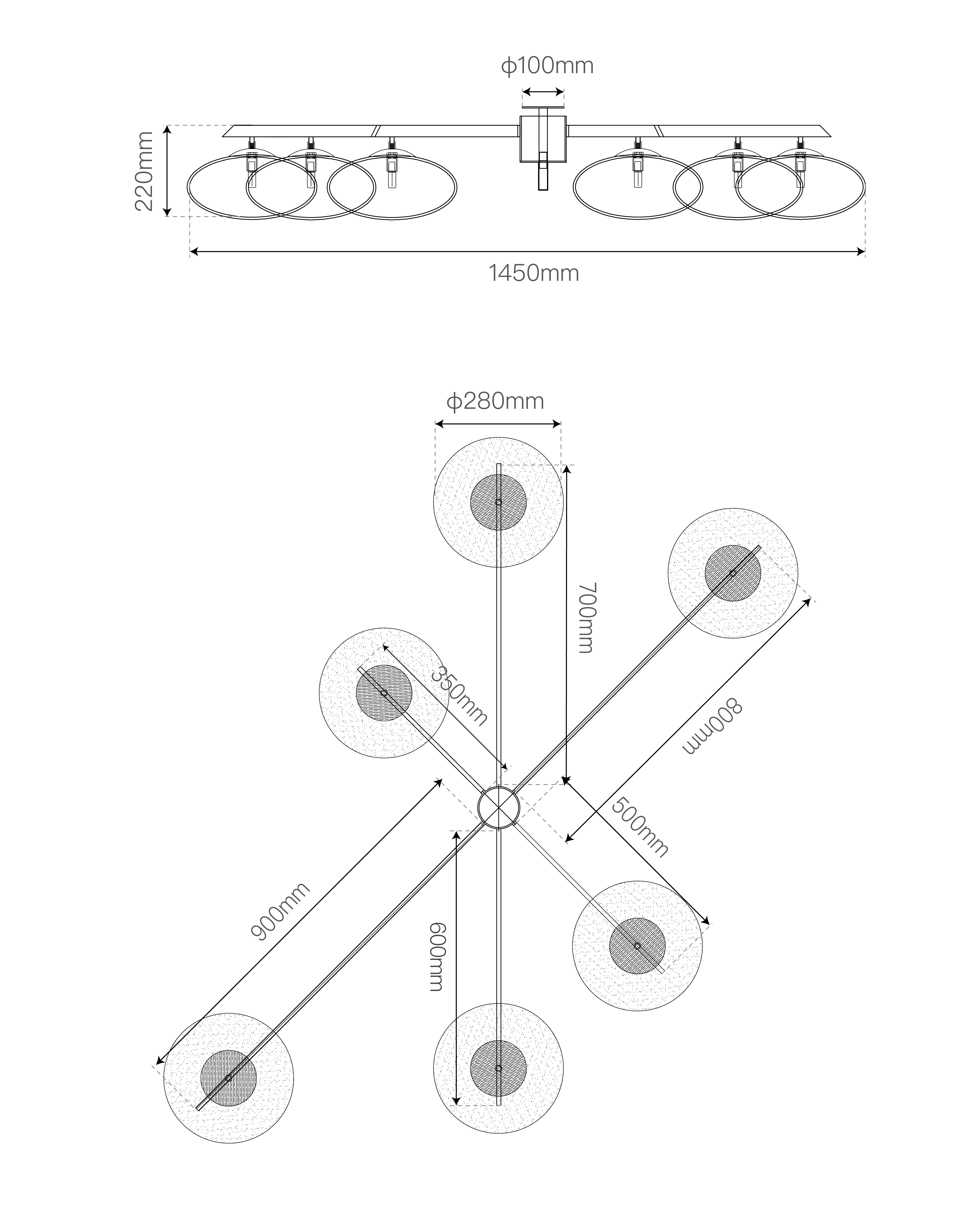 4. 这五款灯,主要是作为吸顶灯来用。如果作为壁灯也是可以的,非常酷炫。因为设计的原因,很规则的三头和五头作为壁灯使用没有问题,二头、四头、六头的长臂那根,需要在灯臂下方打一颗钉子用于支撑灯臂(我们负责安装),不然会因为灯臂力臂过长,导致灯臂弯曲变形。