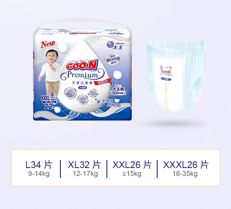 【新】大王天使短裤式纸尿裤(L-XXXL)