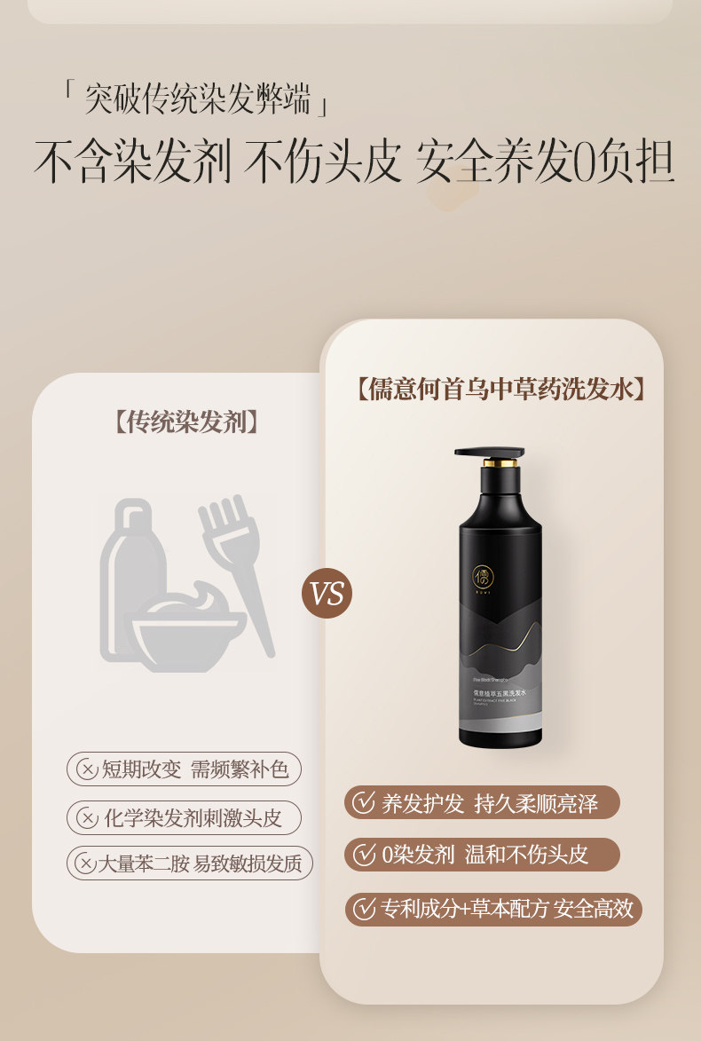 儒意黑灵芝何首乌洗发水非纯植物品牌官方500ml瓶