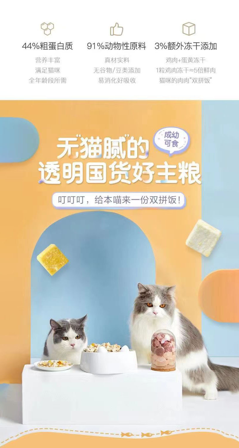 严选 【全价双拼冻干猫粮1.8kg】成幼猫主粮增肥发腮营养干粮1袋