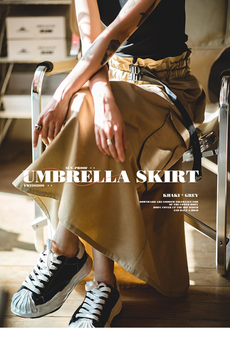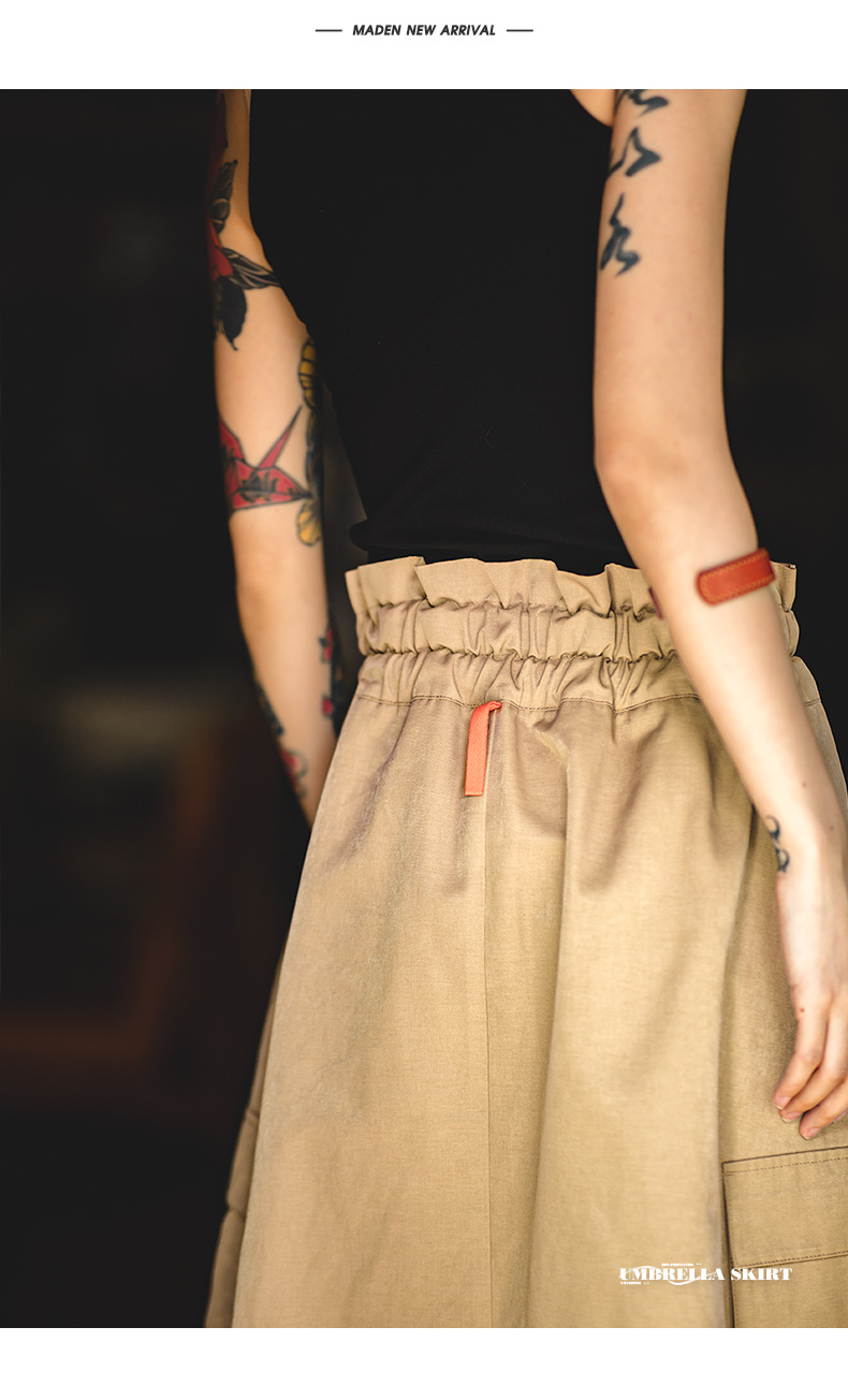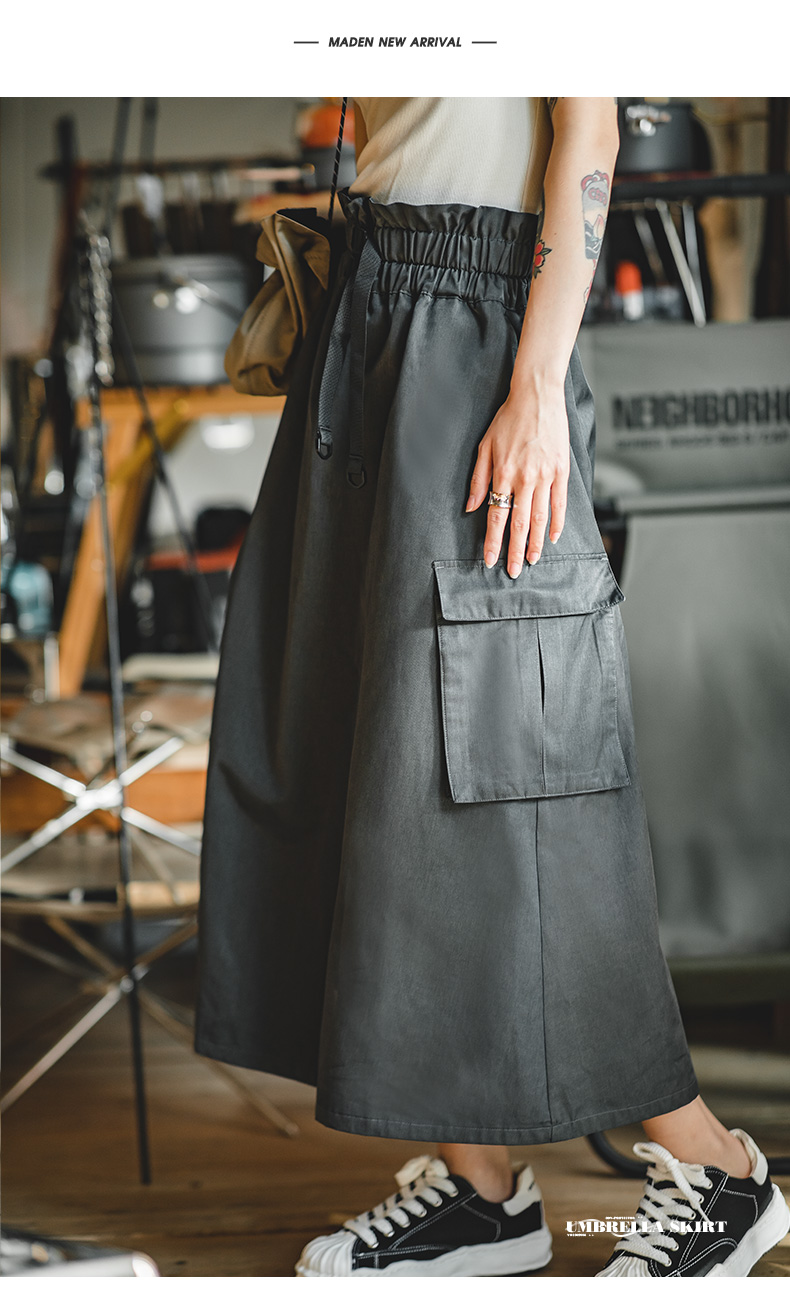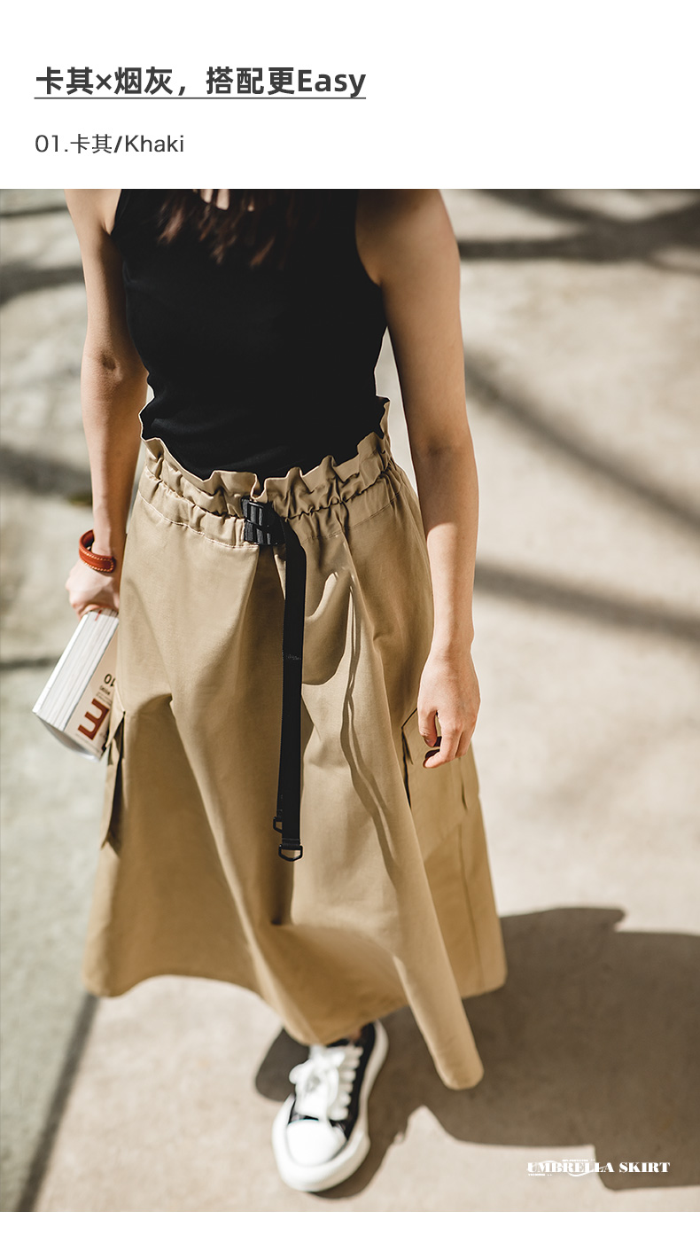 马登女装美式文艺半身长裙休闲高腰a字小个子伯克利工装伞裙子秋