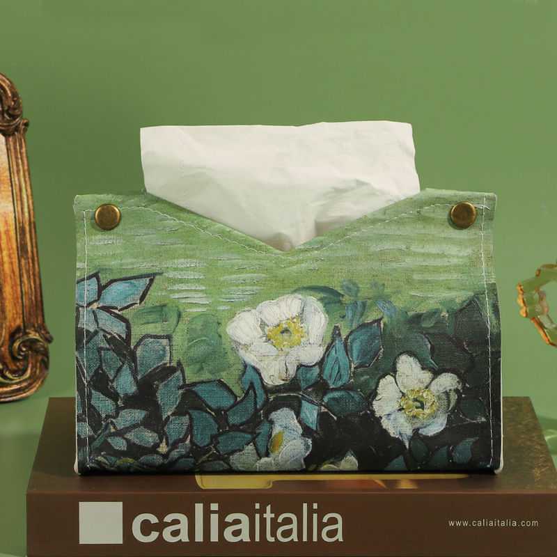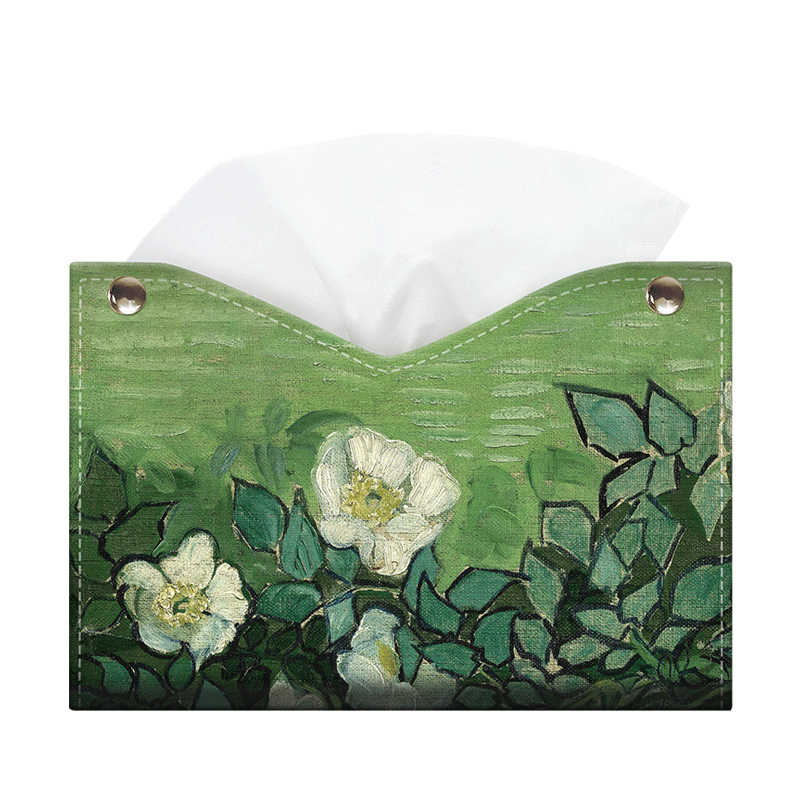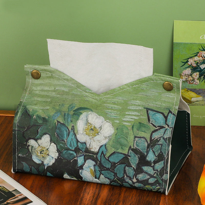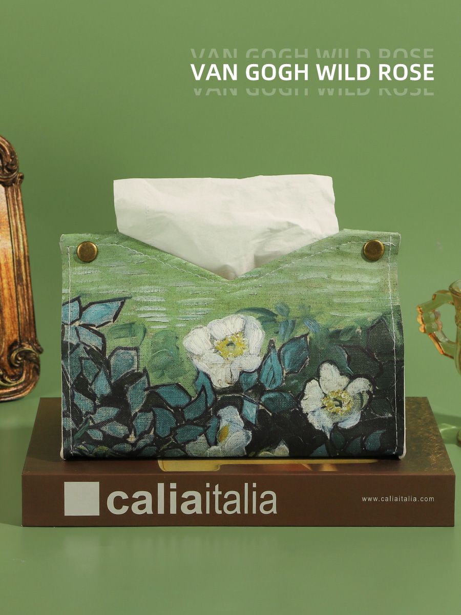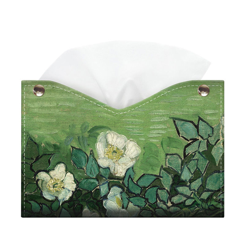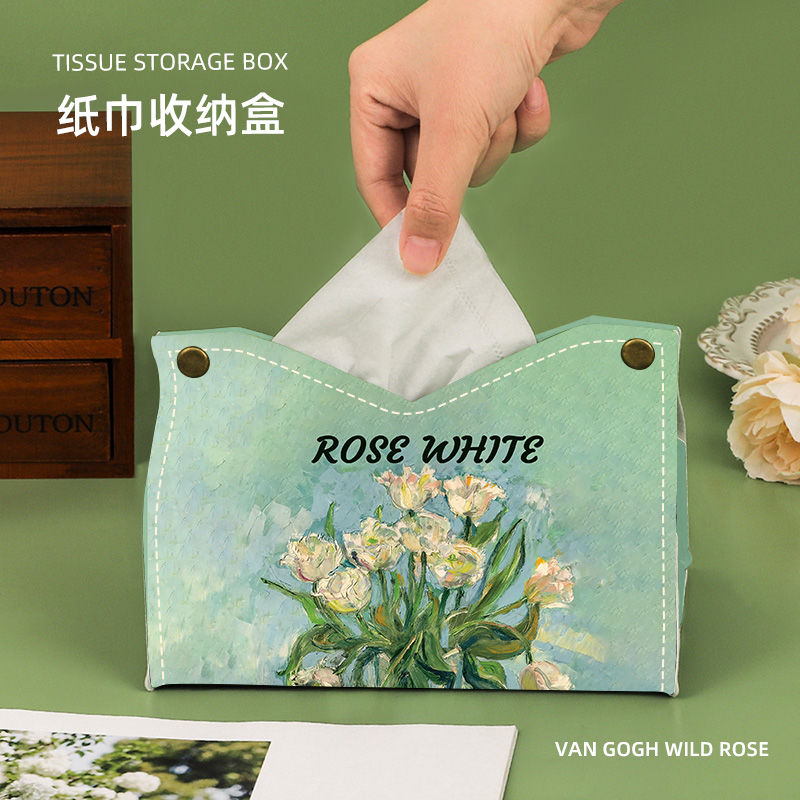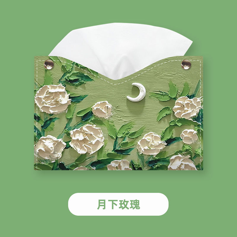 【梵高油画高颜值纸巾盒】月下白玫瑰油画纸巾盒轻奢风客厅家用桌面抽纸盒高档车载纸抽盒