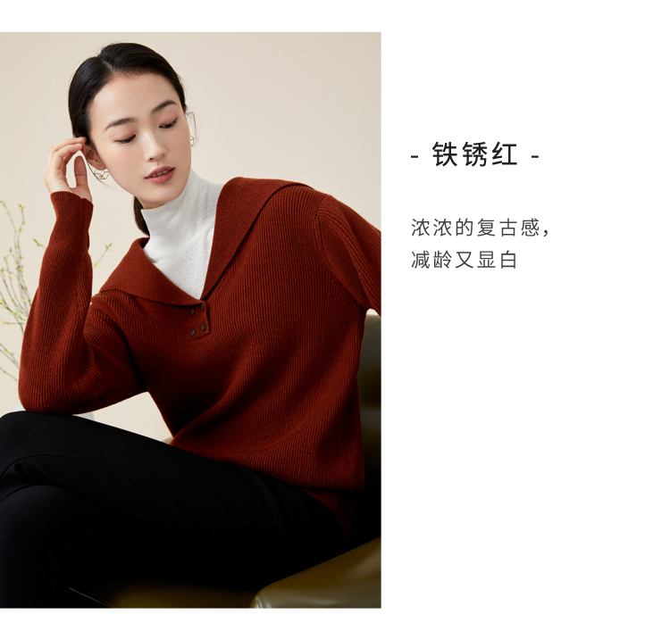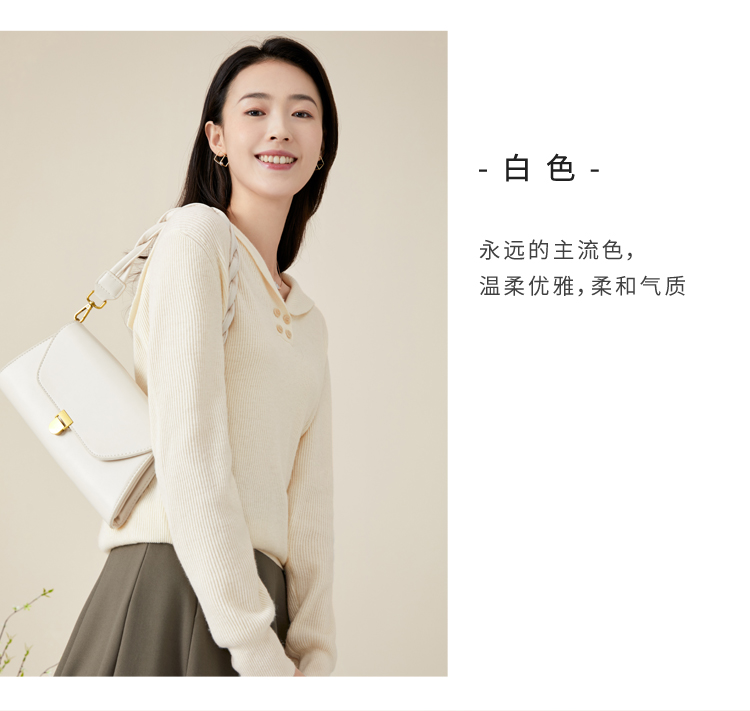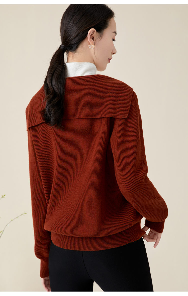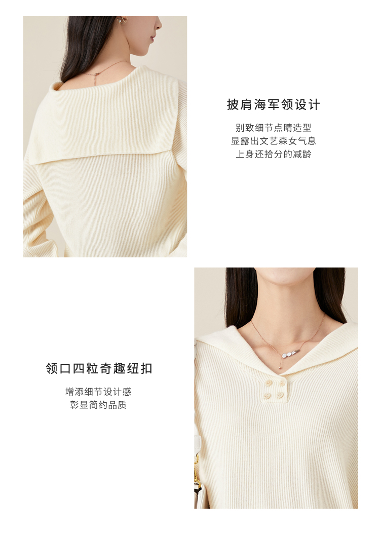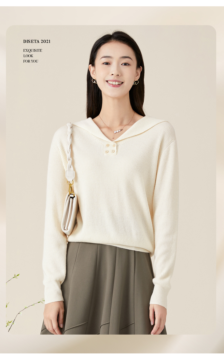 玳莎海军领羊毛针织衫女纯色长袖套头毛衣减龄上衣 BD33308