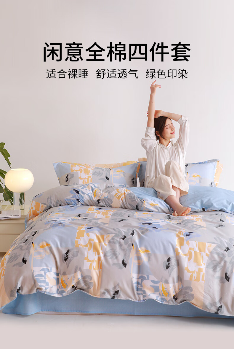 TY 恒源祥全棉四件套加厚耐用超软亲肤床品套件双人 (被套2*2.3m)闲意【鲜享3.0】 商品图0