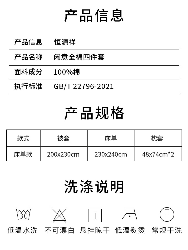 TY 恒源祥全棉四件套加厚耐用超软亲肤床品套件双人 (被套2*2.3m)闲意【鲜享3.0】 商品图4