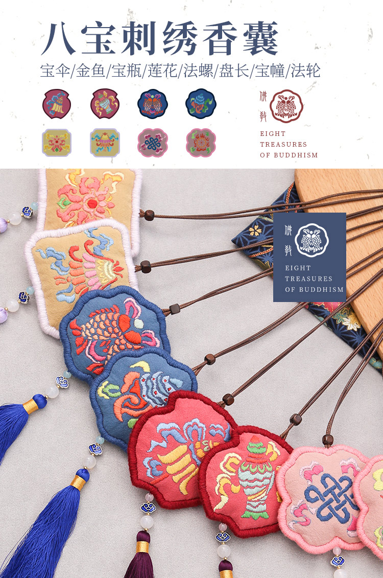 佛八宝香囊 刺绣diy材料包 平安符布艺礼物