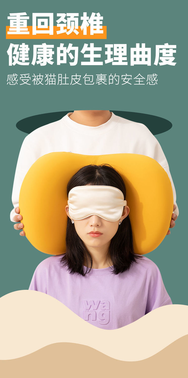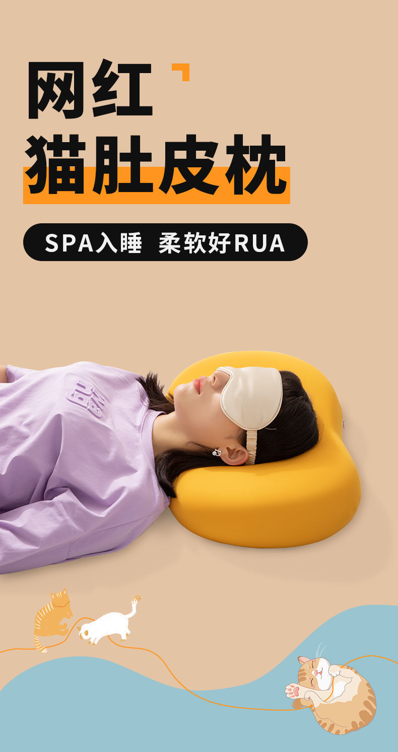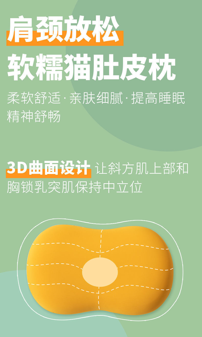 【柔软舒适 治愈猫肚皮枕】记忆棉护颈椎枕头 科学睡眠分区,仰卧侧卧舒适贴合头颈部