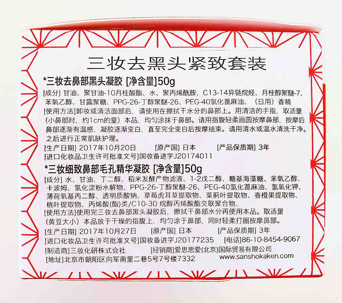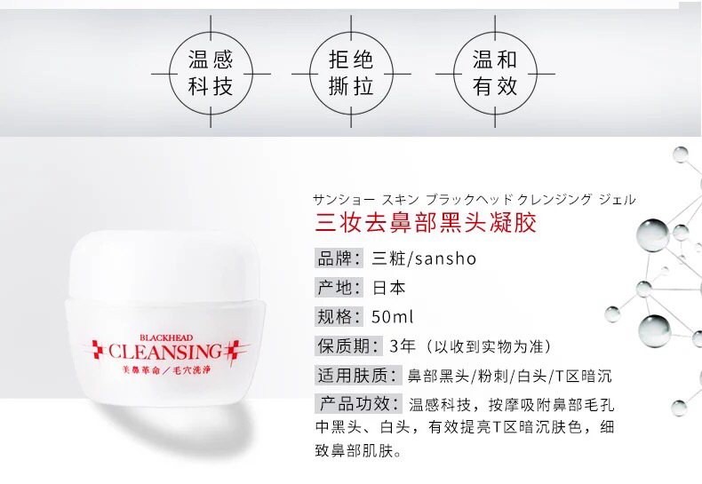 2018年五月,三妆推出了新品美鼻革命,简单的说,它是顽固黑头护理的两件套。简单的说,它是护理两部曲。第一步先用白罐的凝胶按摩鼻头以及黑头部位大约1分钟;第二步洗去残留,擦干皮肤;第三步涂上收敛毛孔的红罐凝胶,就完工啦~!