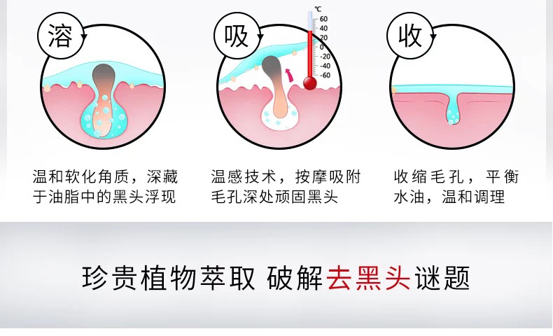 效果是出其不意的好,在我看来可以完全替代传统的黑头导出液,黑头针,以及我们残暴的手指。最大的好处除了温和之外,还可以完全避免毛孔通过传统的方式清理黑头时造成的毛孔越来越粗大的恶性循环。