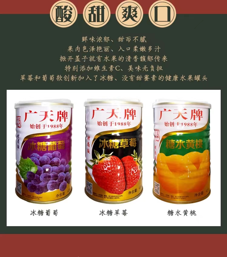 广天牌冰糖草莓水果罐头零食小吃烘焙餐饮罐头