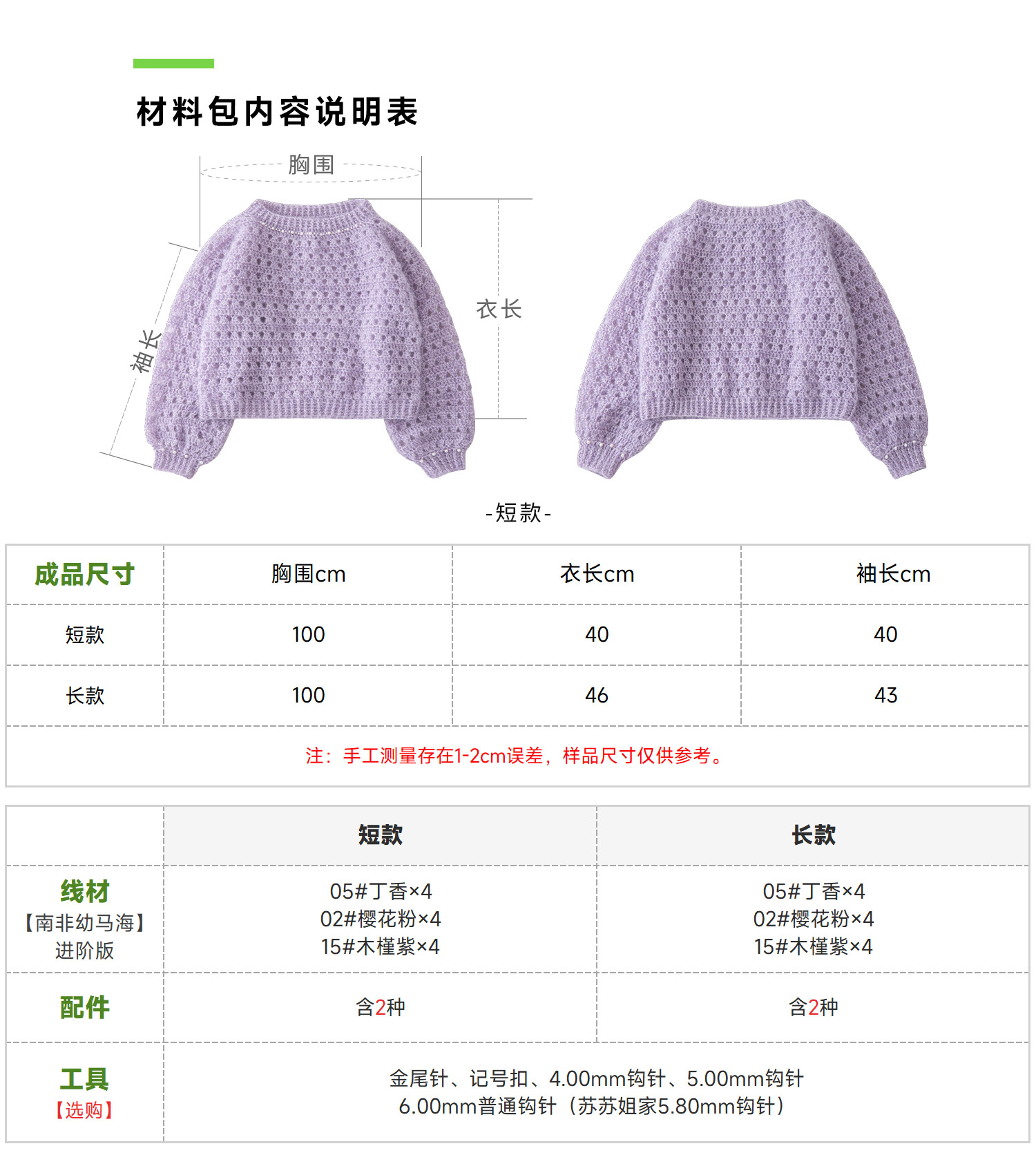 苏苏姐家霁霞浣珠光套头衫手工DIY编织钩针毛线团马海毛材料包
