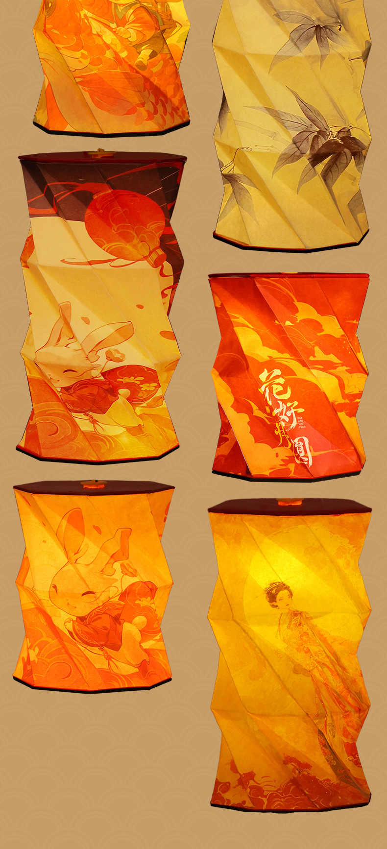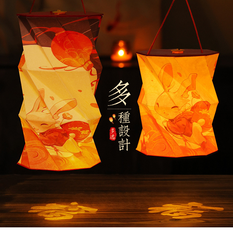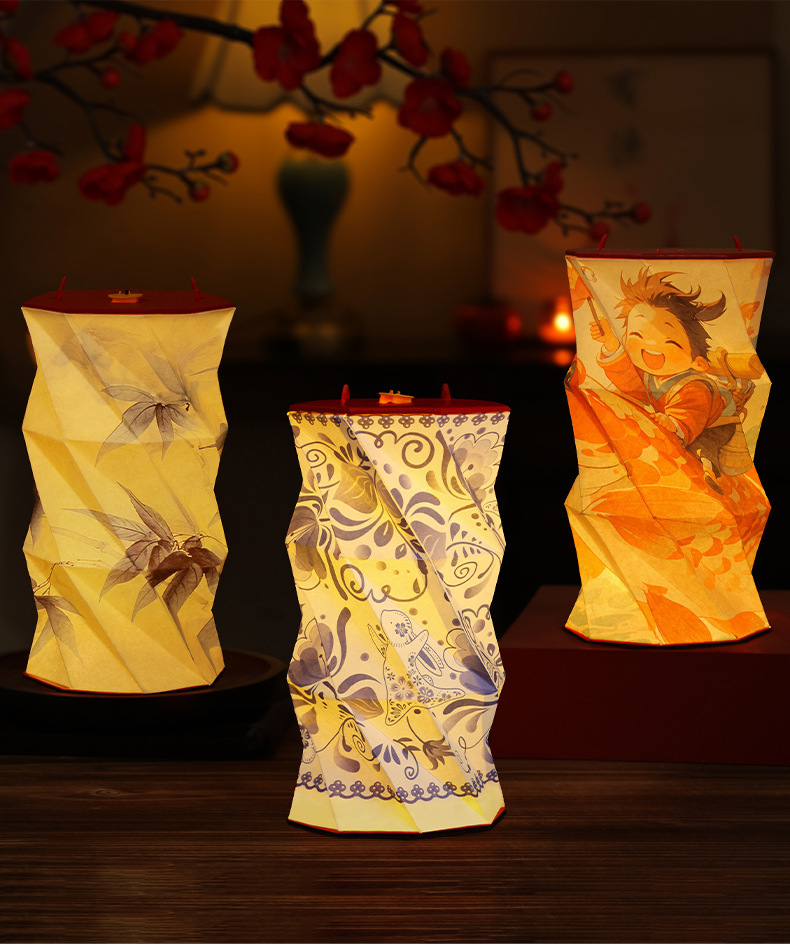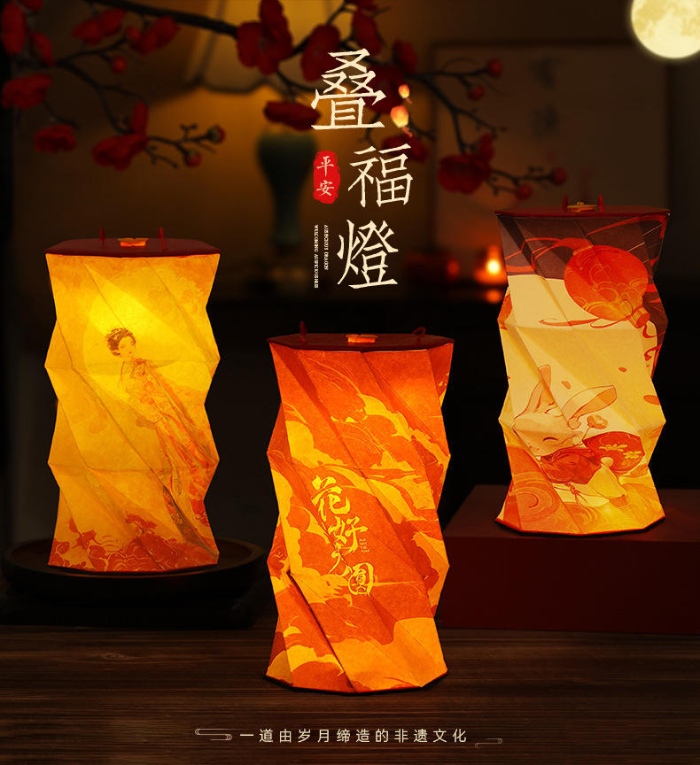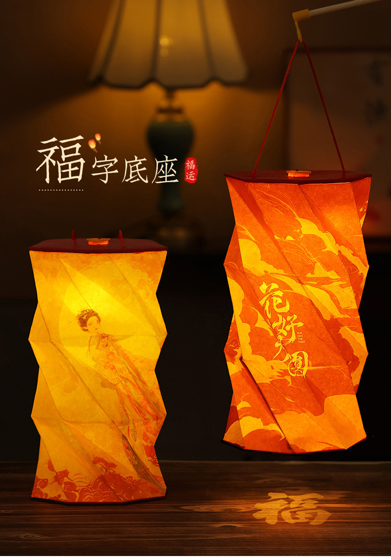 【原創設計,祈福折叠花燈】2025国风纸质手提折叠发光花灯,福字底座高灯彩绘实木提杆,古风拍照道具创意礼物用品QQ新年礼盒年货礼盒直播引流品