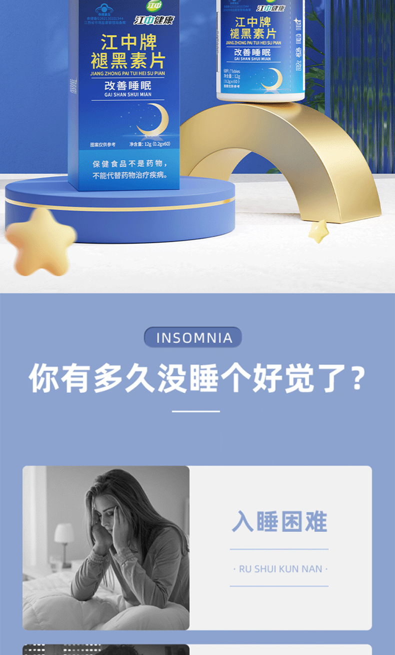 舒适睡眠【改善睡眠】江中牌褪黑素片60片│蓝帽保证睡眠改善 睡前一片 酣睡整晚 江中品牌直发