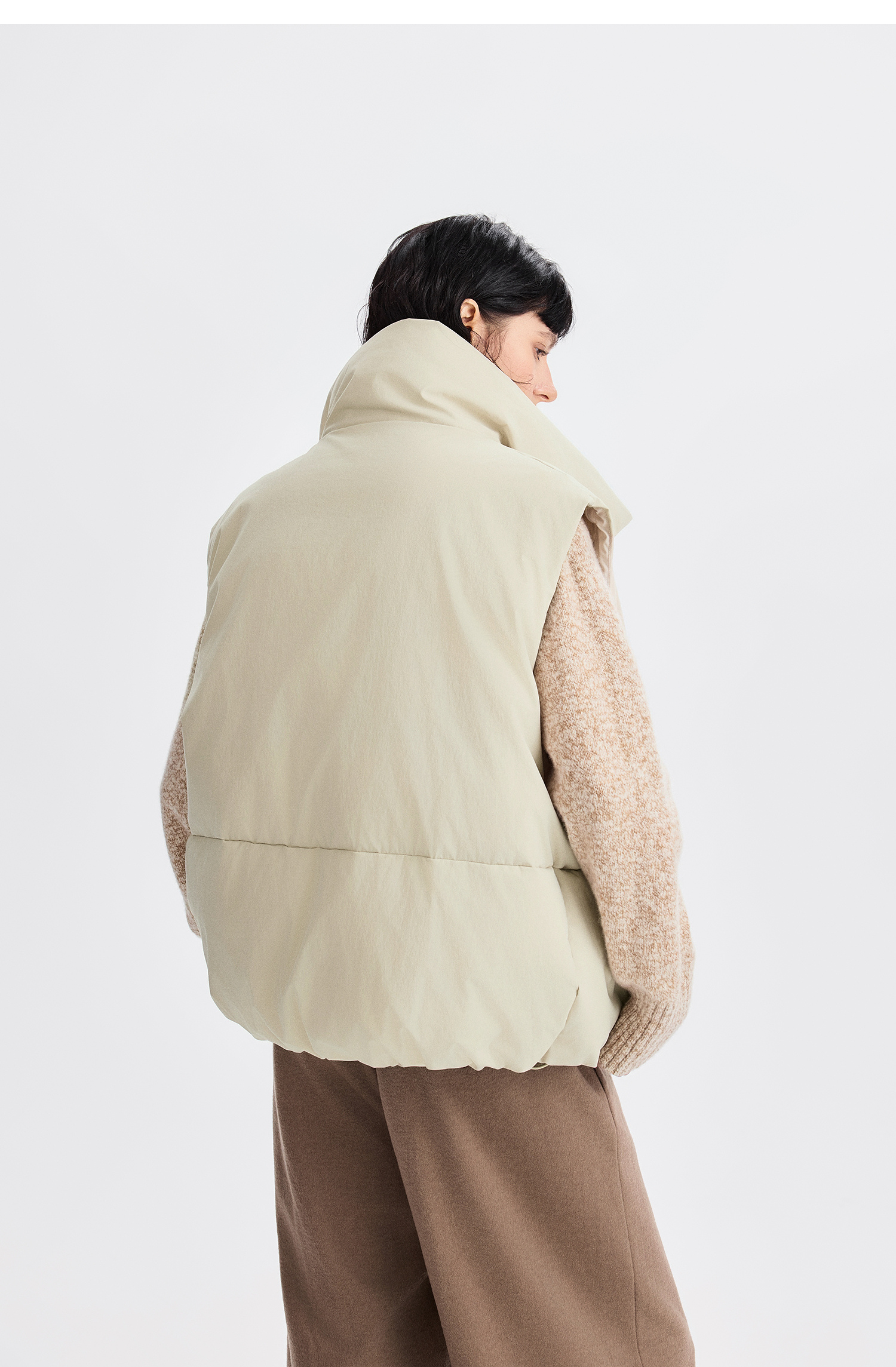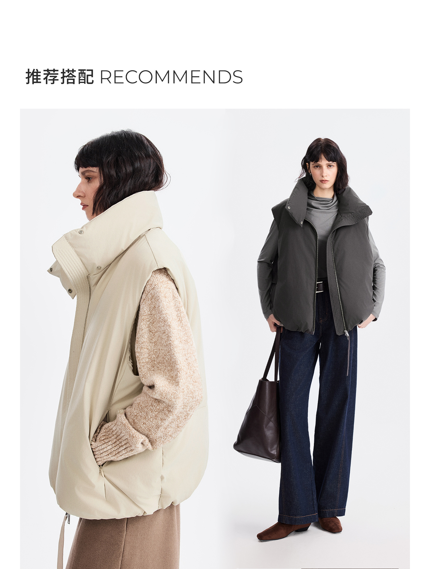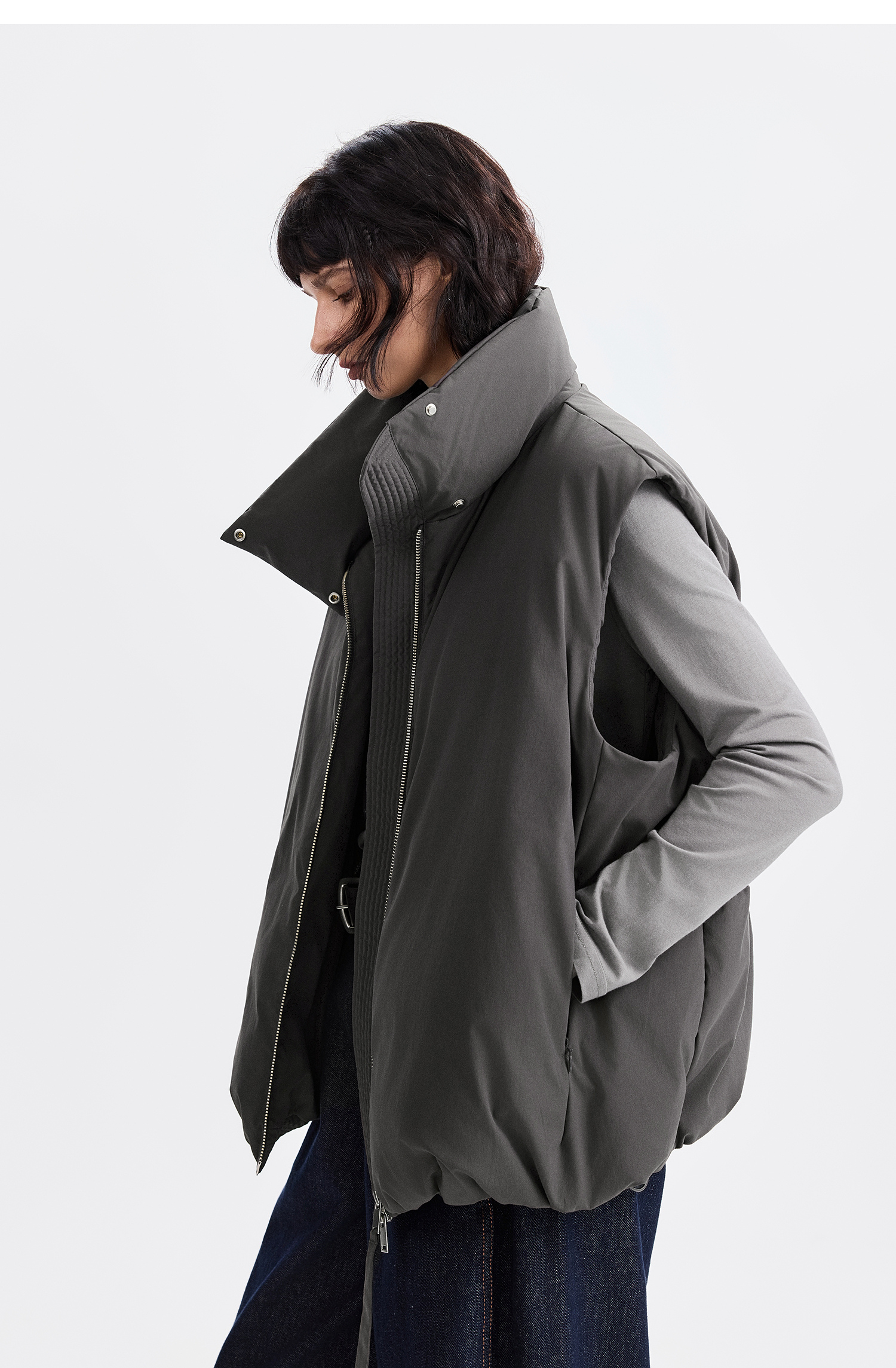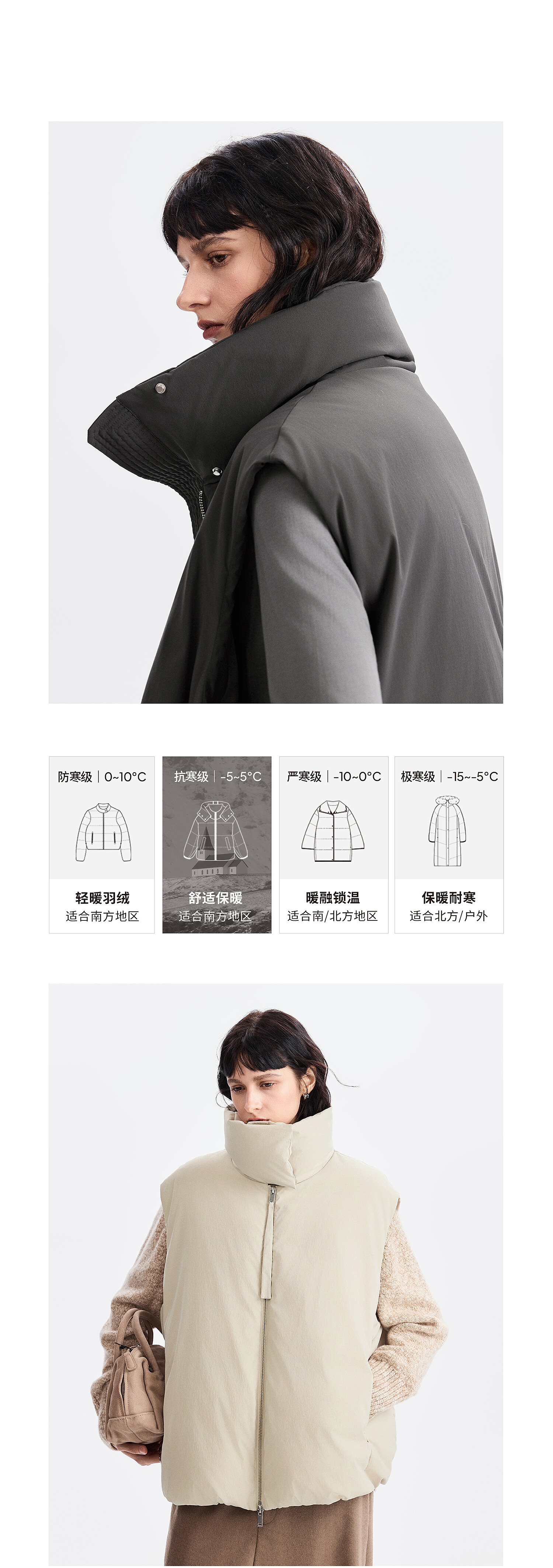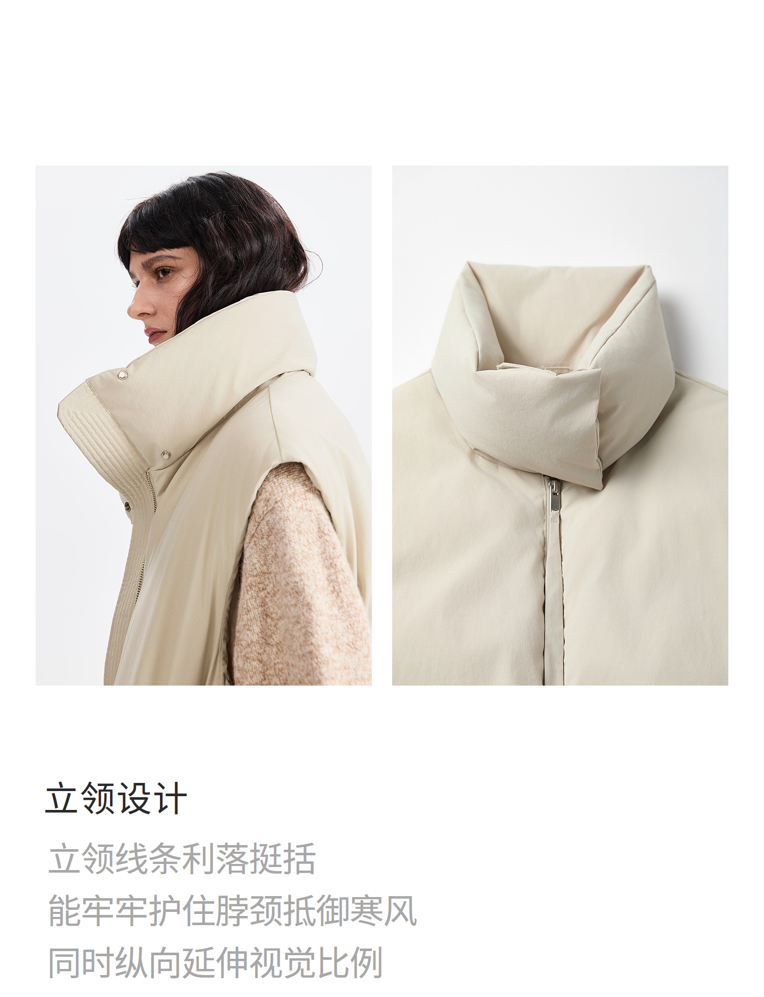 棉仓367615005-90白鹅绒立领羽绒马甲女 25冬新品鹅绒服保暖廓形叠穿面包服