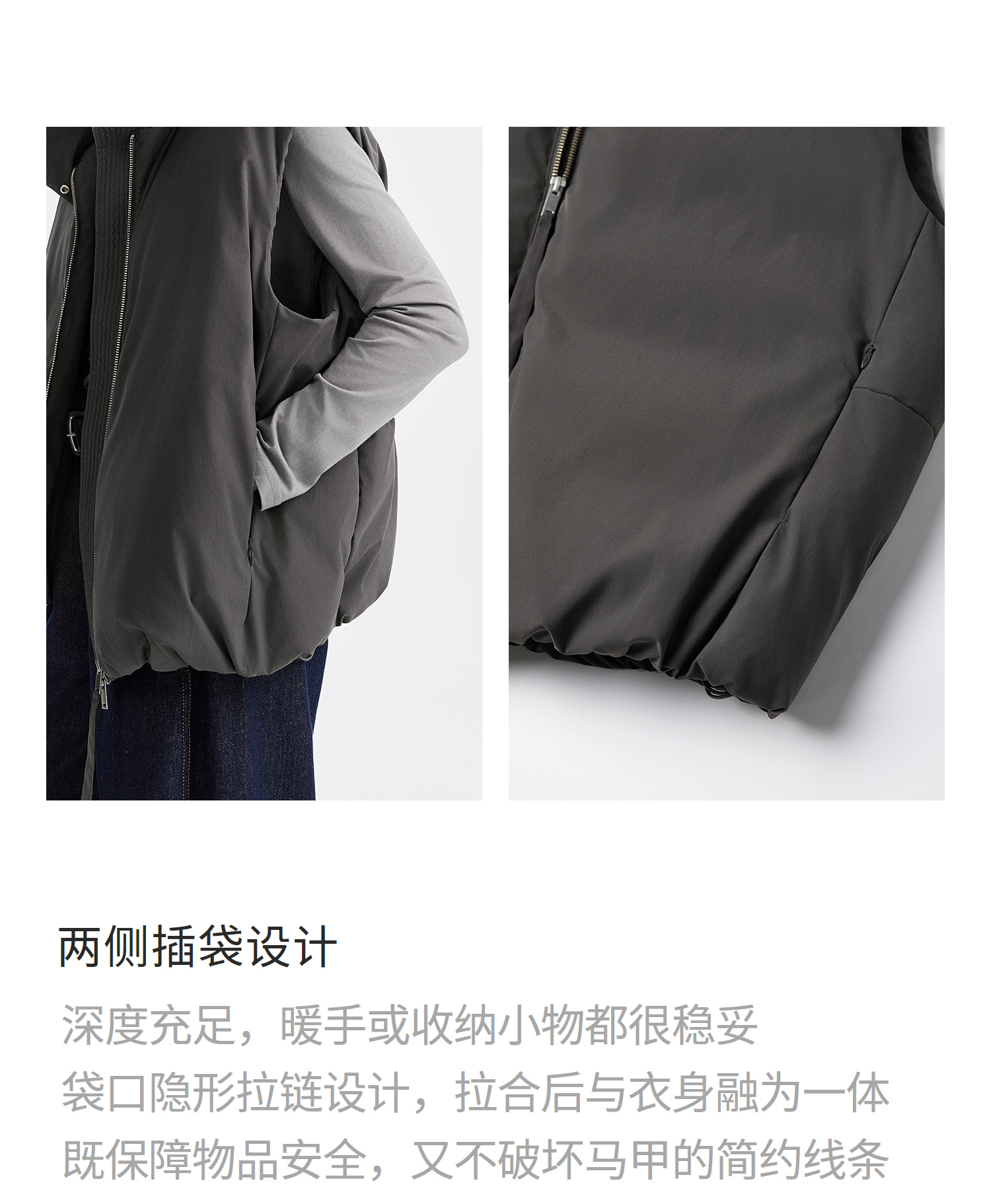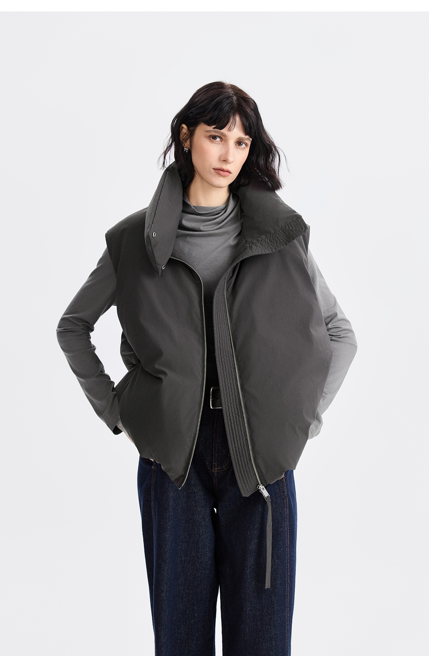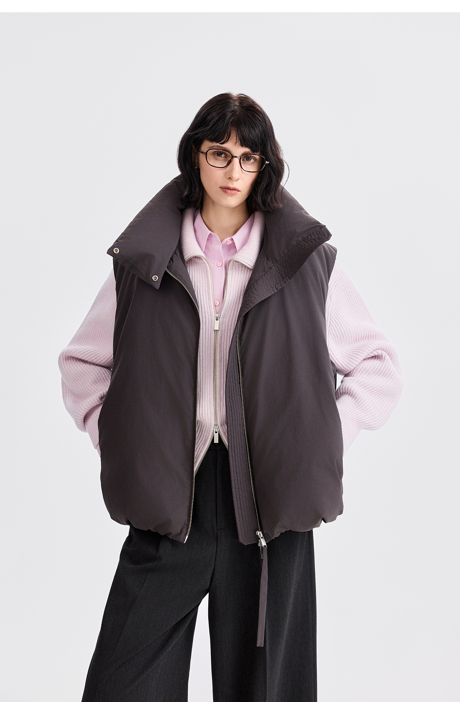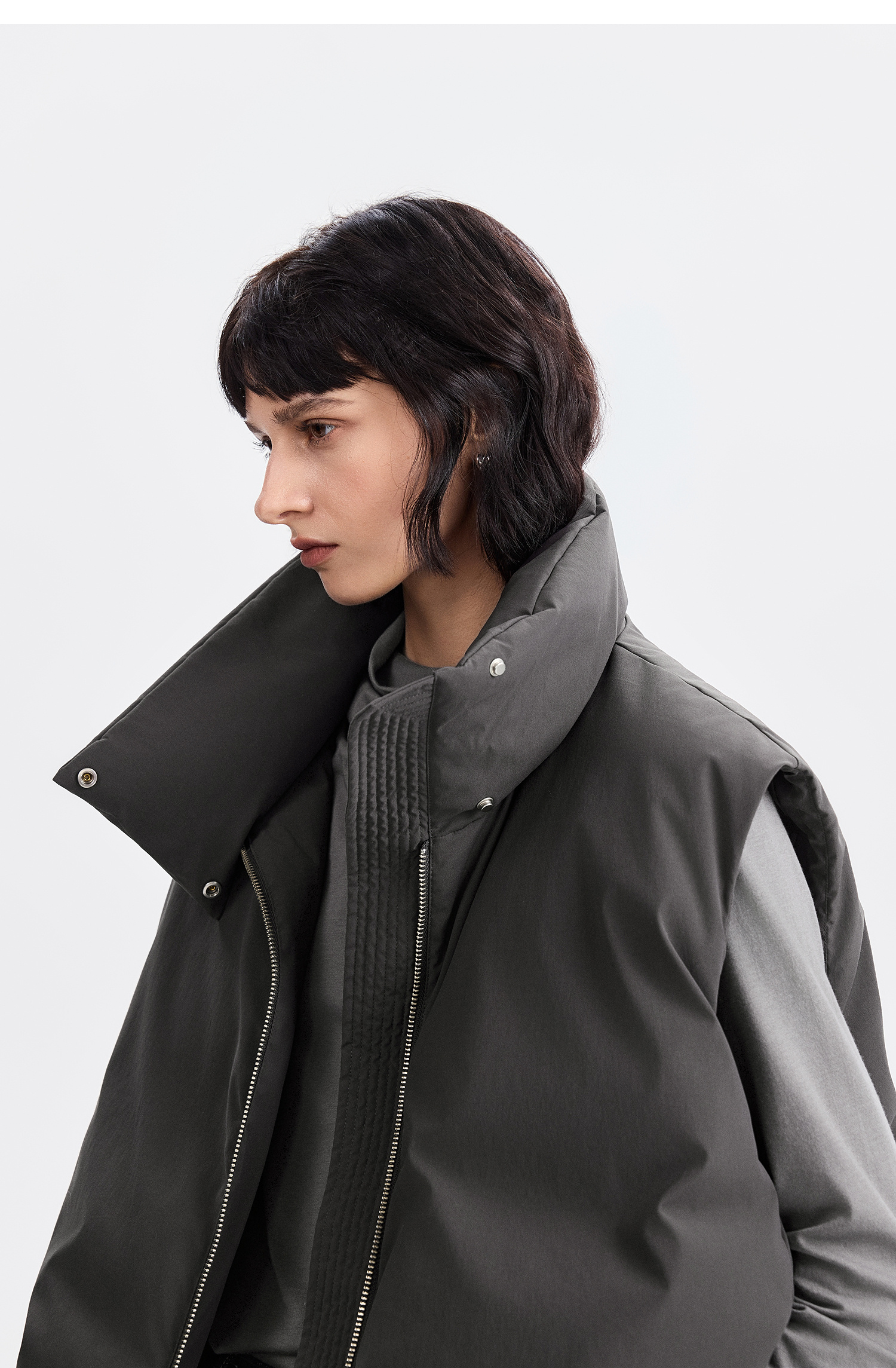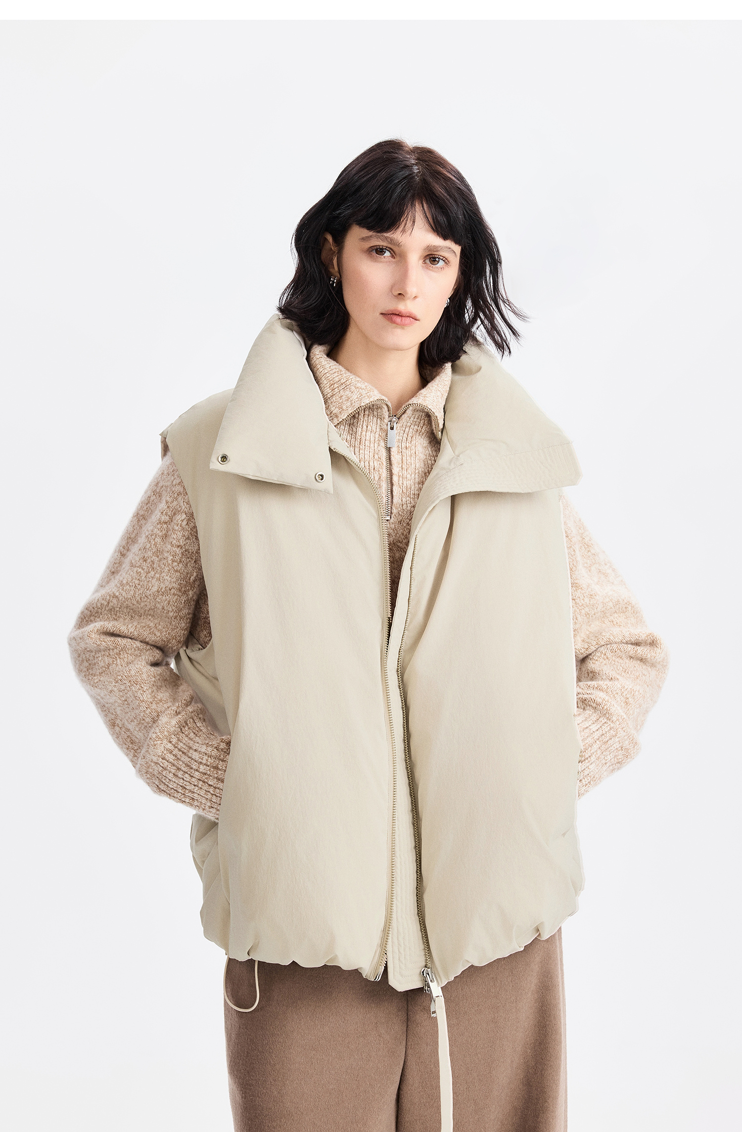 棉仓367615005-90白鹅绒立领羽绒马甲女 25冬新品鹅绒服保暖廓形叠穿面包服