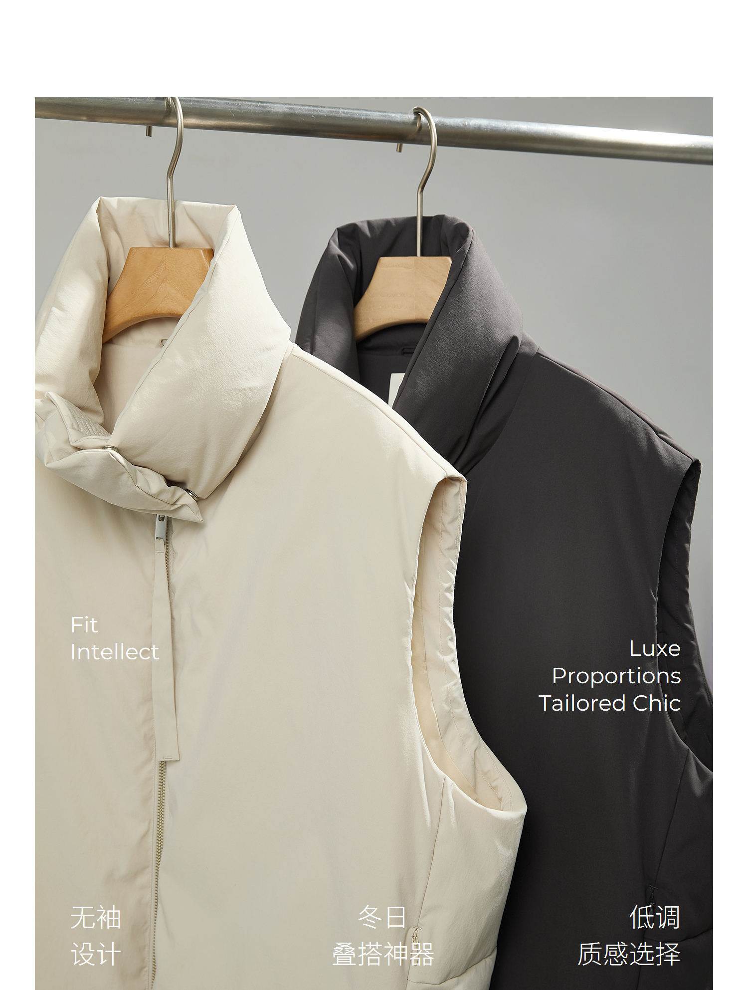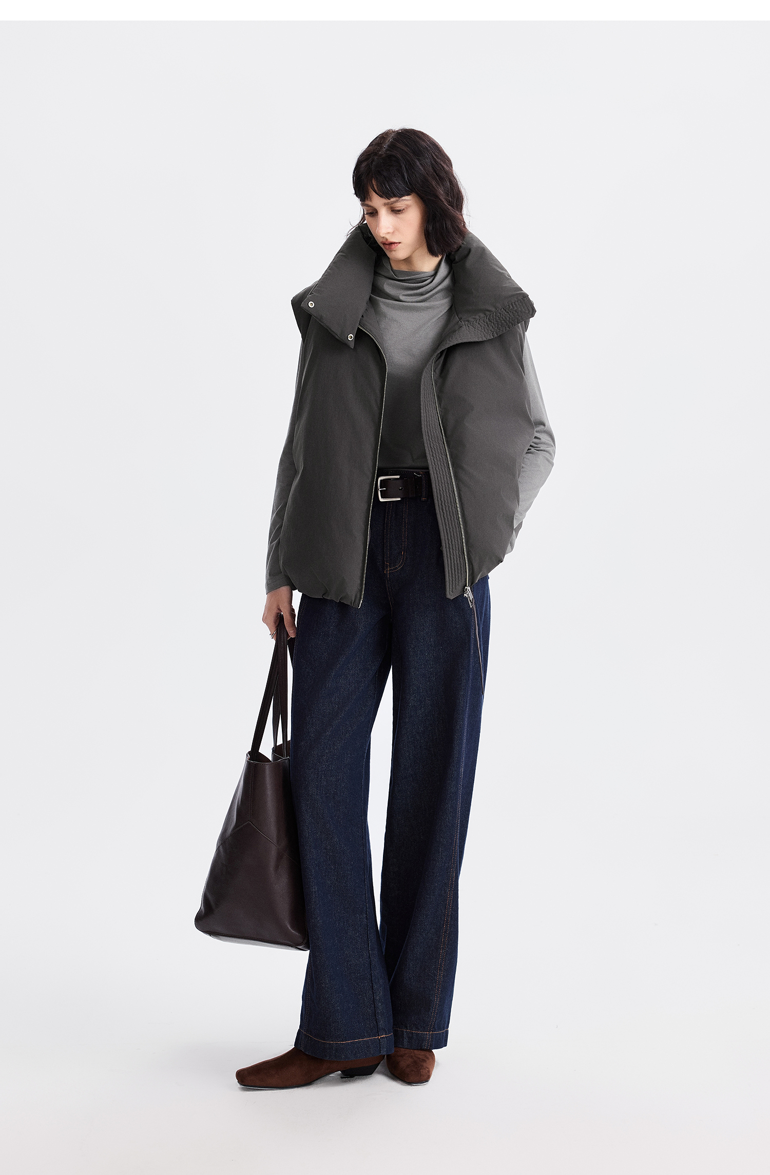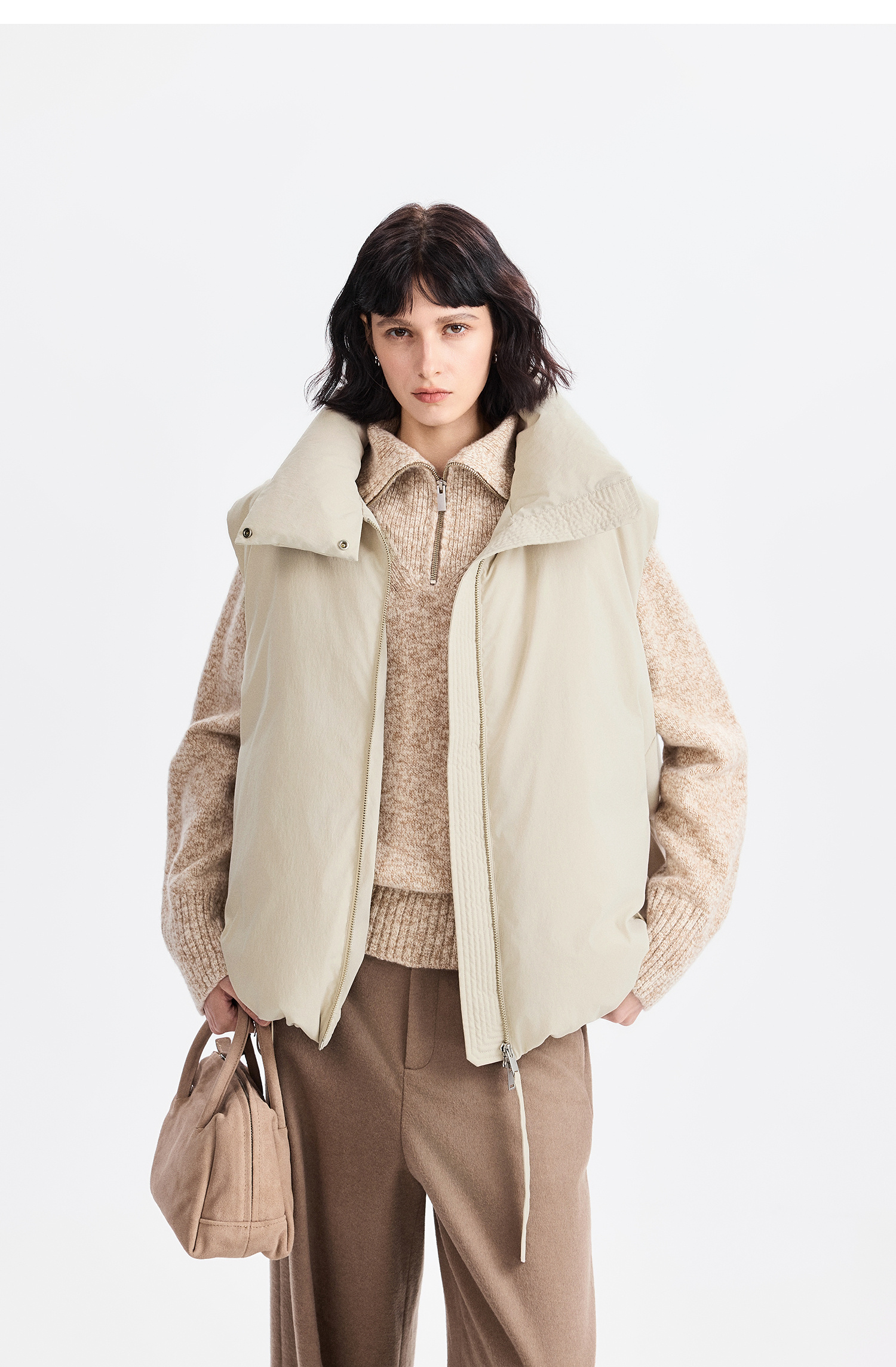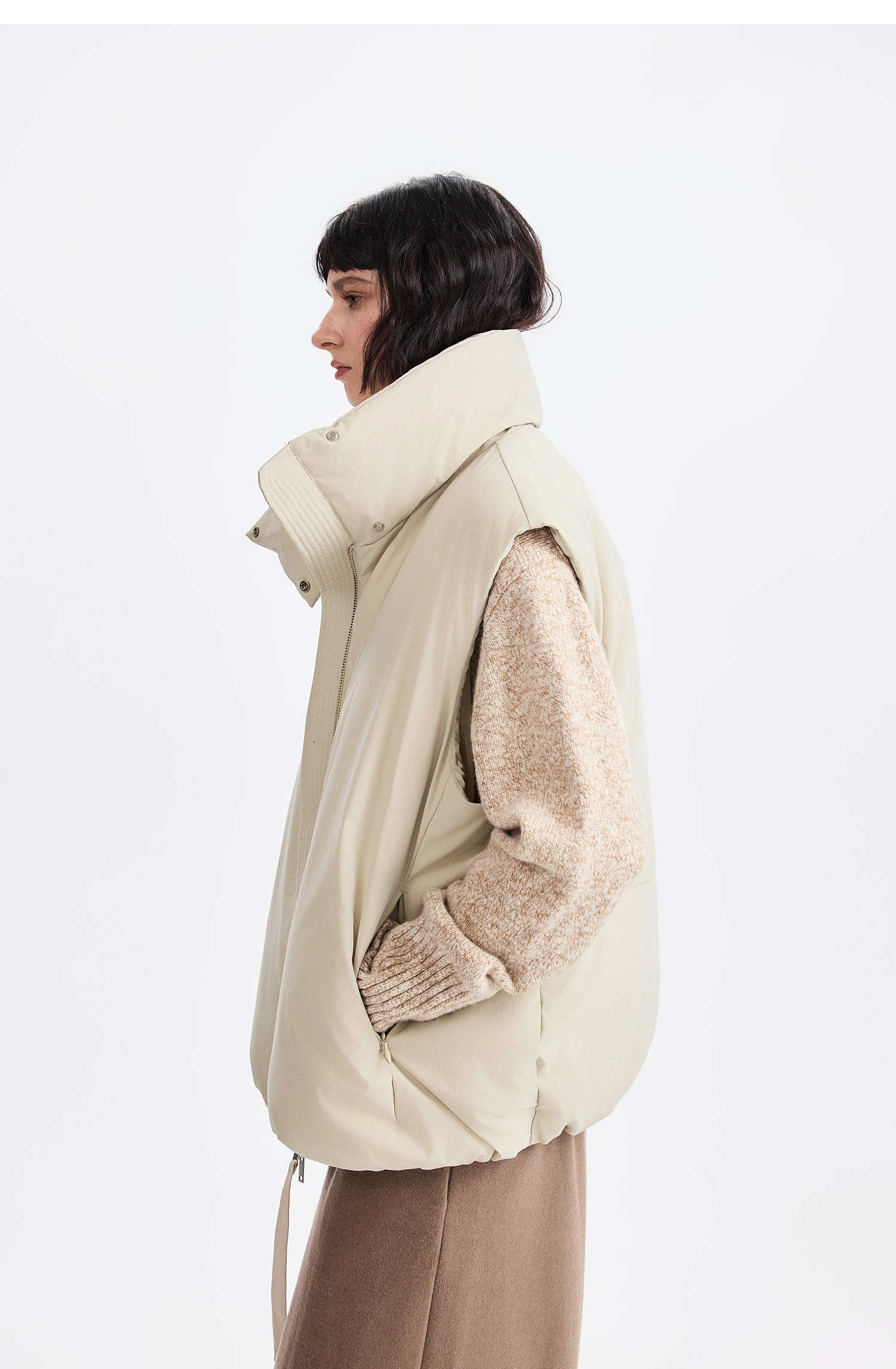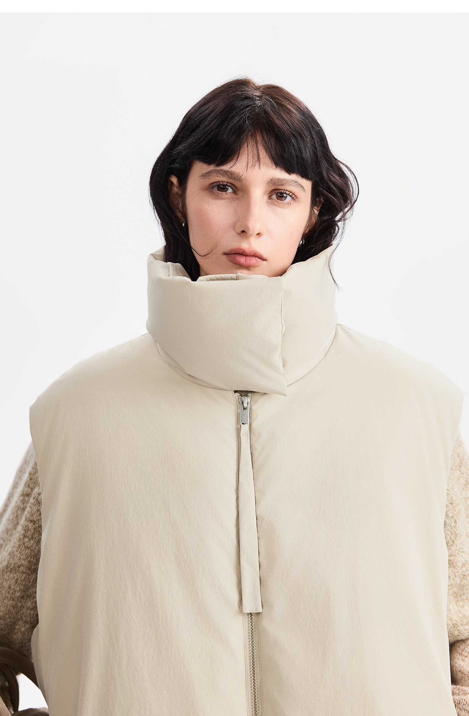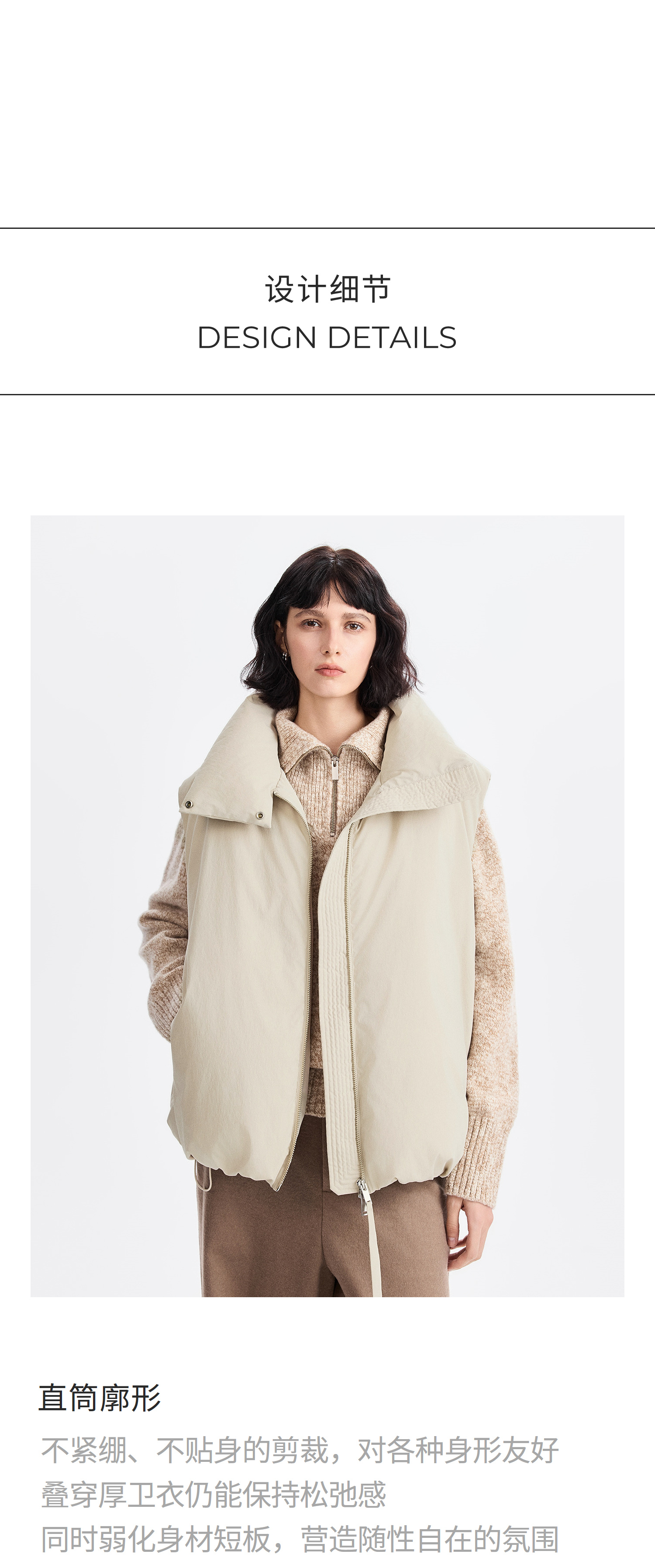 棉仓367615005-90白鹅绒立领羽绒马甲女 25冬新品鹅绒服保暖廓形叠穿面包服