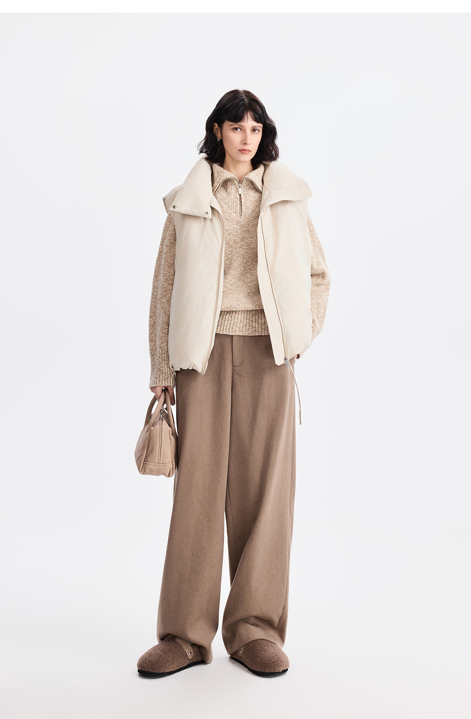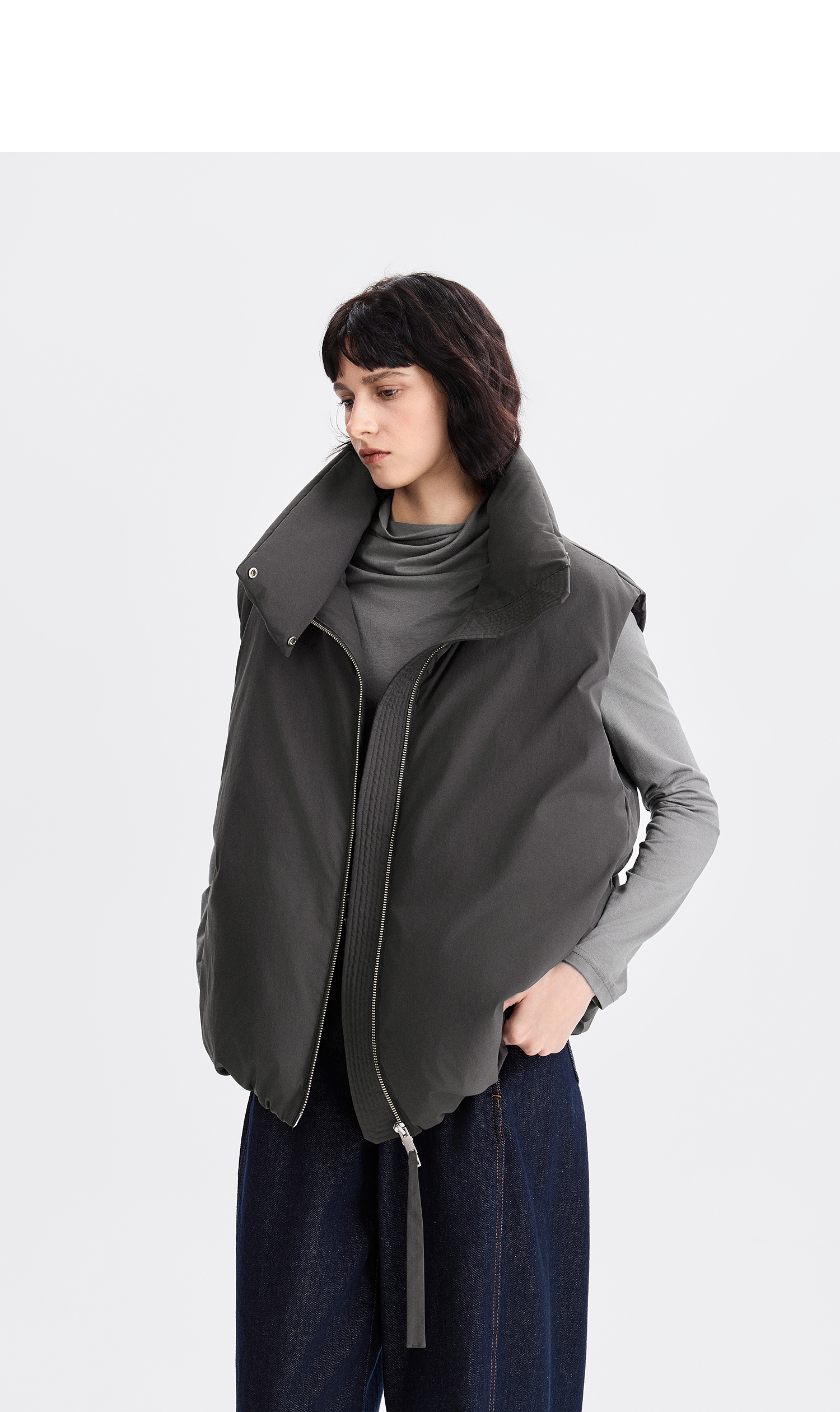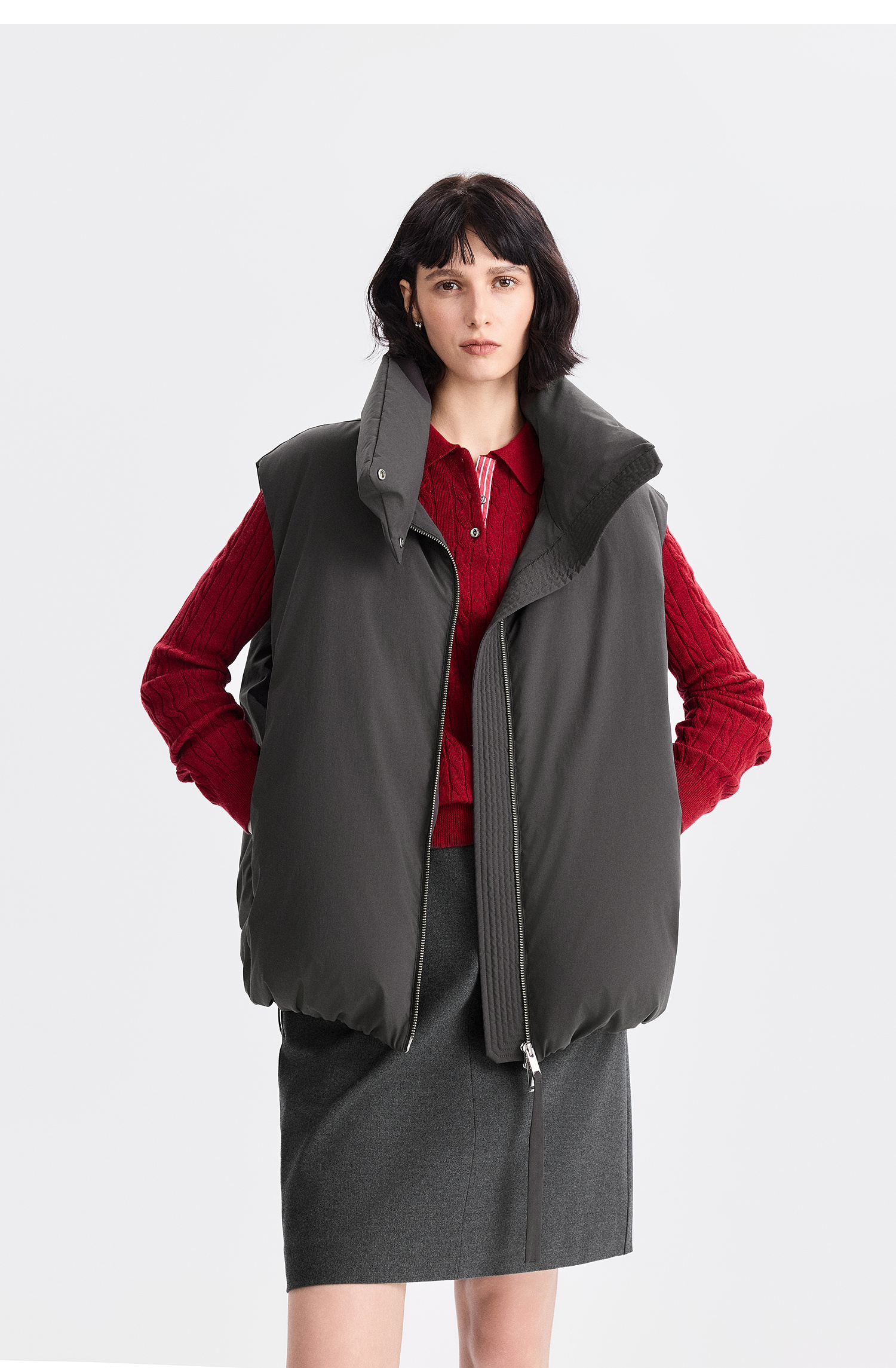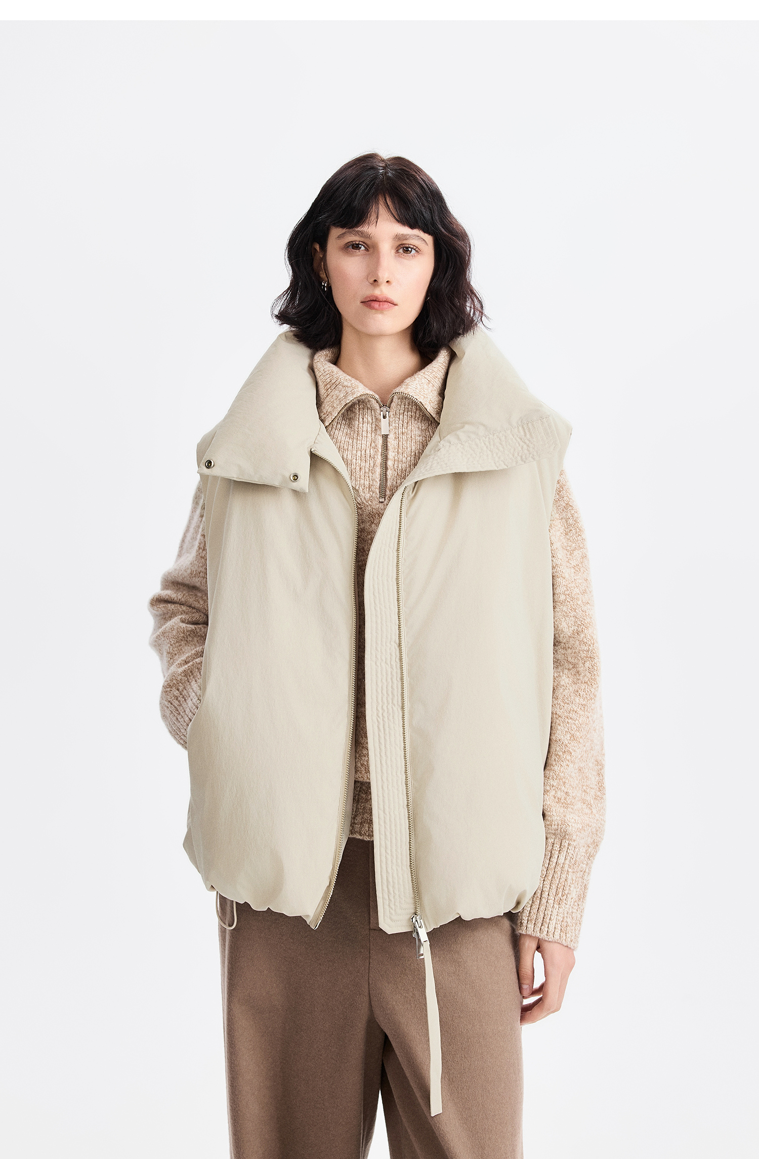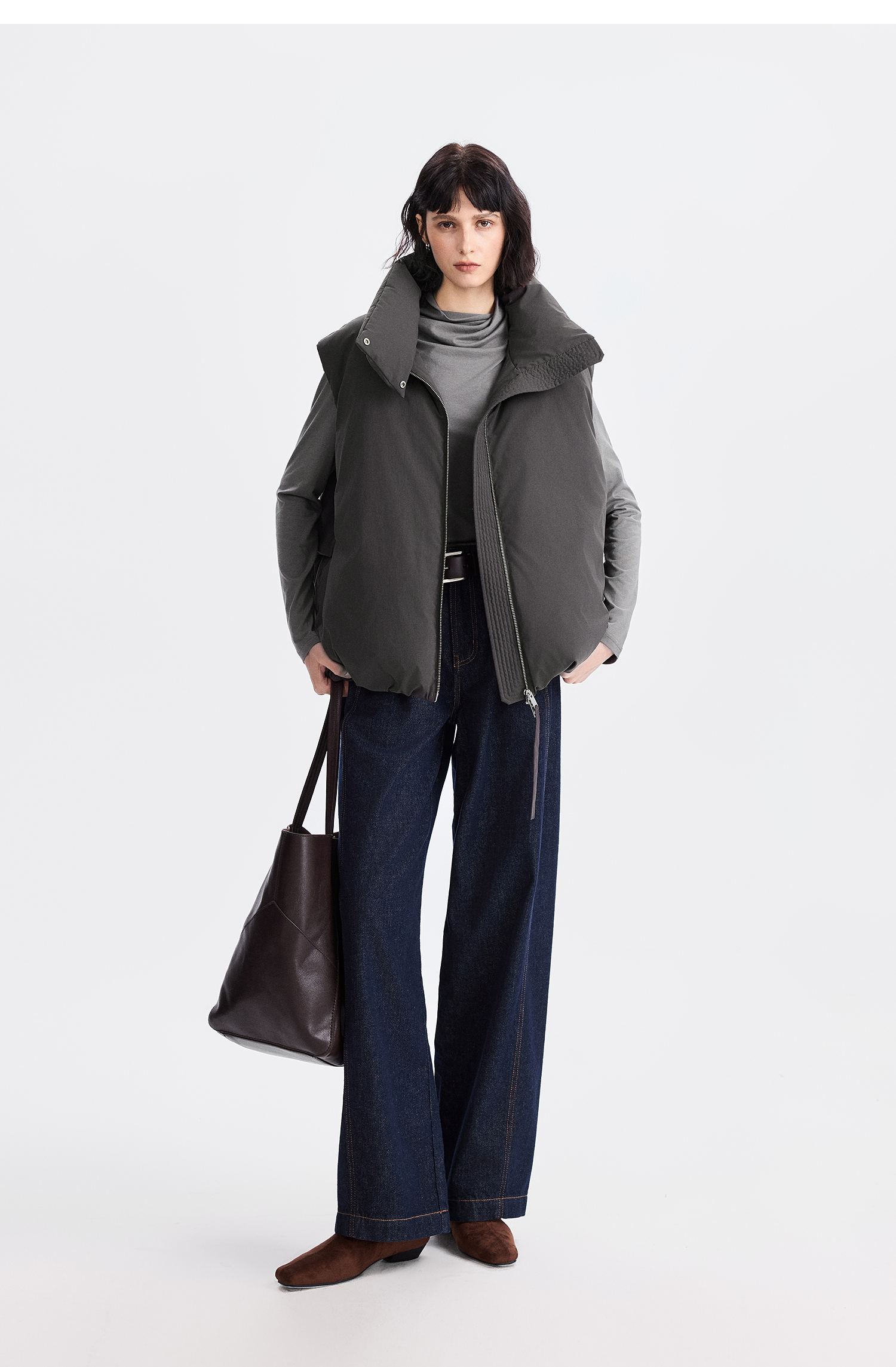 棉仓367615005-90白鹅绒立领羽绒马甲女 25冬新品鹅绒服保暖廓形叠穿面包服