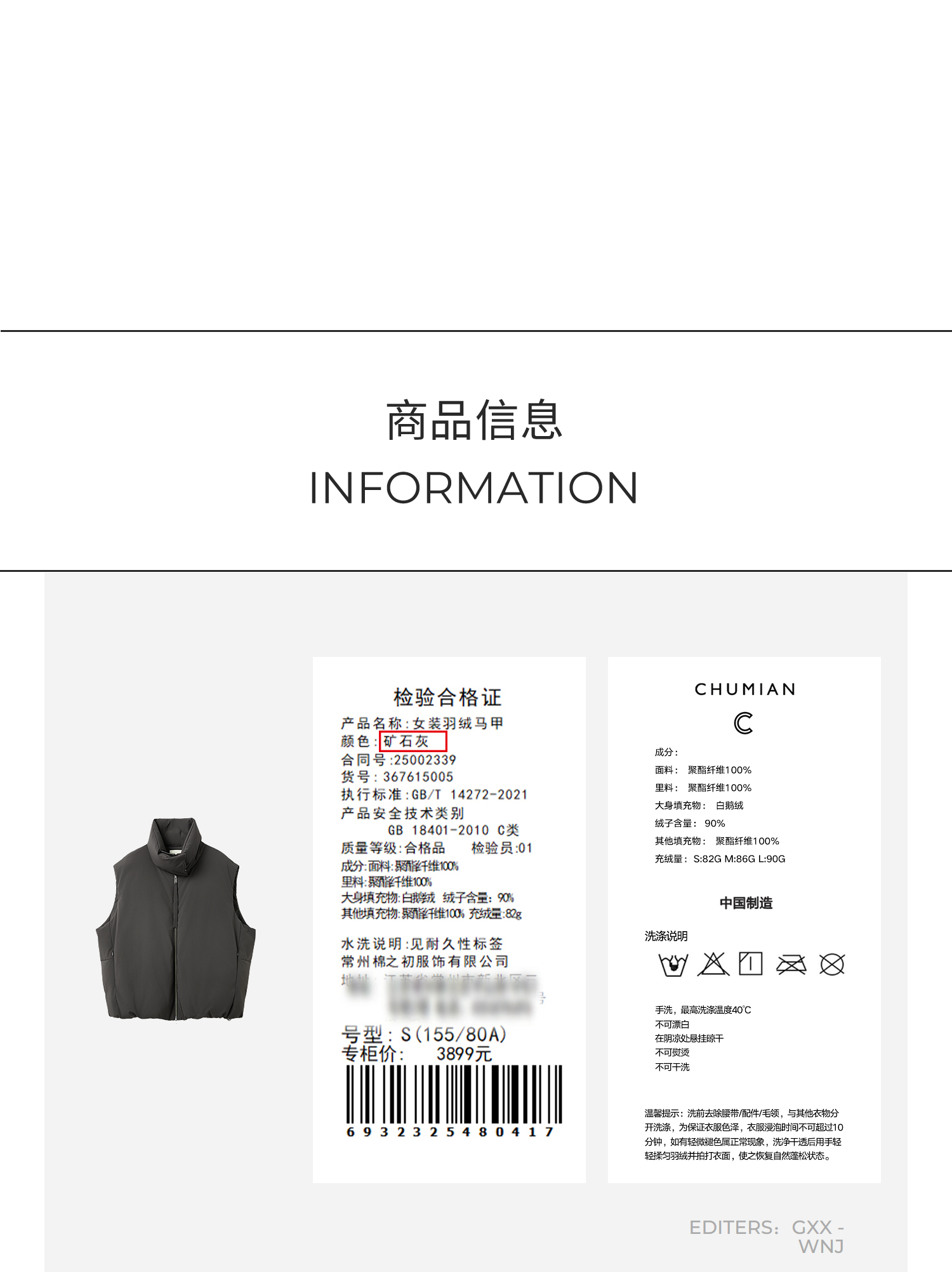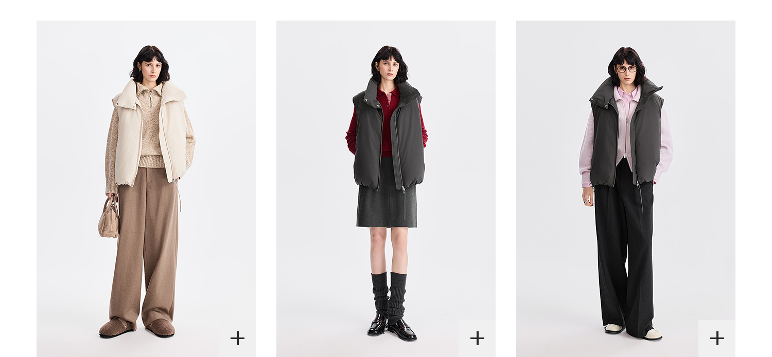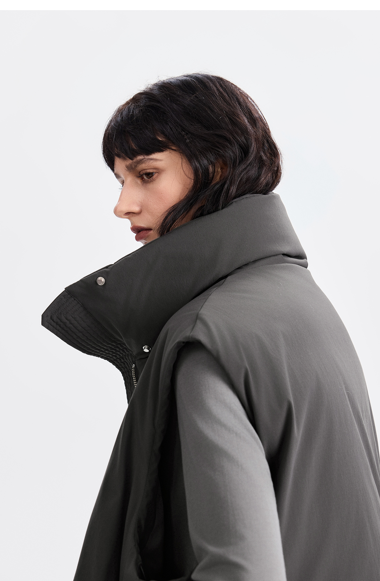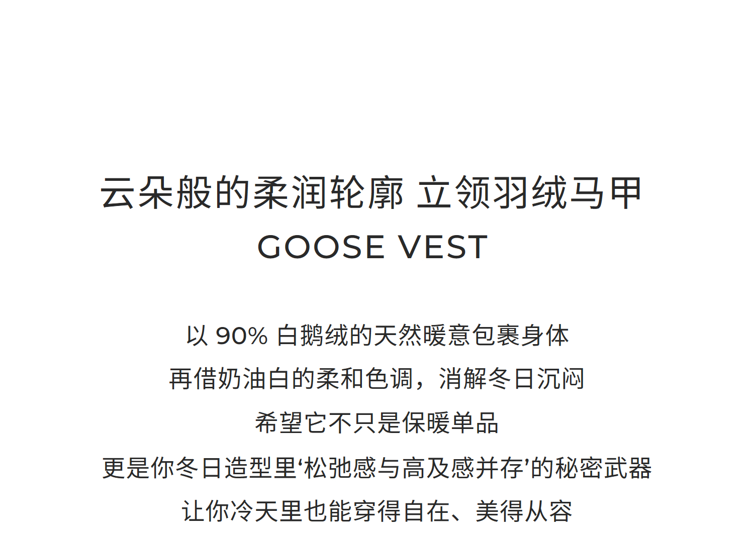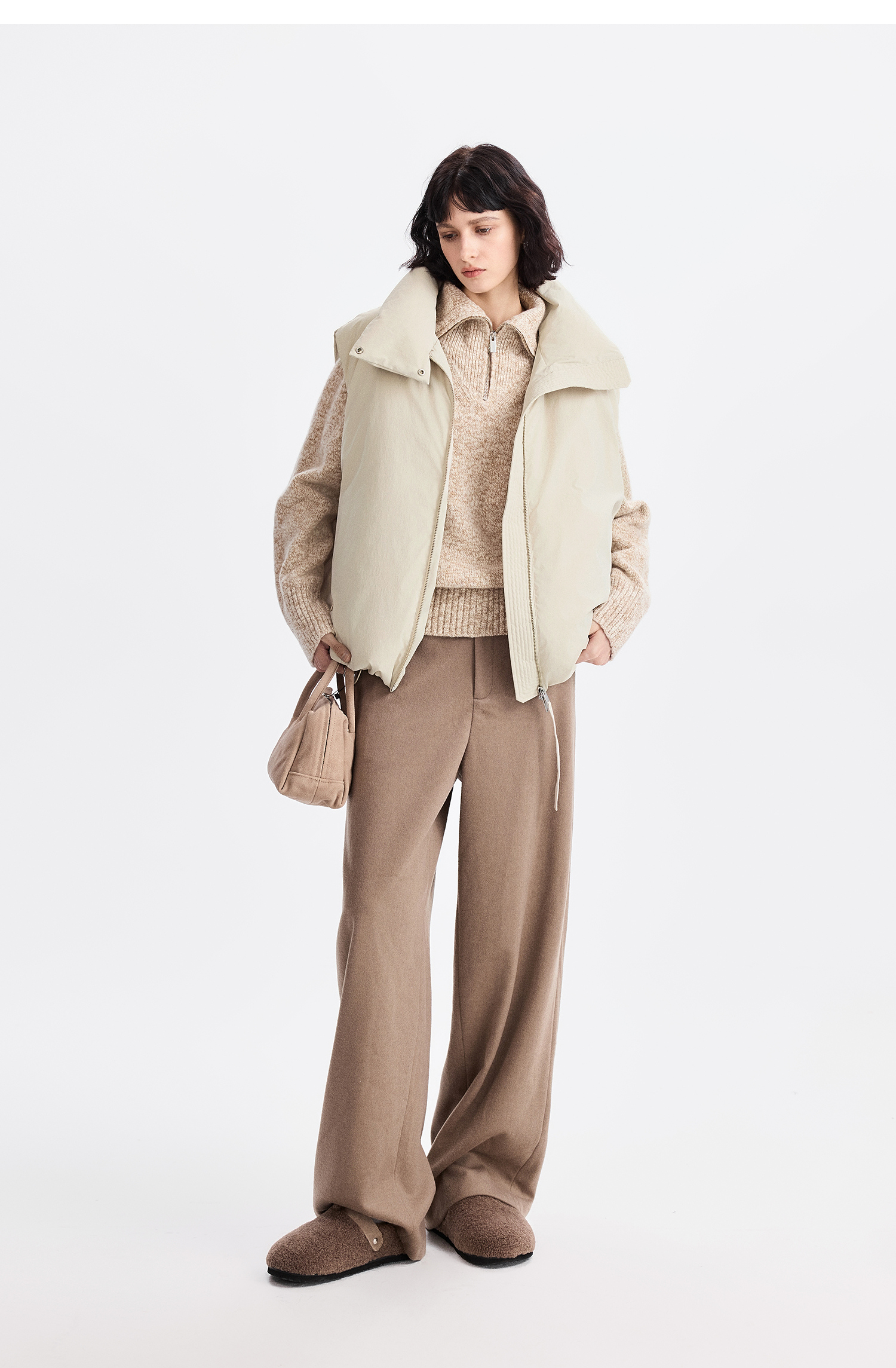 棉仓367615005-90白鹅绒立领羽绒马甲女 25冬新品鹅绒服保暖廓形叠穿面包服