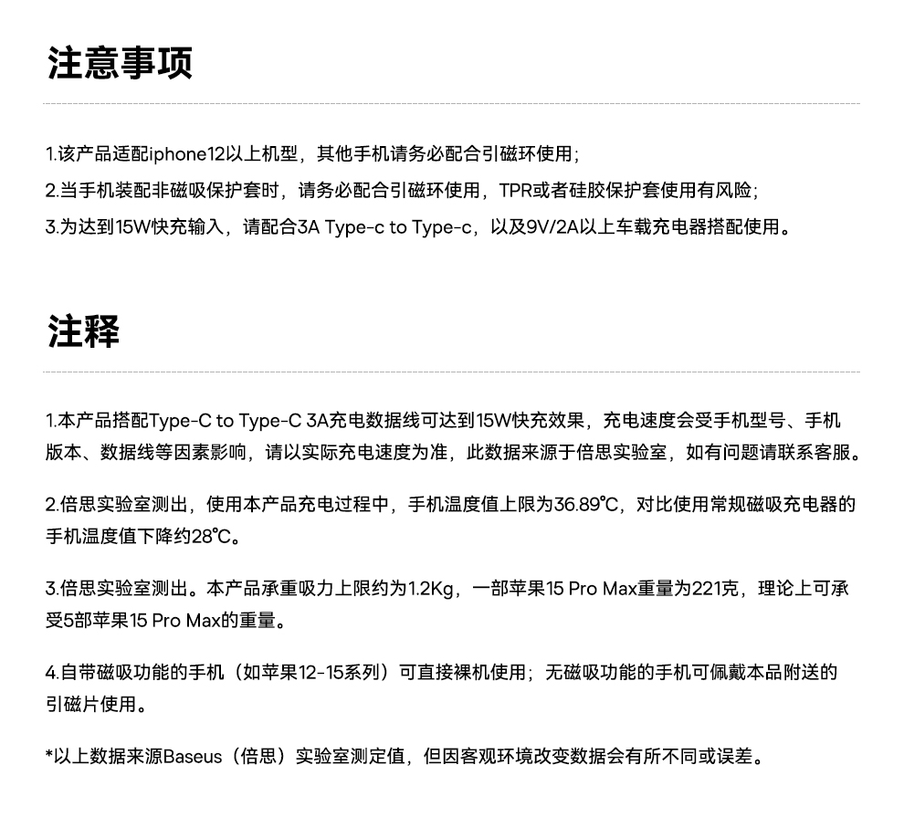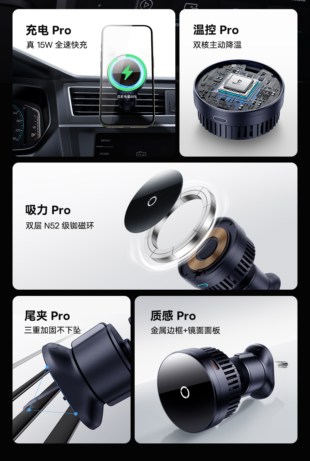 倍思 MagPro 磁吸无线充 车载支架 出风口版 15W