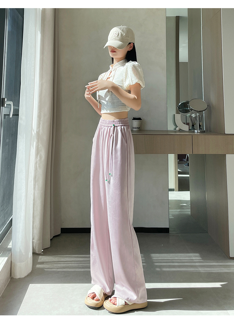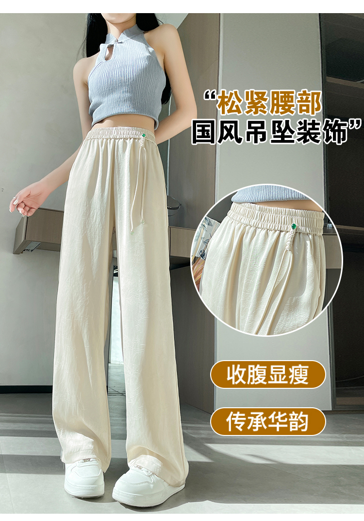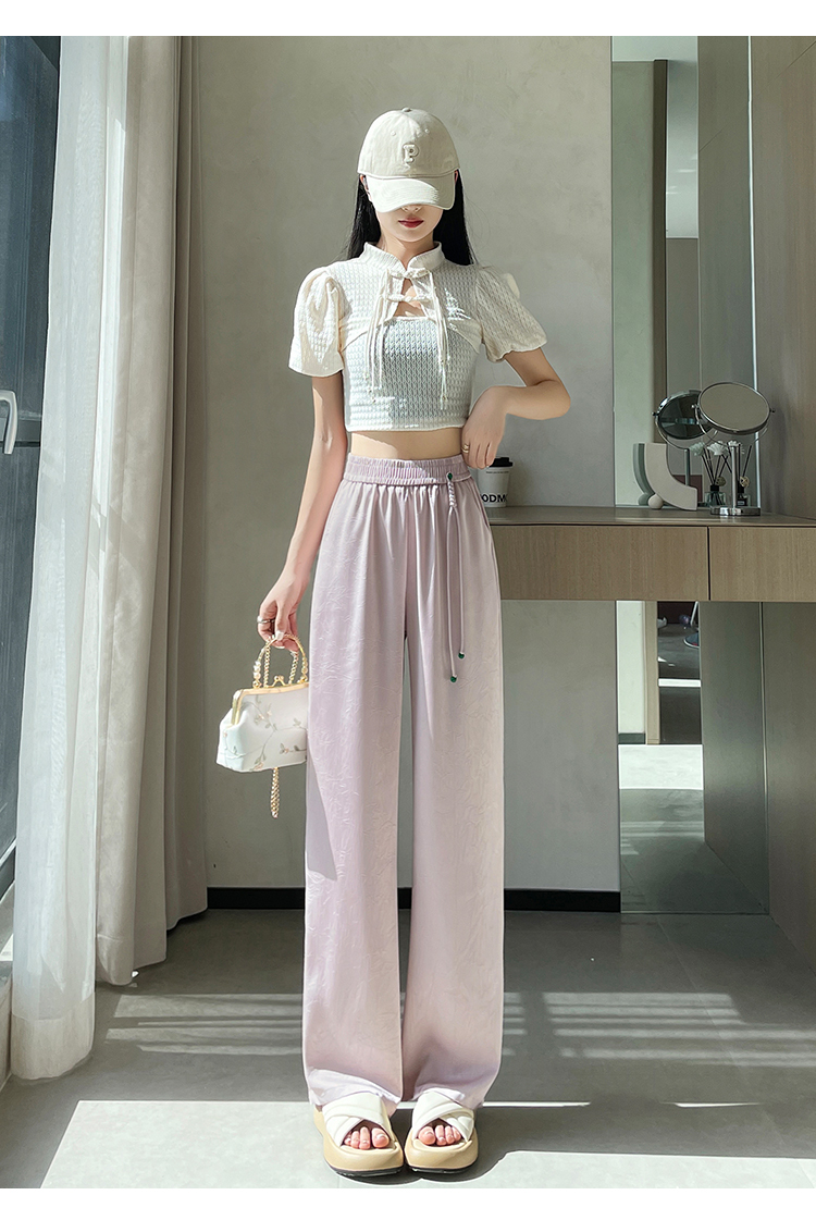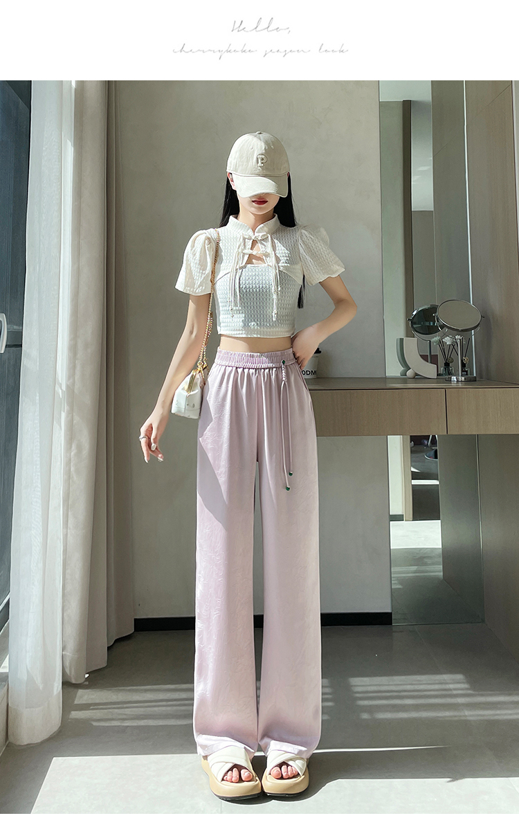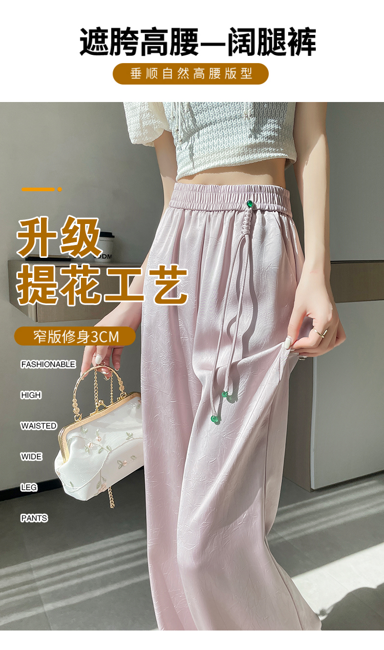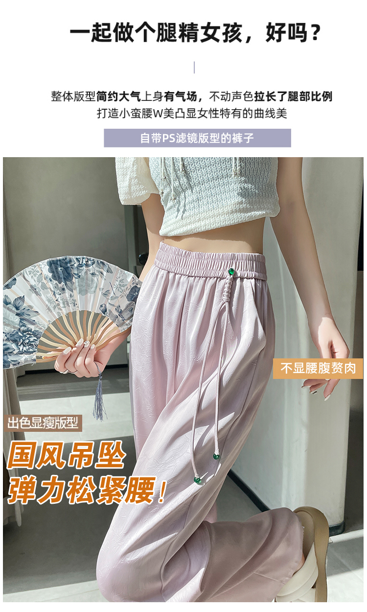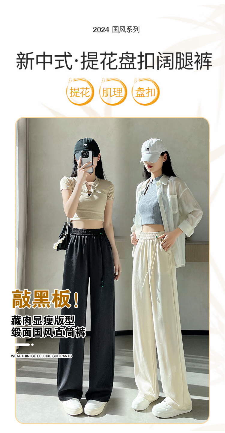 新中式国风提花阔腿裤 高腰盘扣设计 显瘦垂感时尚休闲裤
