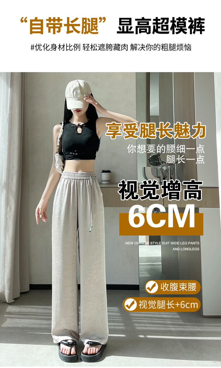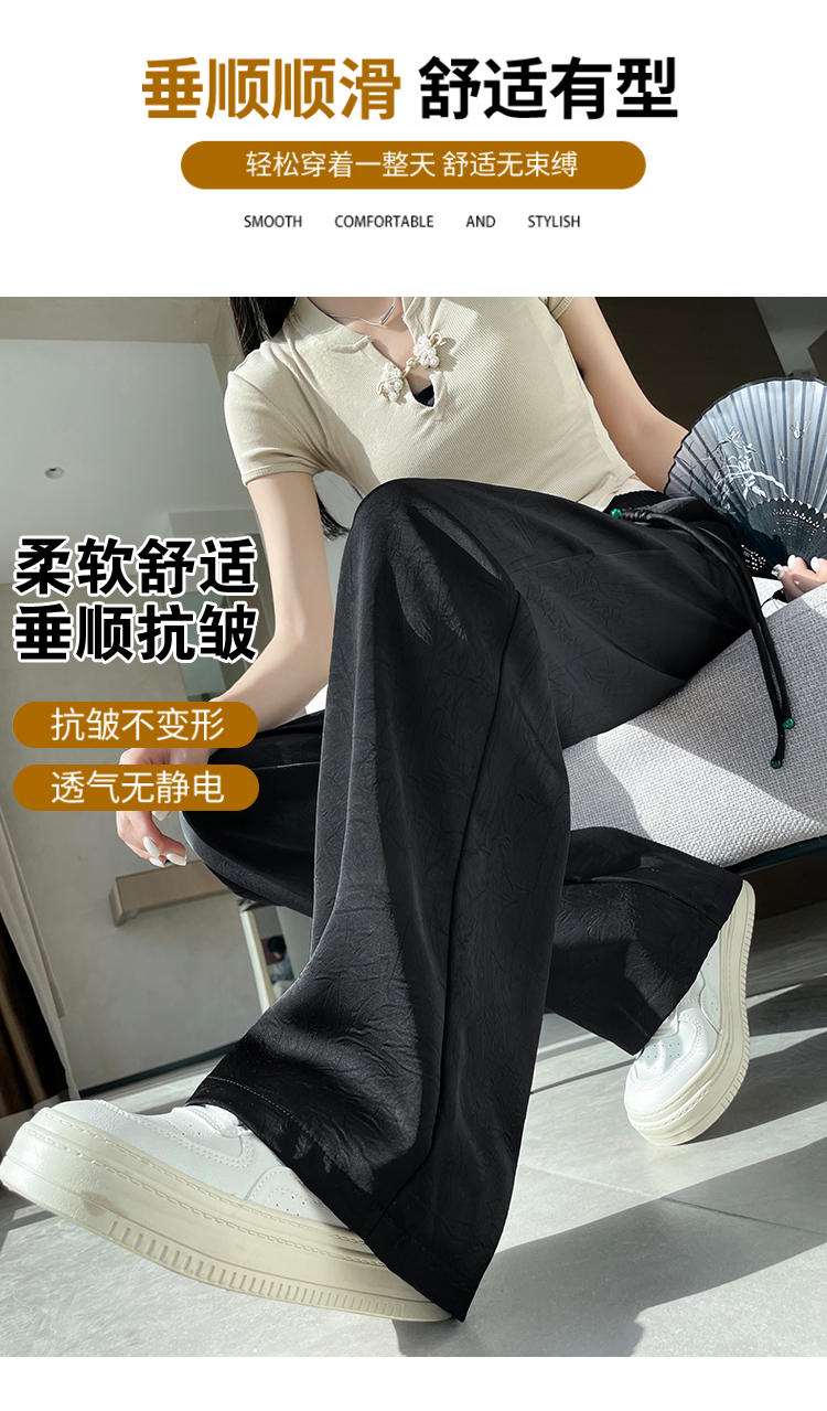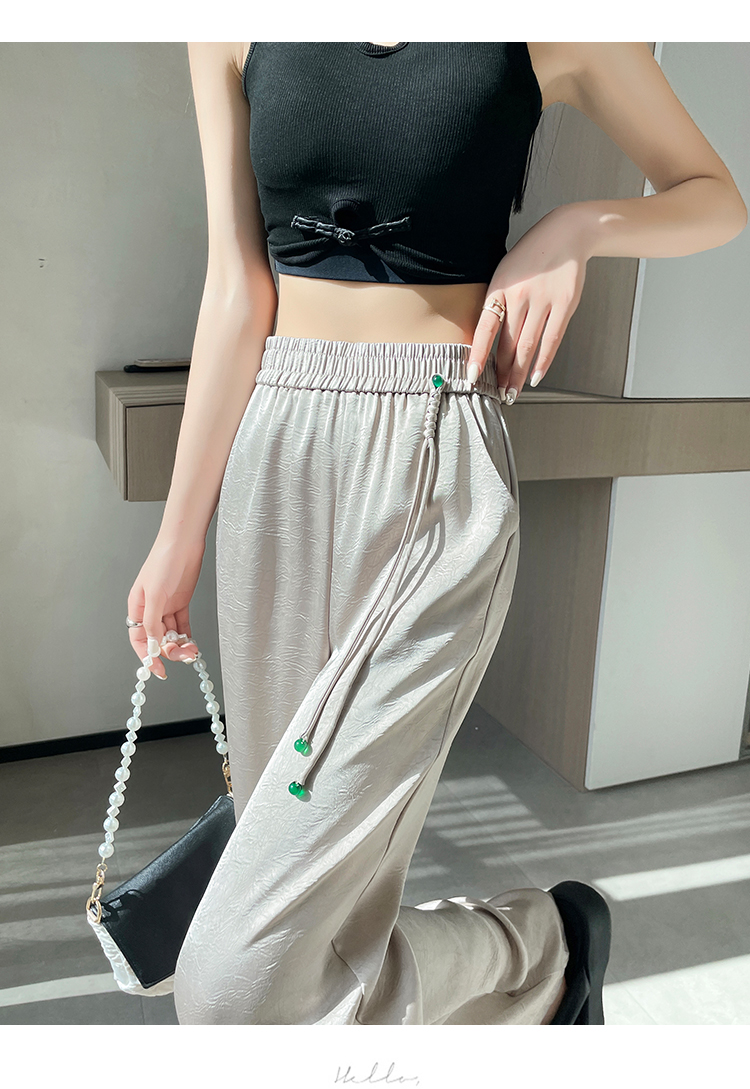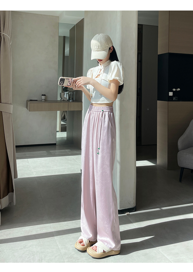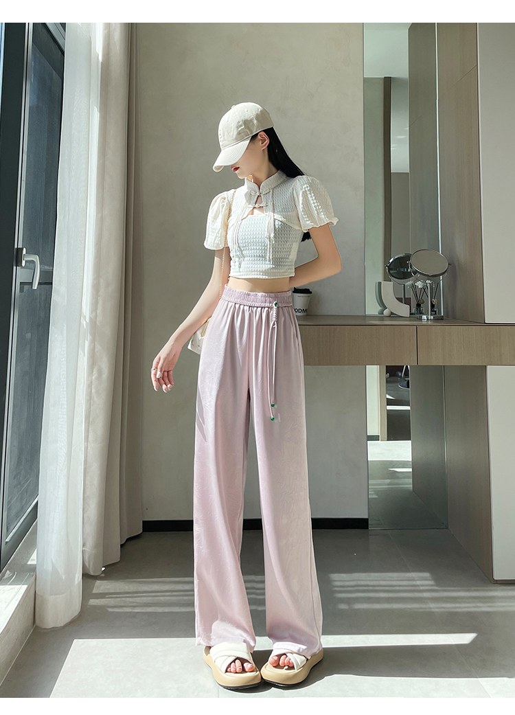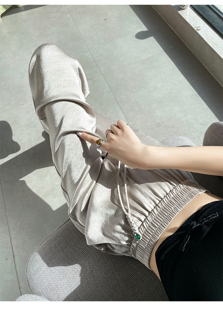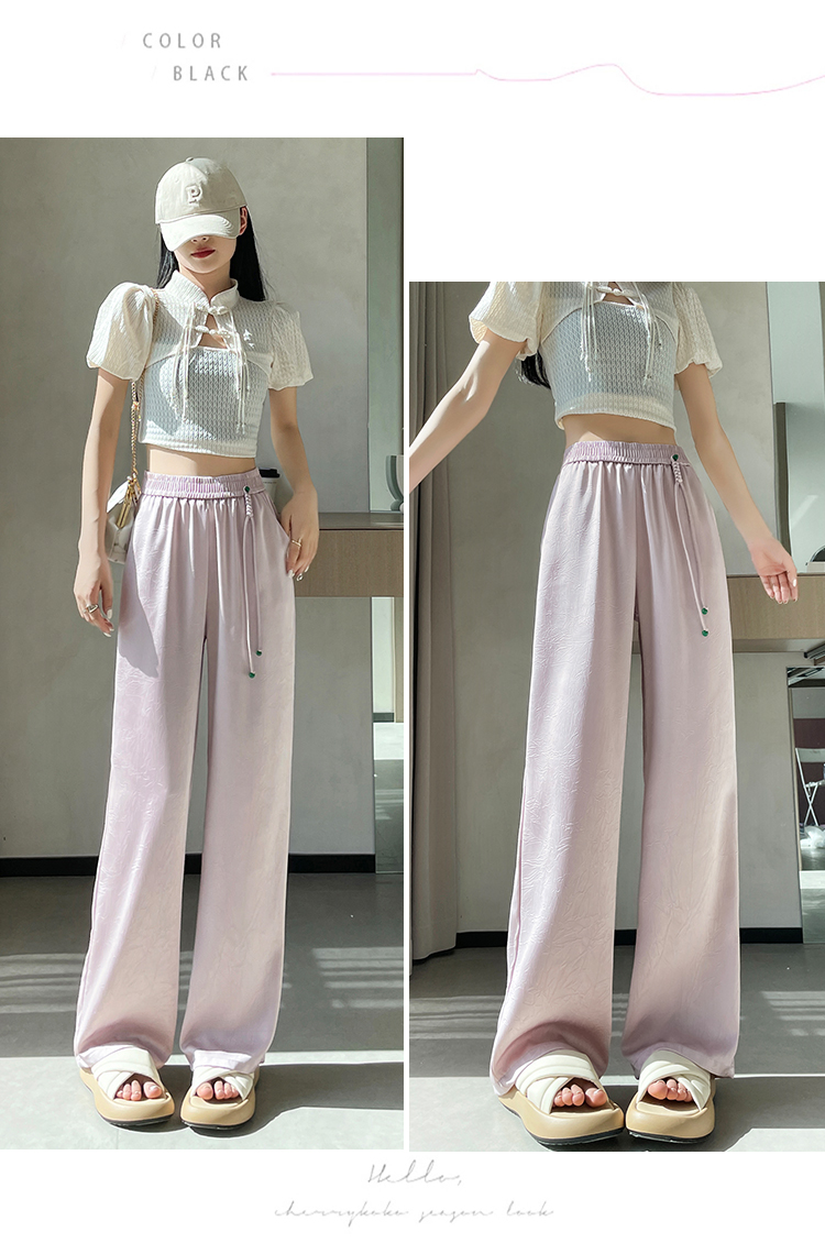 新中式国风提花阔腿裤 高腰盘扣设计 显瘦垂感时尚休闲裤