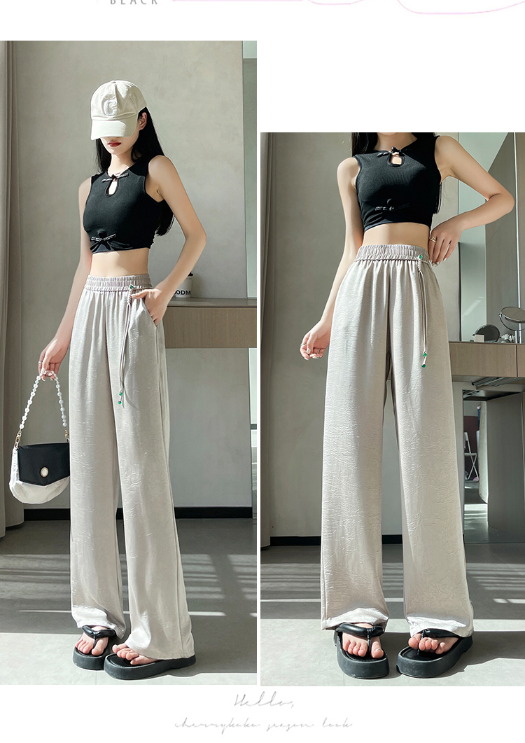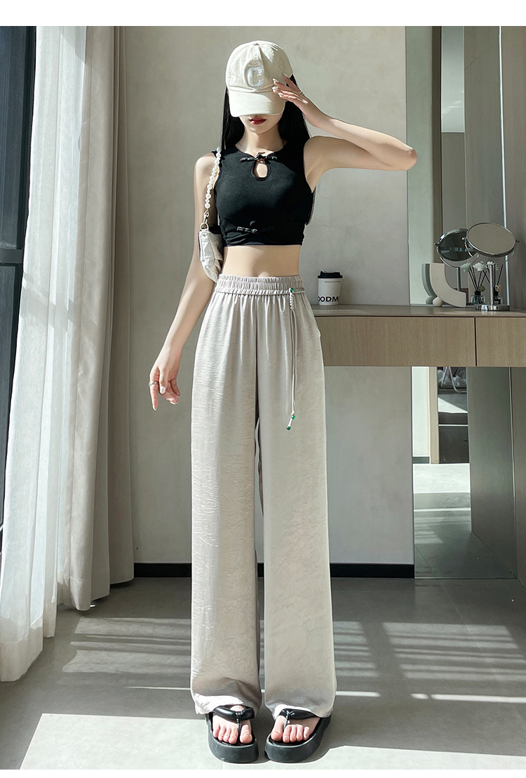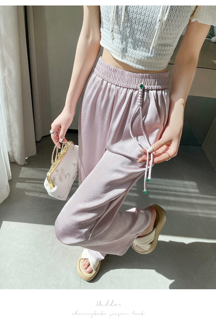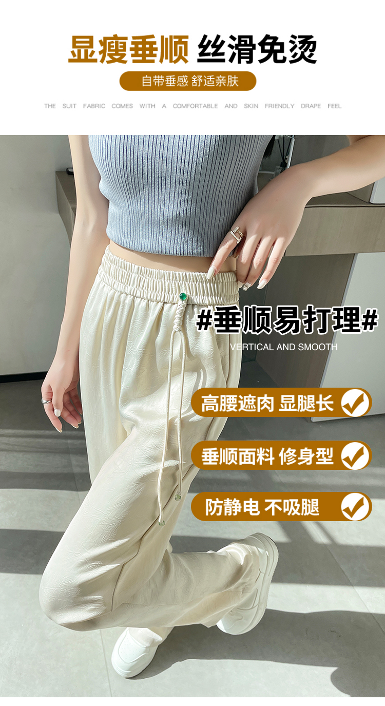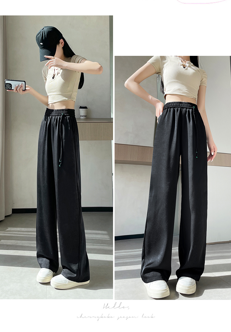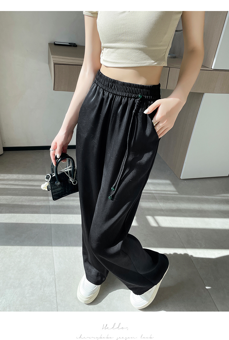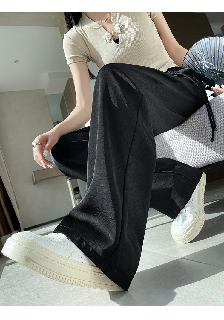 新中式国风提花阔腿裤 高腰盘扣设计 显瘦垂感时尚休闲裤