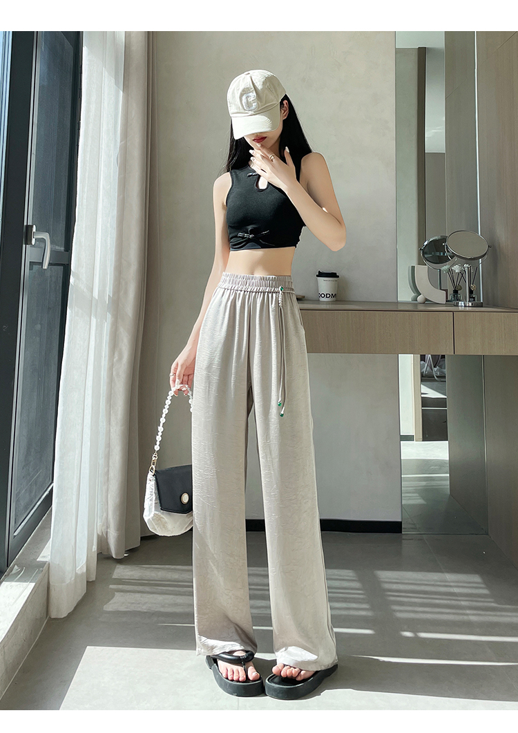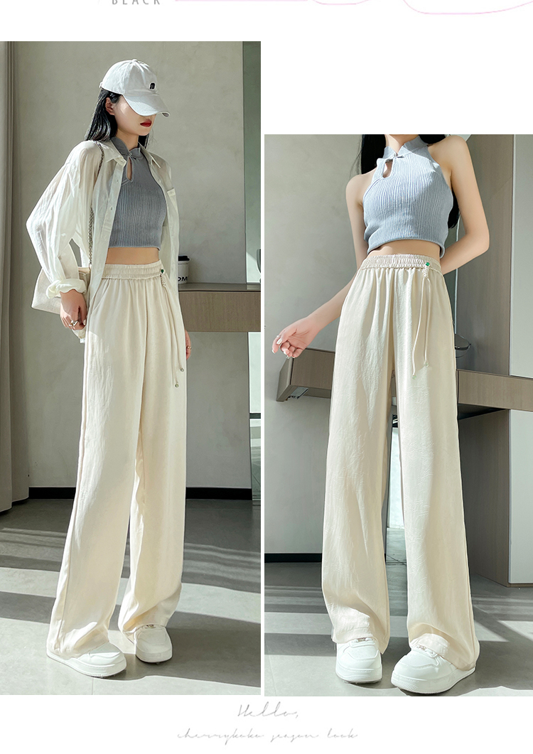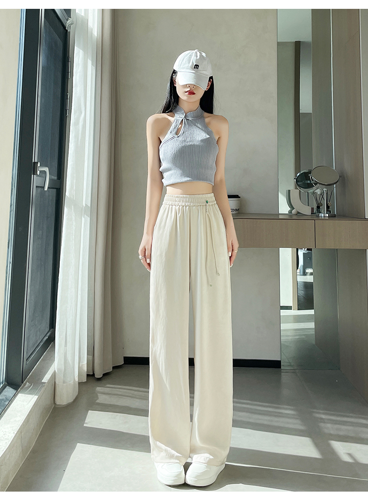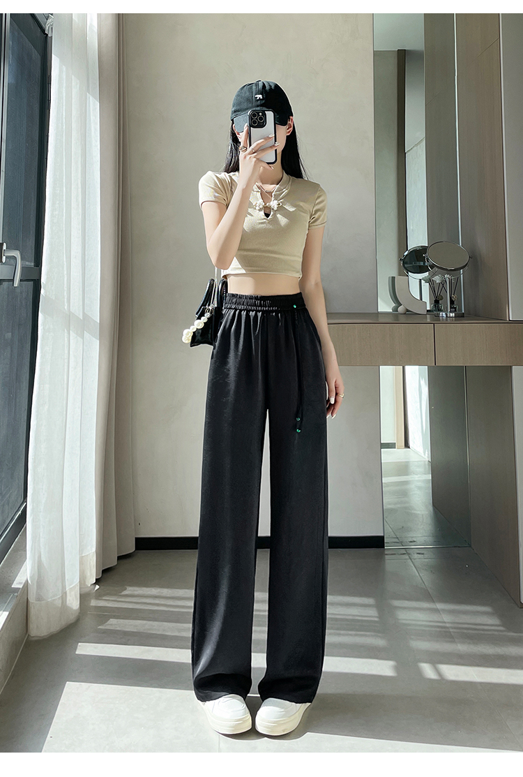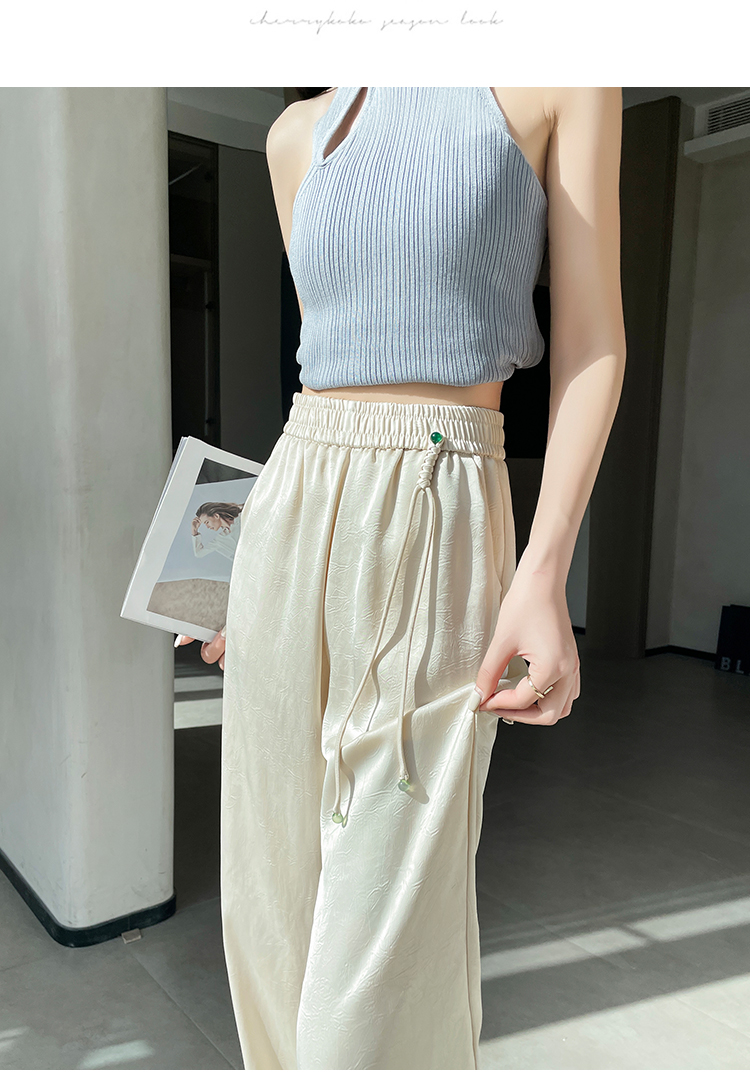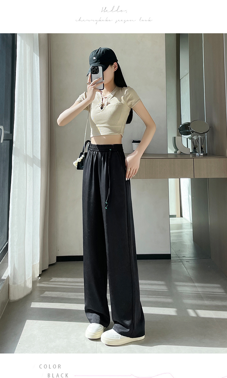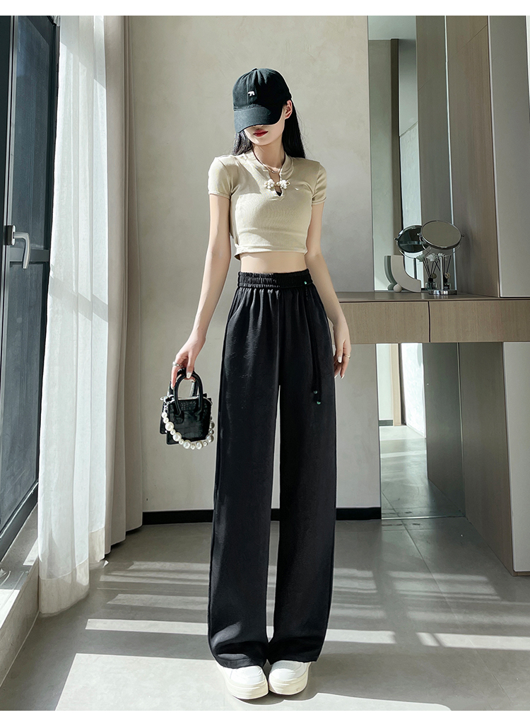 新中式国风提花阔腿裤 高腰盘扣设计 显瘦垂感时尚休闲裤
