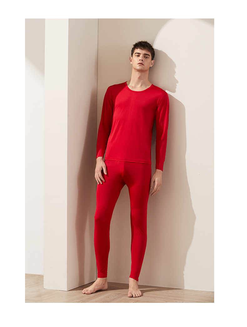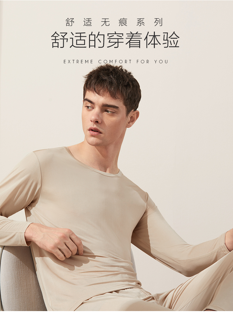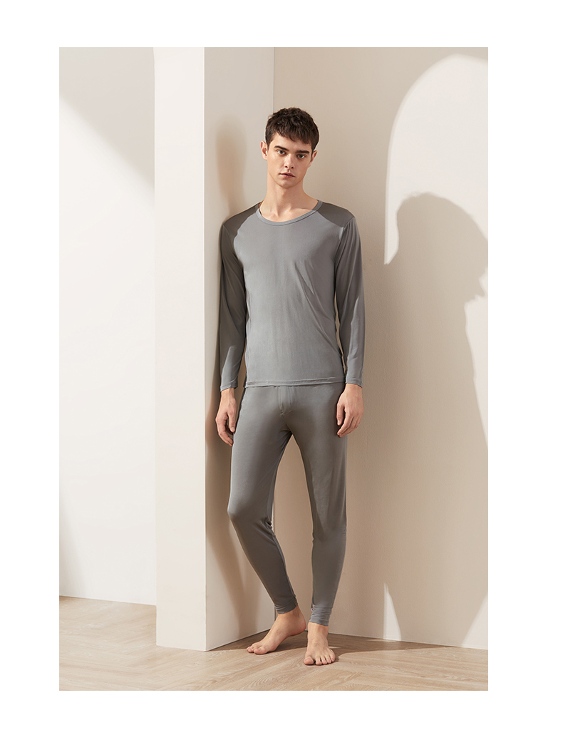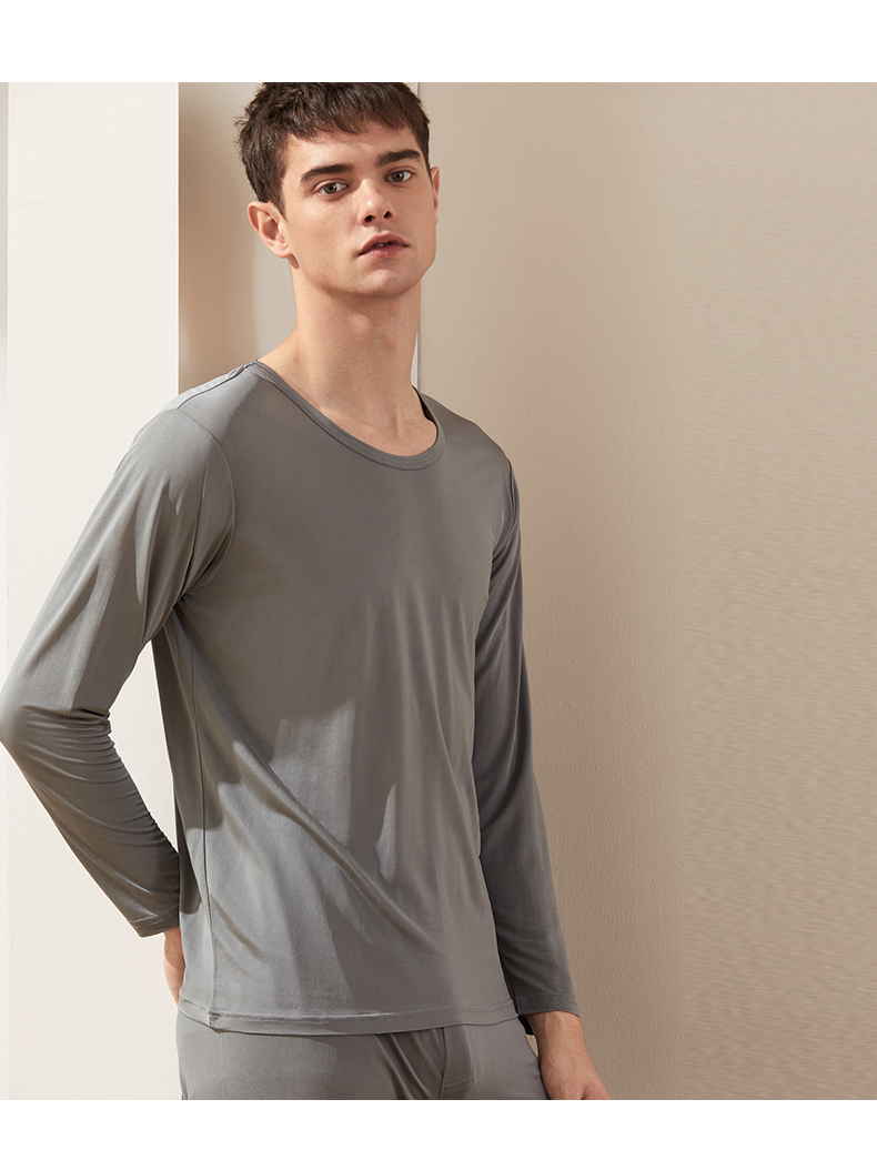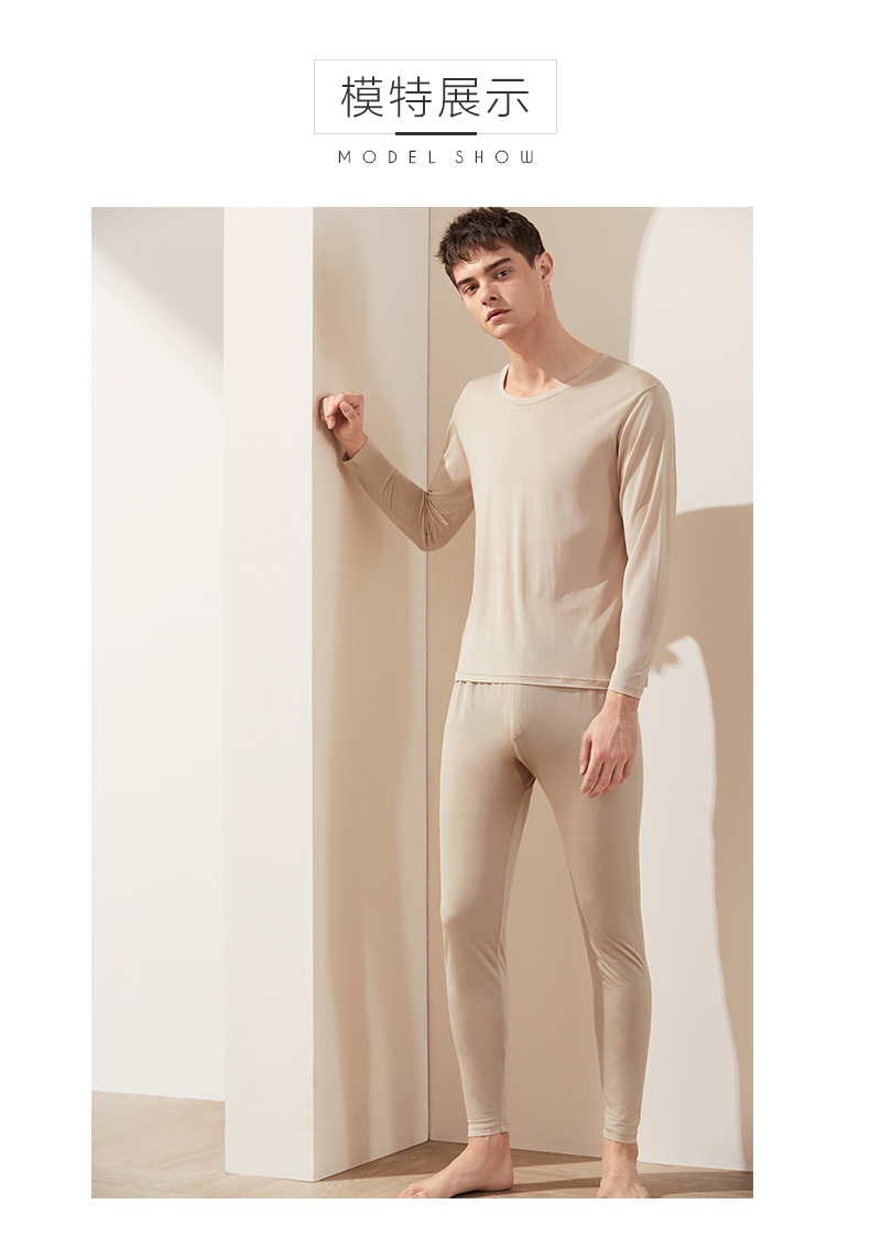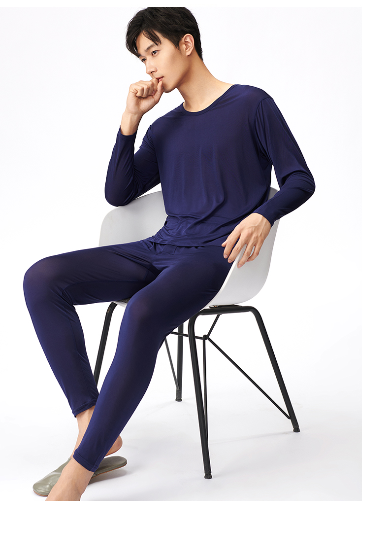 金三塔秋冬真丝针织内衣套装圆领保暖衣裤套纯色保暖衣男 8NYM0202