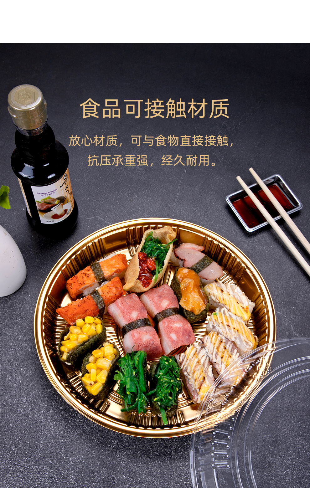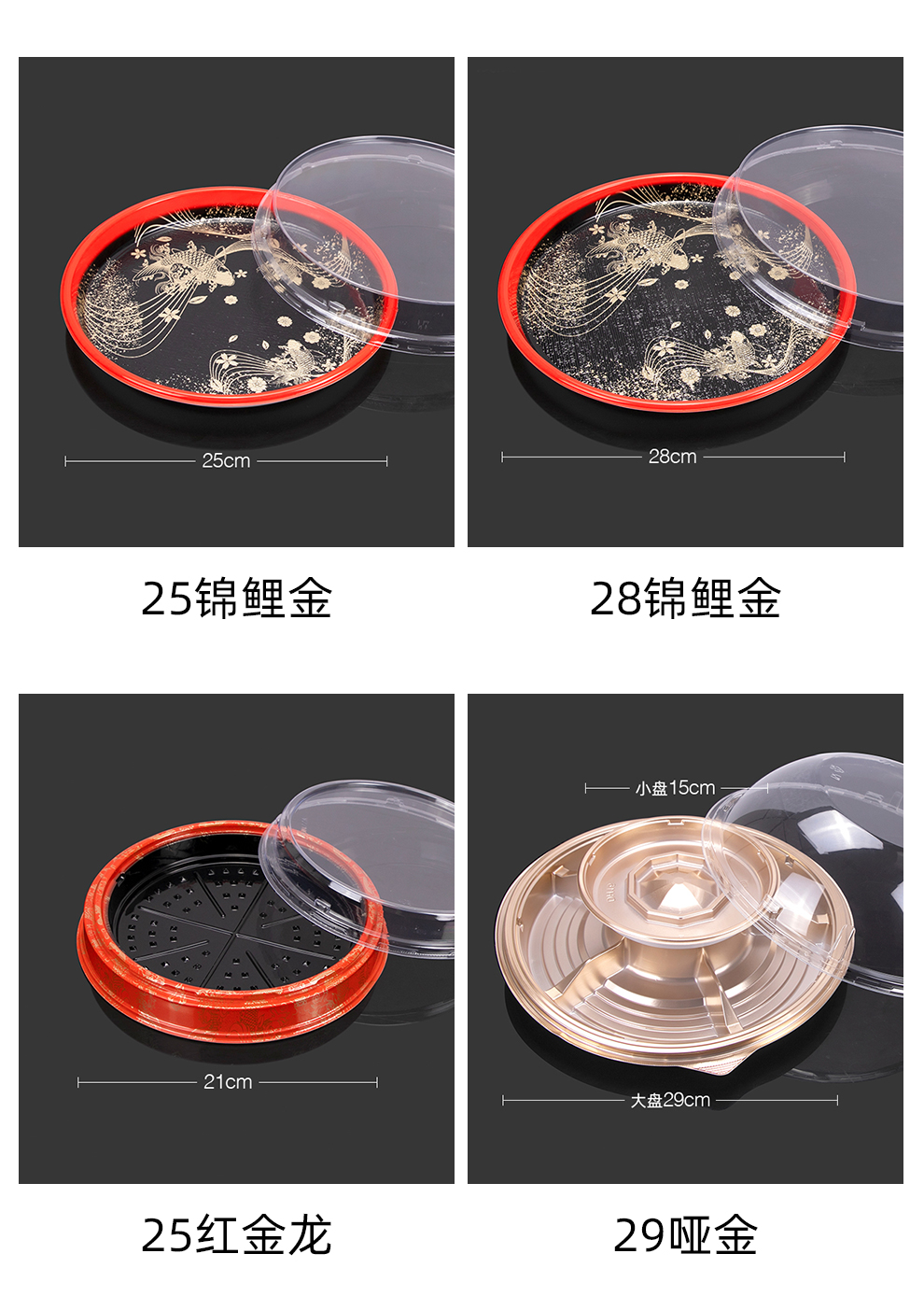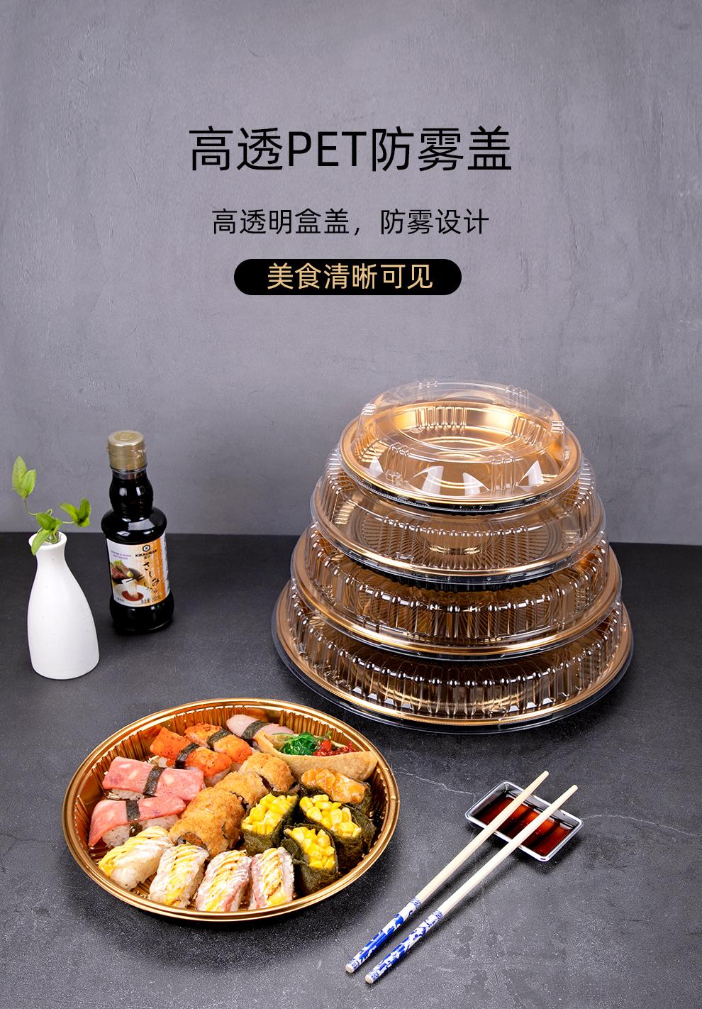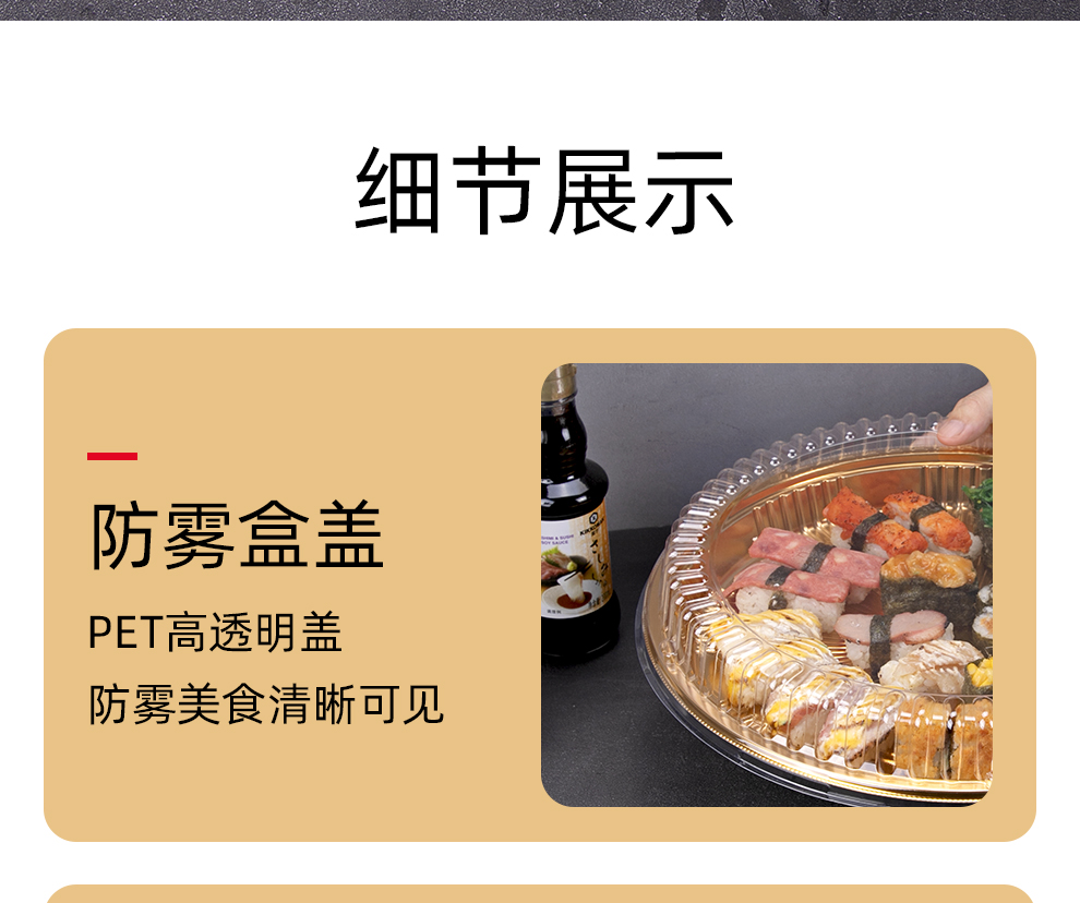 喇叭花圆形寿司盒寿喜锅拼盘海鲜烧鹅外带盒一次性外卖盒圆形刺身盒印花双层拼盘