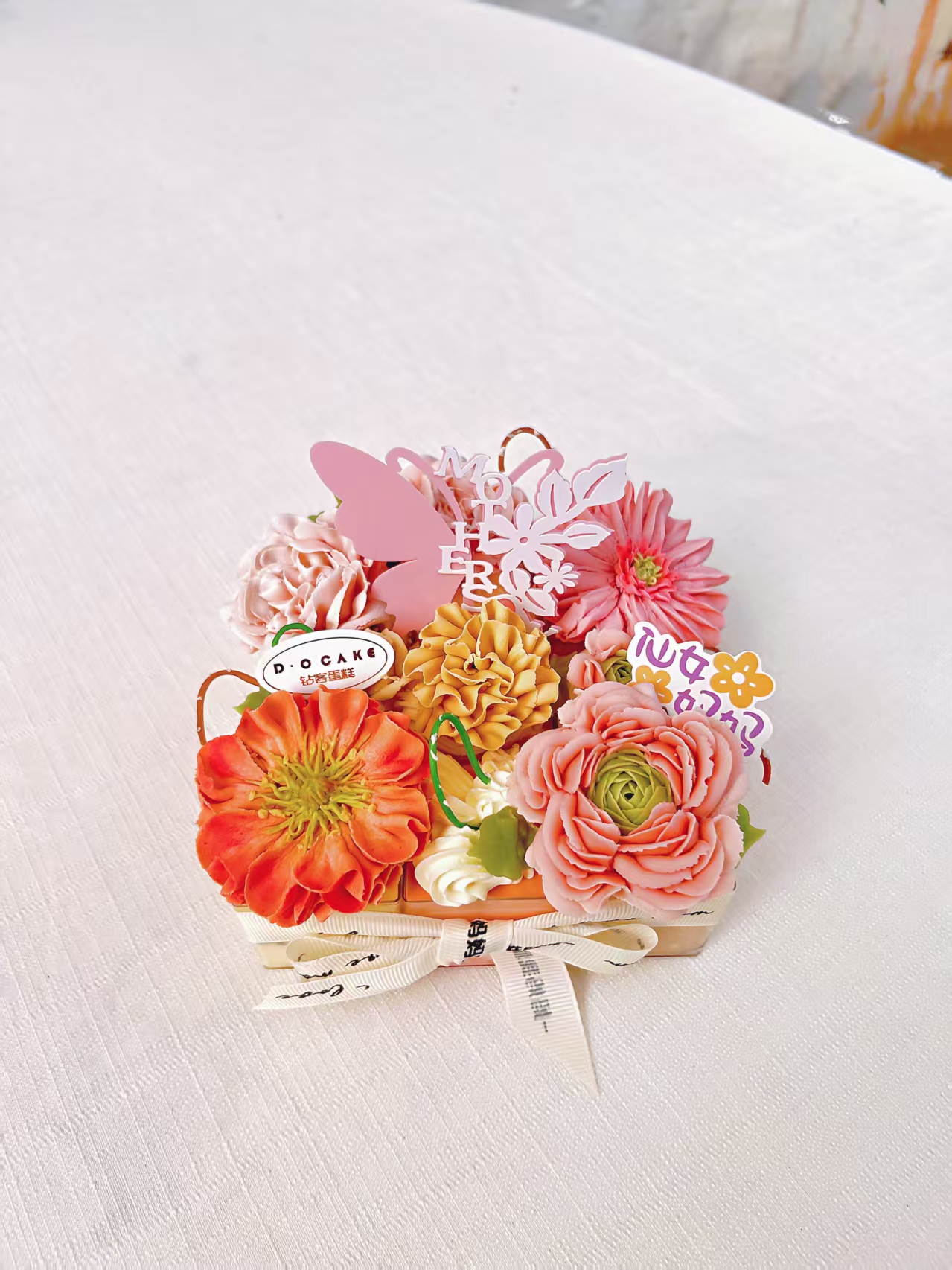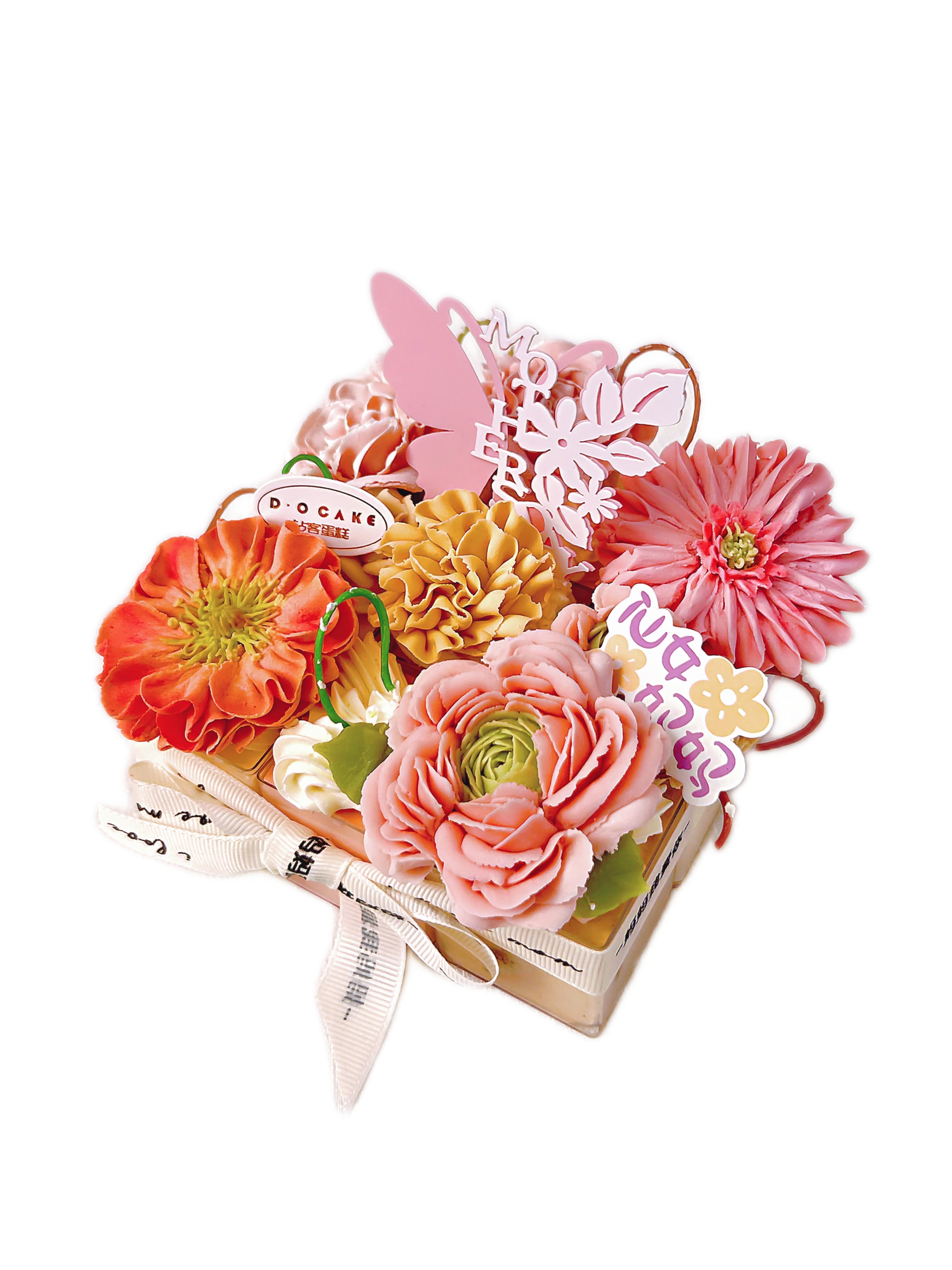 韩式芸豆沙裱花,慕斯小格(巧克力慕斯,甜心樱桃,芒果慕斯*2,提拉米苏,栗子慕斯,玫瑰慕斯,大理石慕斯)。