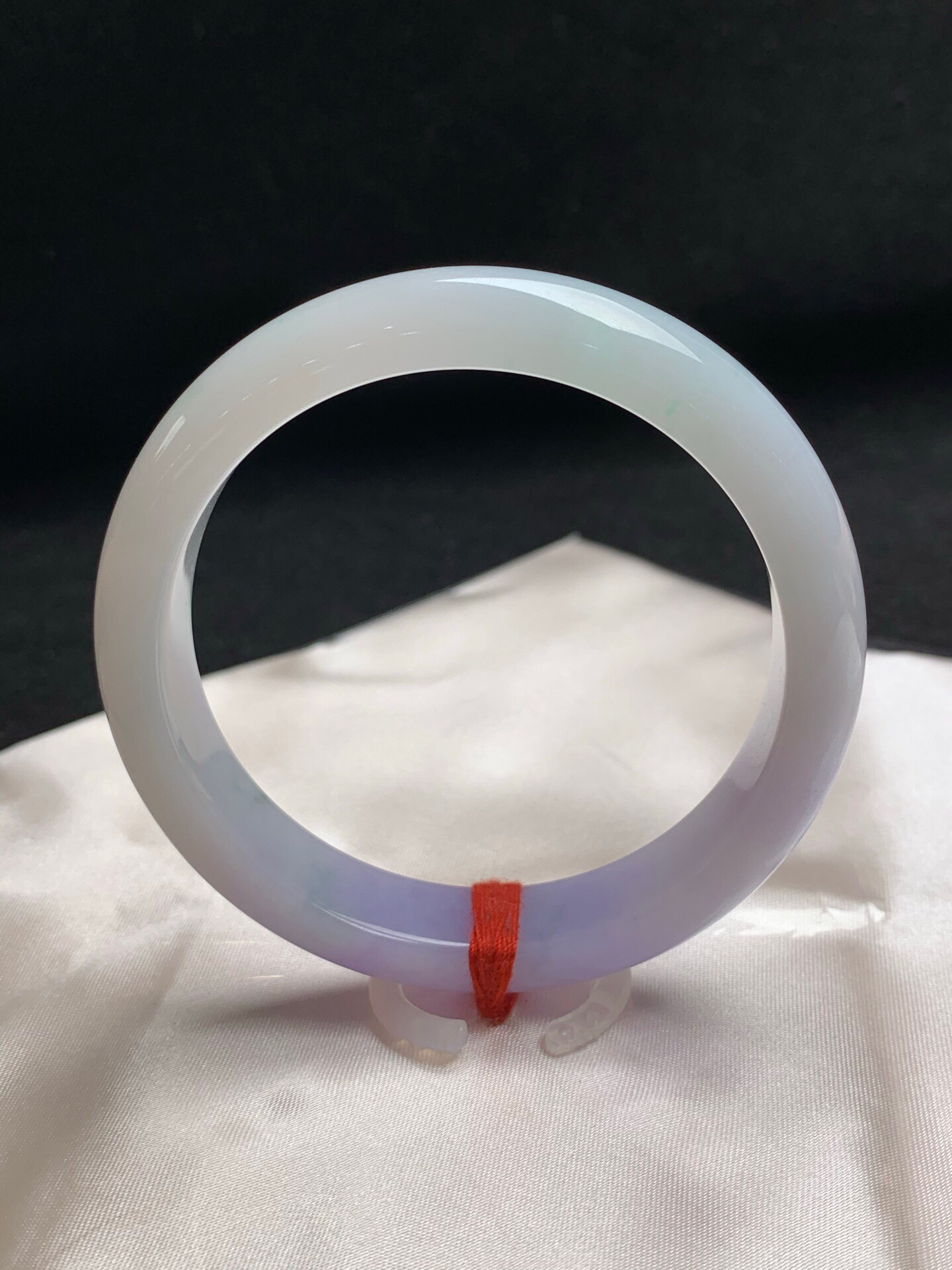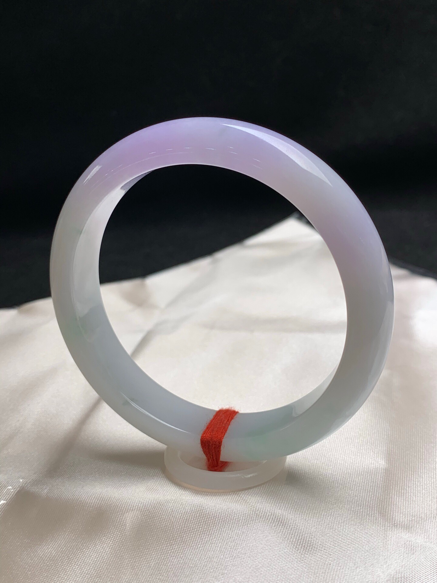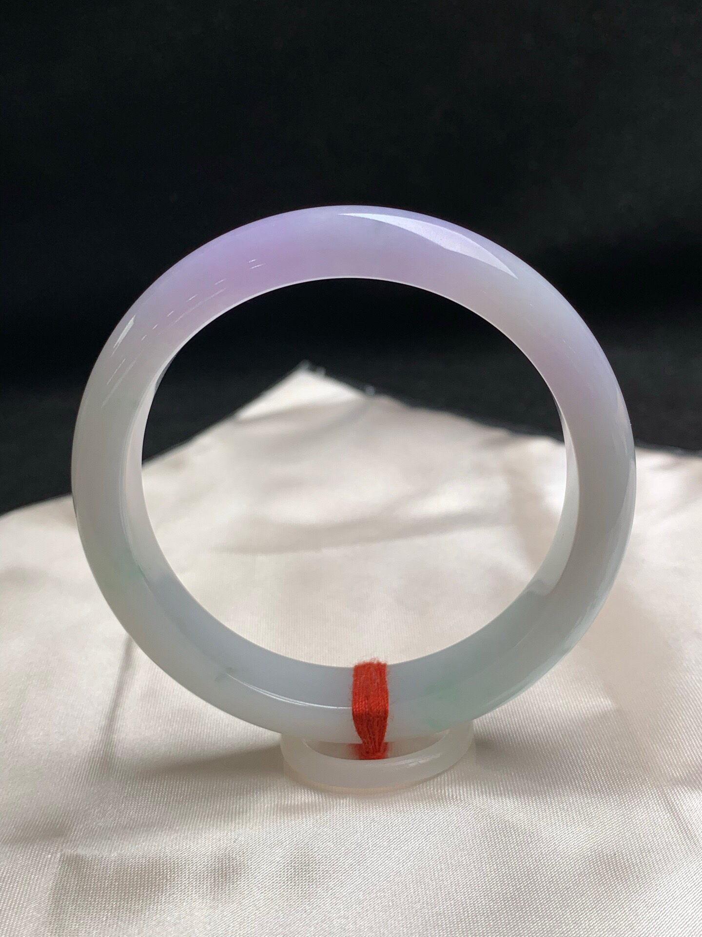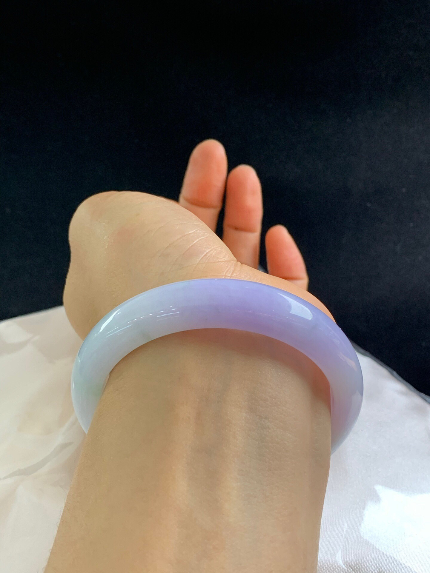 620046,58圈口,糯化飘紫正圈平安镯,白底飘一截紫罗兰,带点绿花