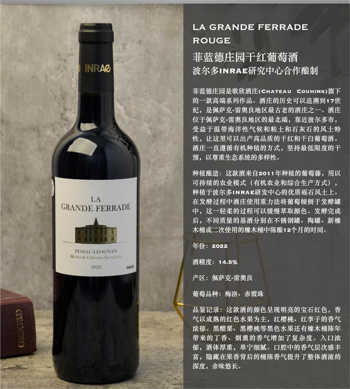 菲蓝德干红是一款展现了该产区优越特质的红葡萄酒,良好的结构与复杂性,适合在年轻时饮用,同时也具视频潜力。建议与红肉、野味或成熟奶酪搭配,能更好地展现气风味的层次和深度。