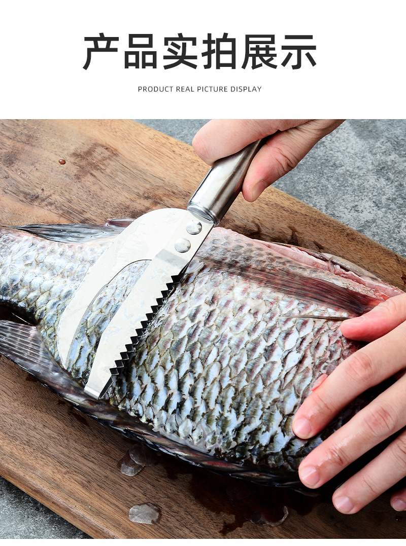【省时省力!鱼鳞刨鱼肚刀】甄选不锈钢材质,可直接接触食物,放心使用,操作简易,专剔各种有鳞鱼,二合一刮鱼鳞器杀鱼刀刷鱼鳞L
