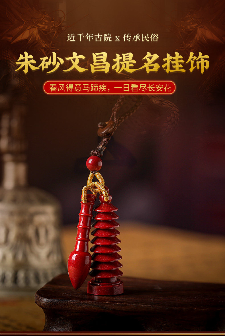【祈愿吉品】宝塔朱砂文昌挂饰文昌笔钥匙扣挂件