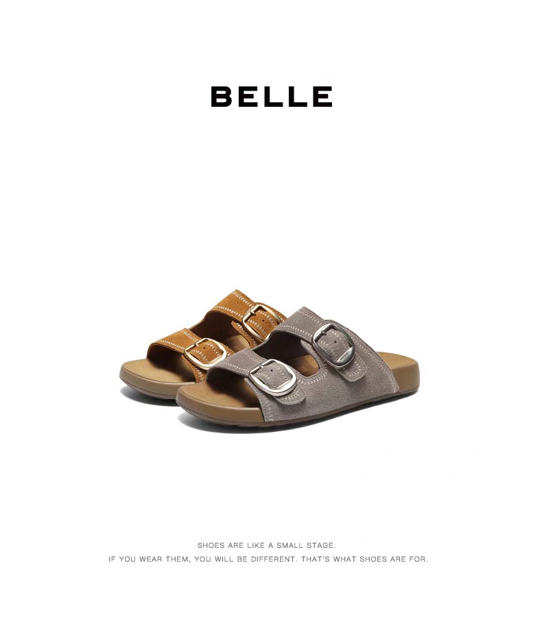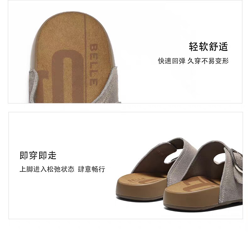 BF楼周雨彤同款百丽QQ吐司1代升级版吐司勃肯鞋女款2026新款拖鞋F5X1D