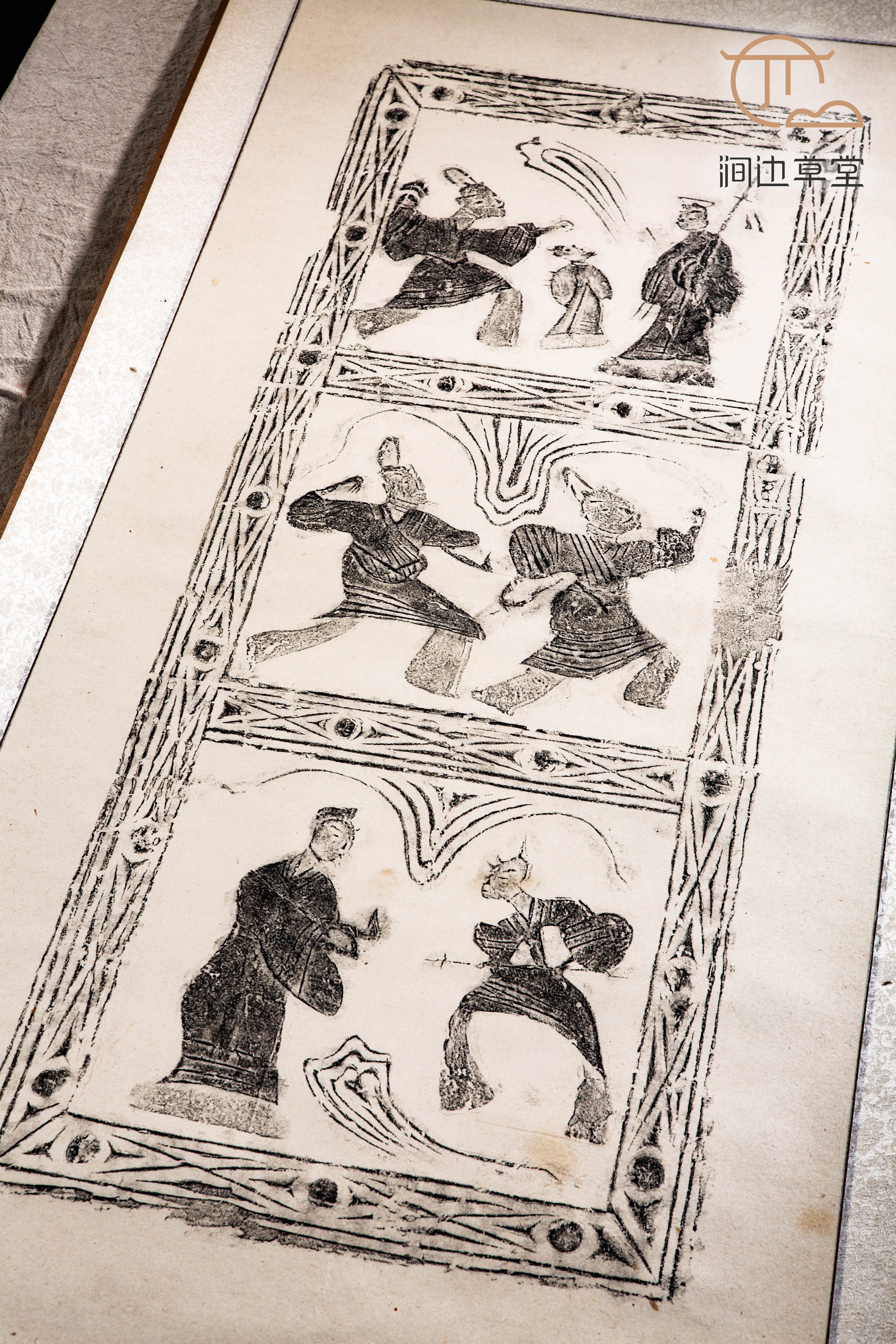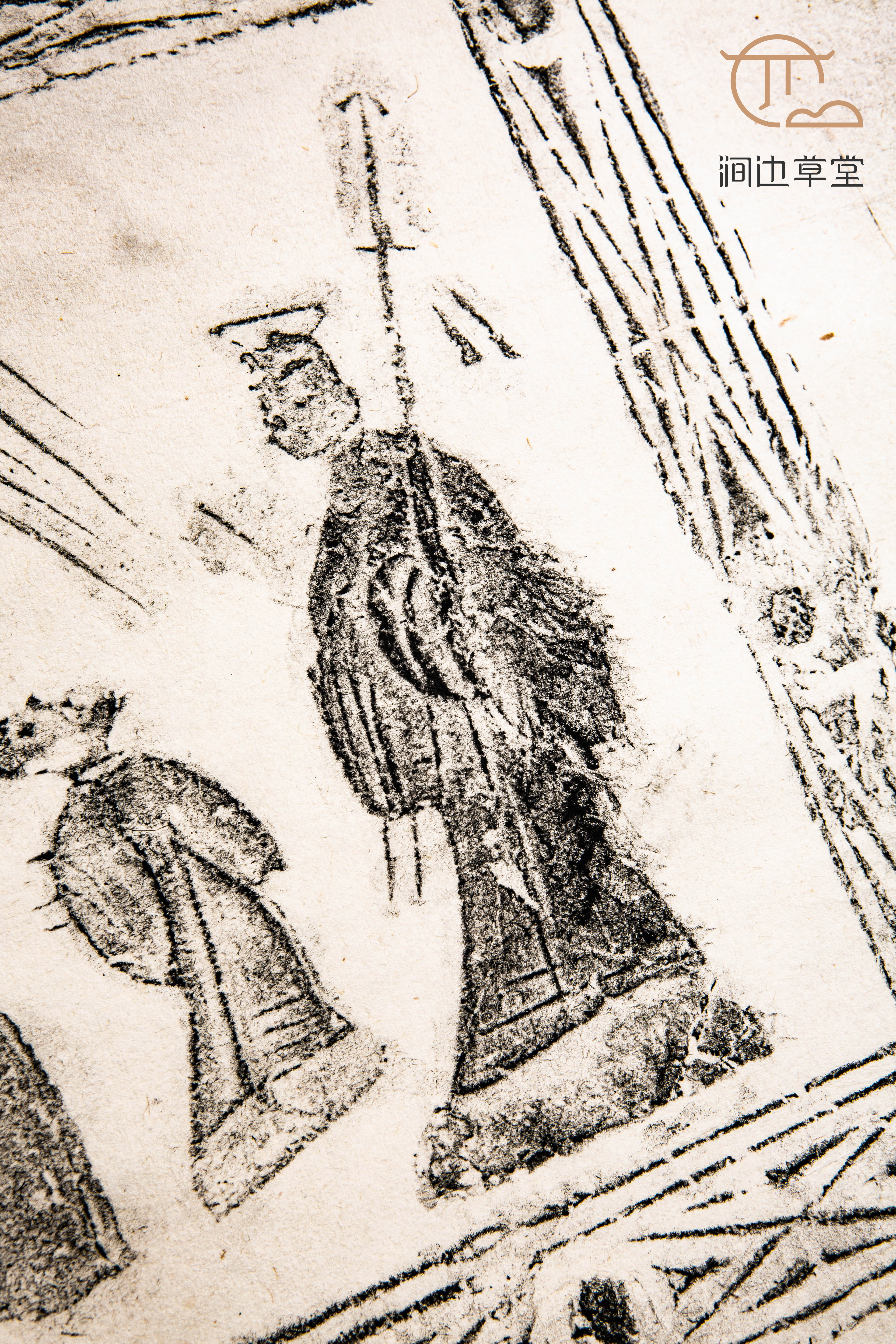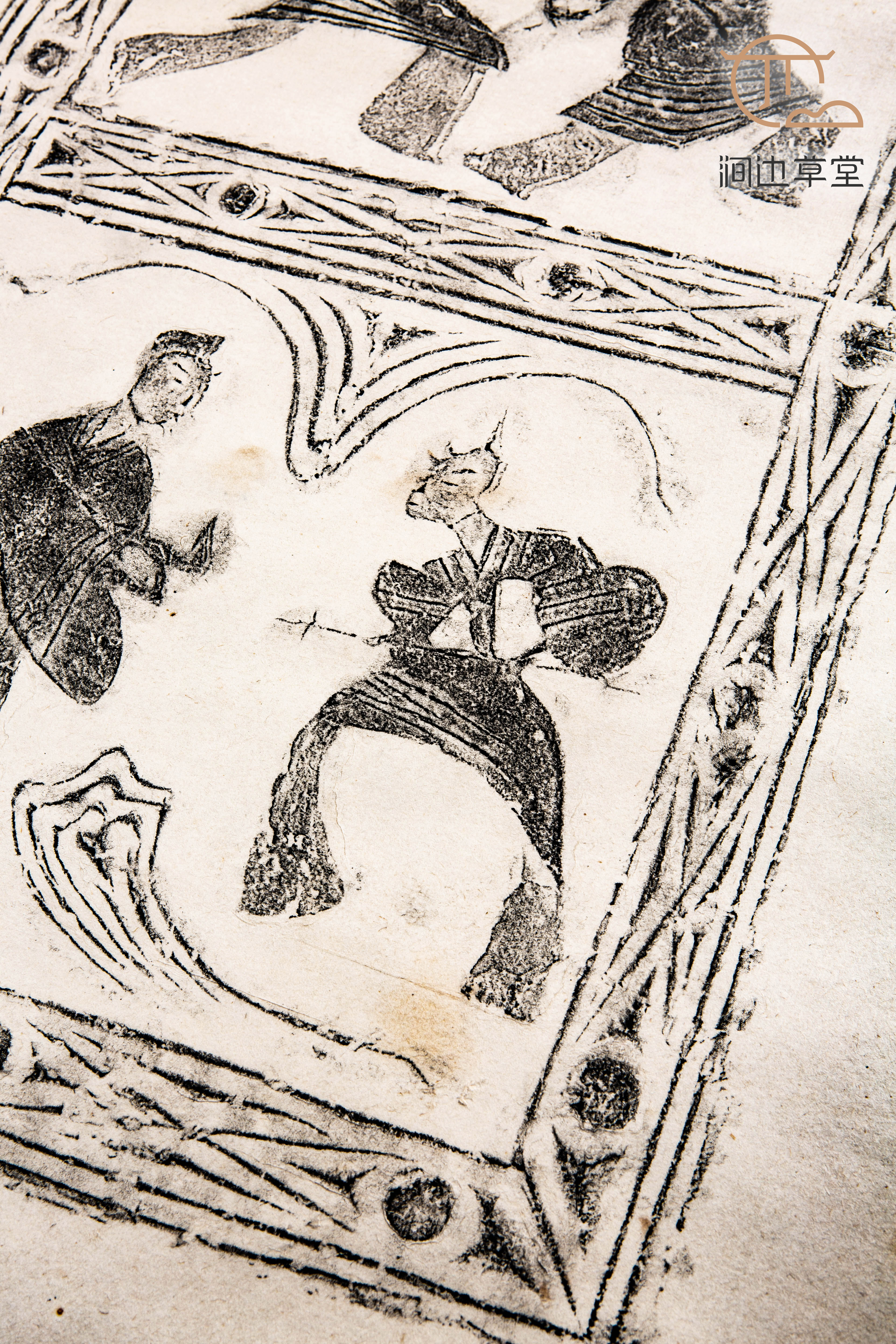 90年代老拓原装老装裱古砖人物拓片,题材稀有少见,拓工精细,立轴原裱,装裱高级,是收藏之佳品。