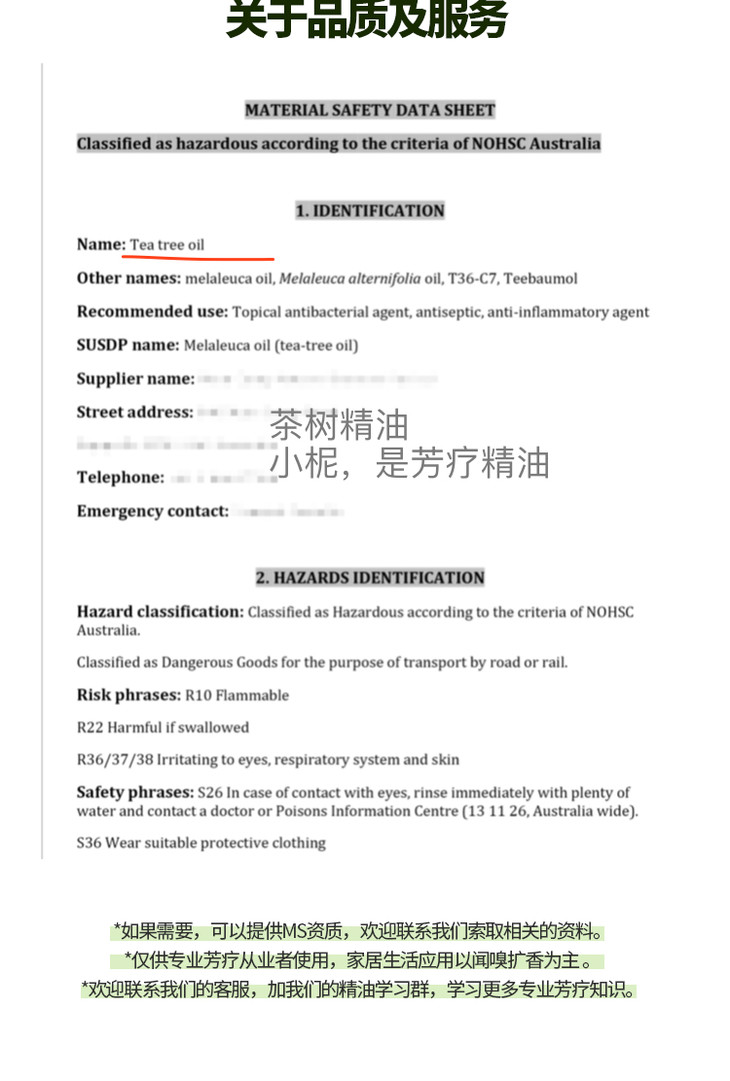 澳洲【茶树】精油 单方纯精油 扩香/熏香/调油