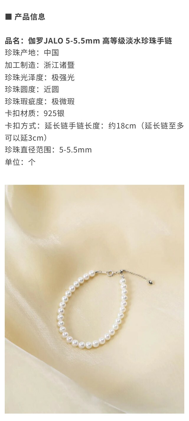伽罗 JALO 5-5.5mm 高等级淡水珍珠手链