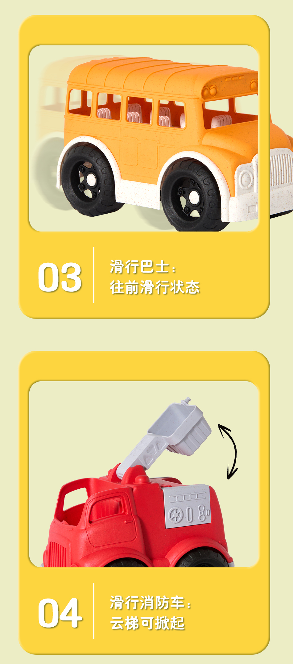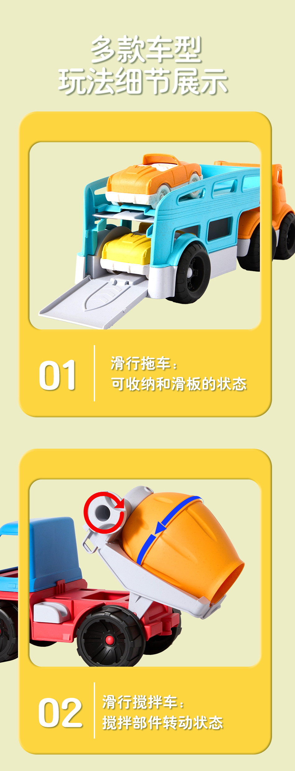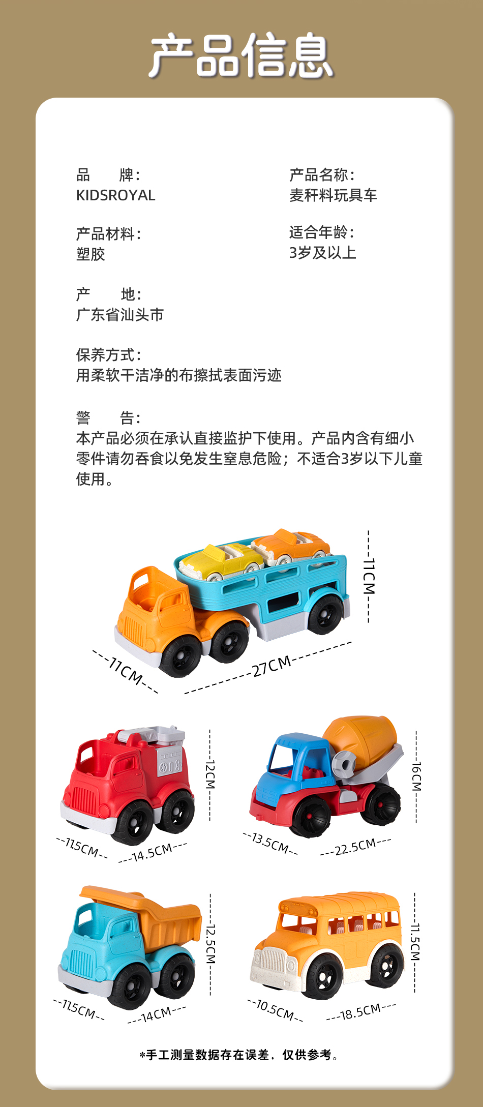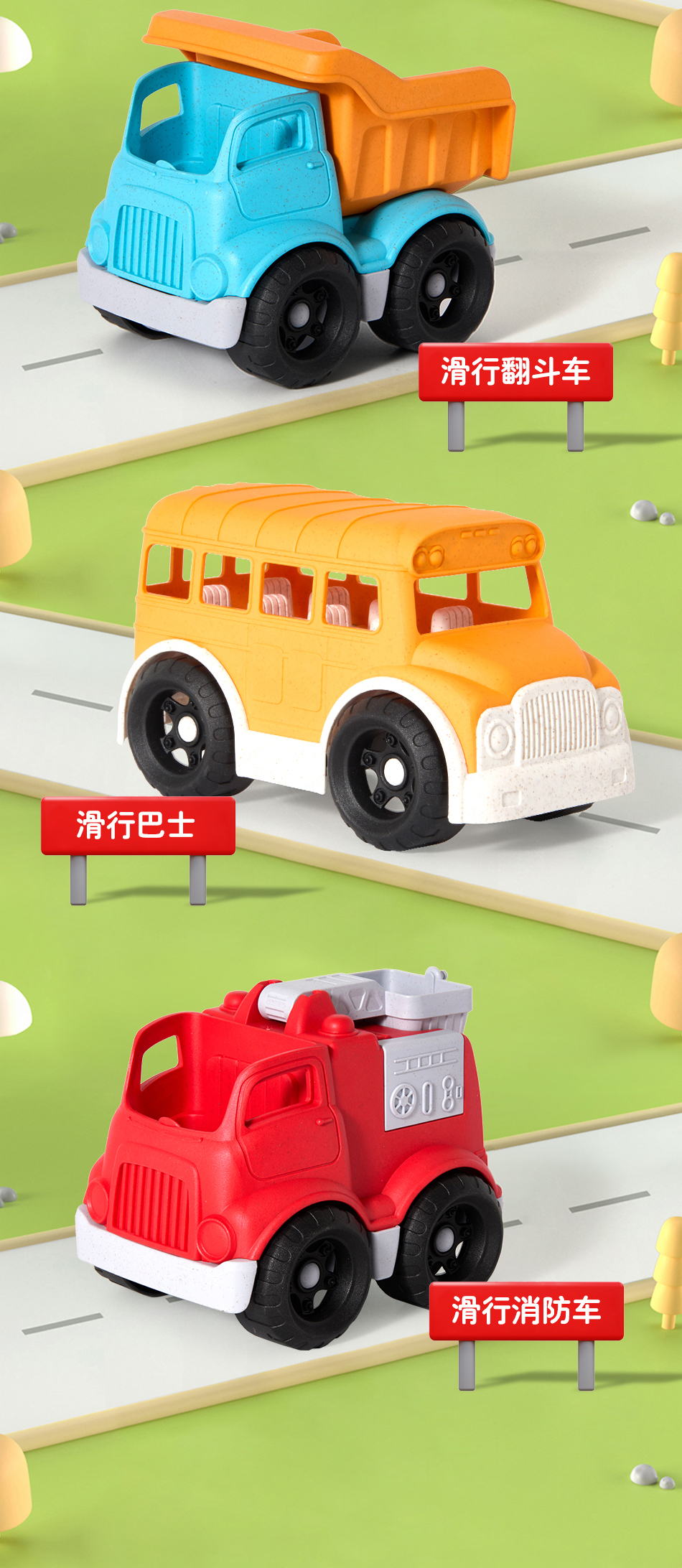 KIDSROYAL麦秆料玩具车(翻斗车/巴士/消防车/搅拌车/拖车)
