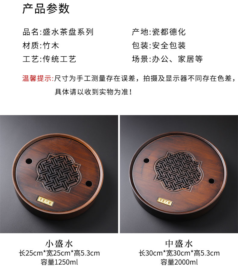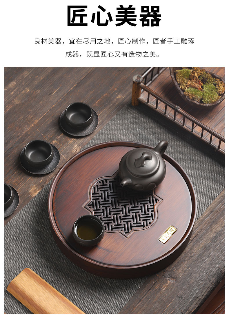 尚置丨华夏之窗 碳化竹制储水式茶盘 小号/中号 2款可选 茶桌必备